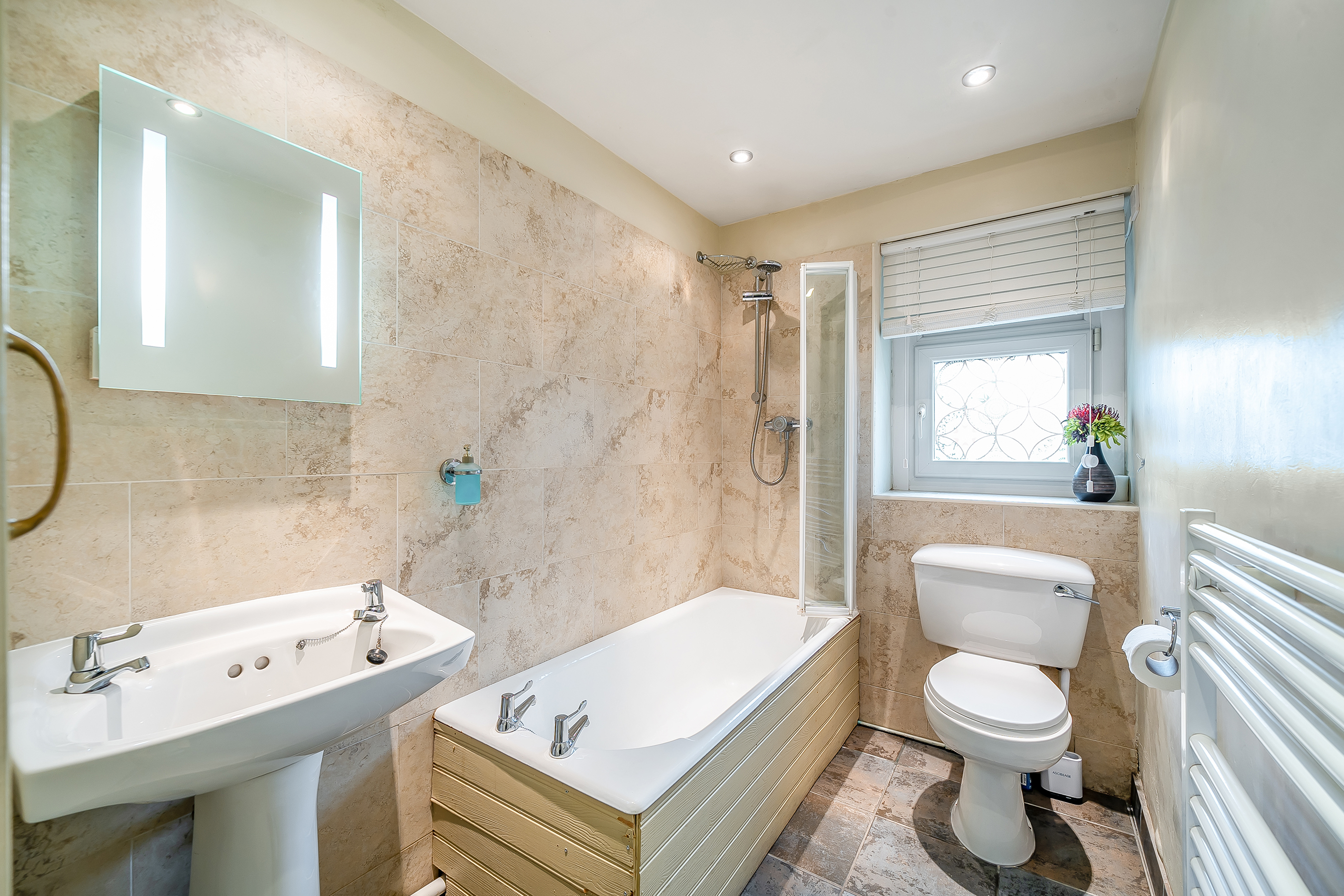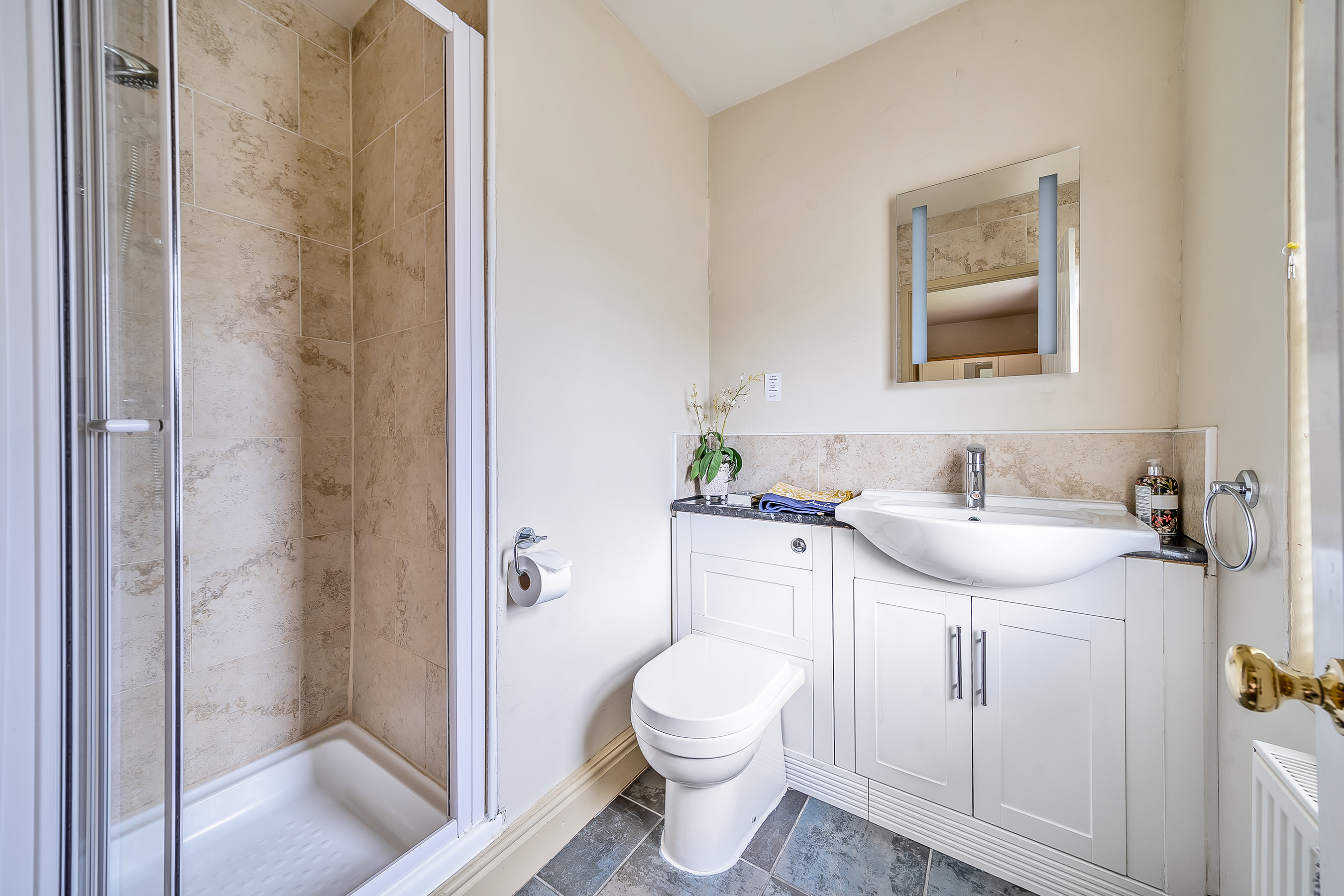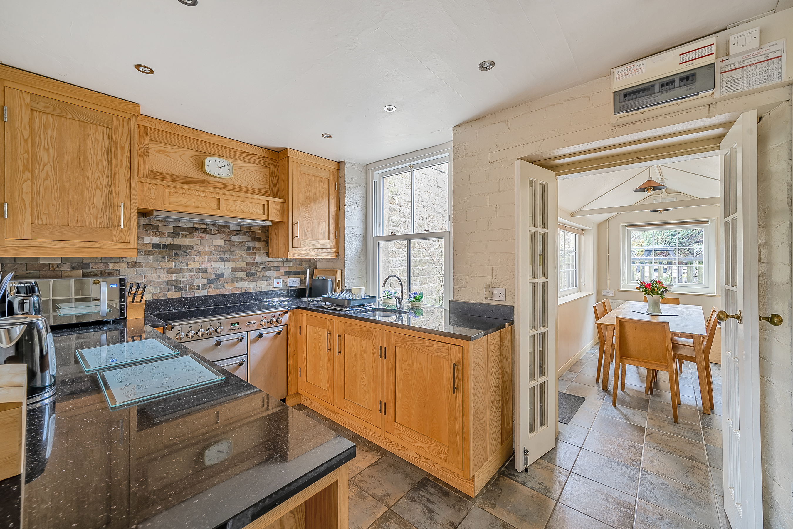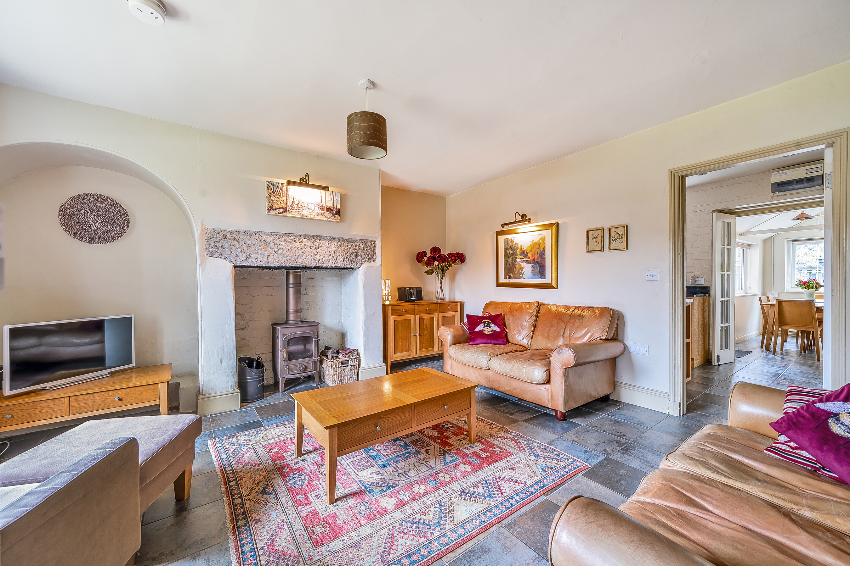 The house opens via an entrance hall to the living room which is arranged around a feature fireplace housing a log burning stove. Seamless tiled flooring extends throughout to the cottage kitchen with solid wood handmade units, granite work surfaces and range oven. Double doors lead into the dual aspect dining room which opens out to the rear courtyard where there is space for storage of garden tools and patio chairs, and low maintenance cottage garden beyond. The ground floor also benefits from having a bathroom / guest w/c. To the first floor the central landing branches to three well-proportioned bedrooms with the largest having a stylish en-suite shower room.