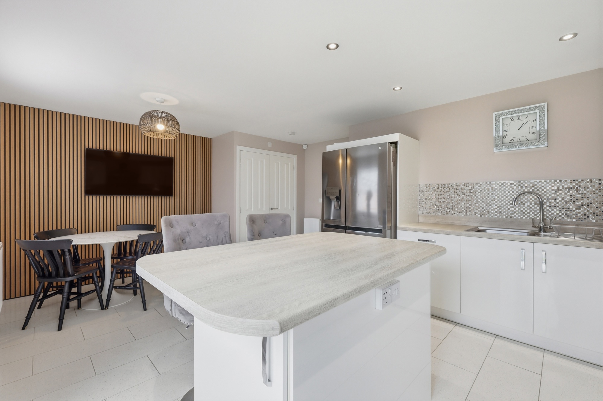 The ground floor features a lovely living space, a WC, and an open-plan kitchen/dining/family room. Upstairs, the property offers a spacious main bedroom complete with an en-suite shower room, three additional bedrooms, and a modern family bathroom.