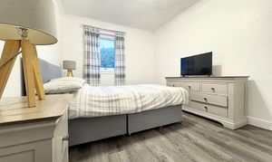 Both bedrooms are superbly proportioned, offering ample space for furnishings. Bedroom two further benefits from access to a floored attic via a fitted ladder, providing valuable storage or potential for flexible use. The accommodation is completed by a luxury fully tiled shower room with vanity suite and mains shower.