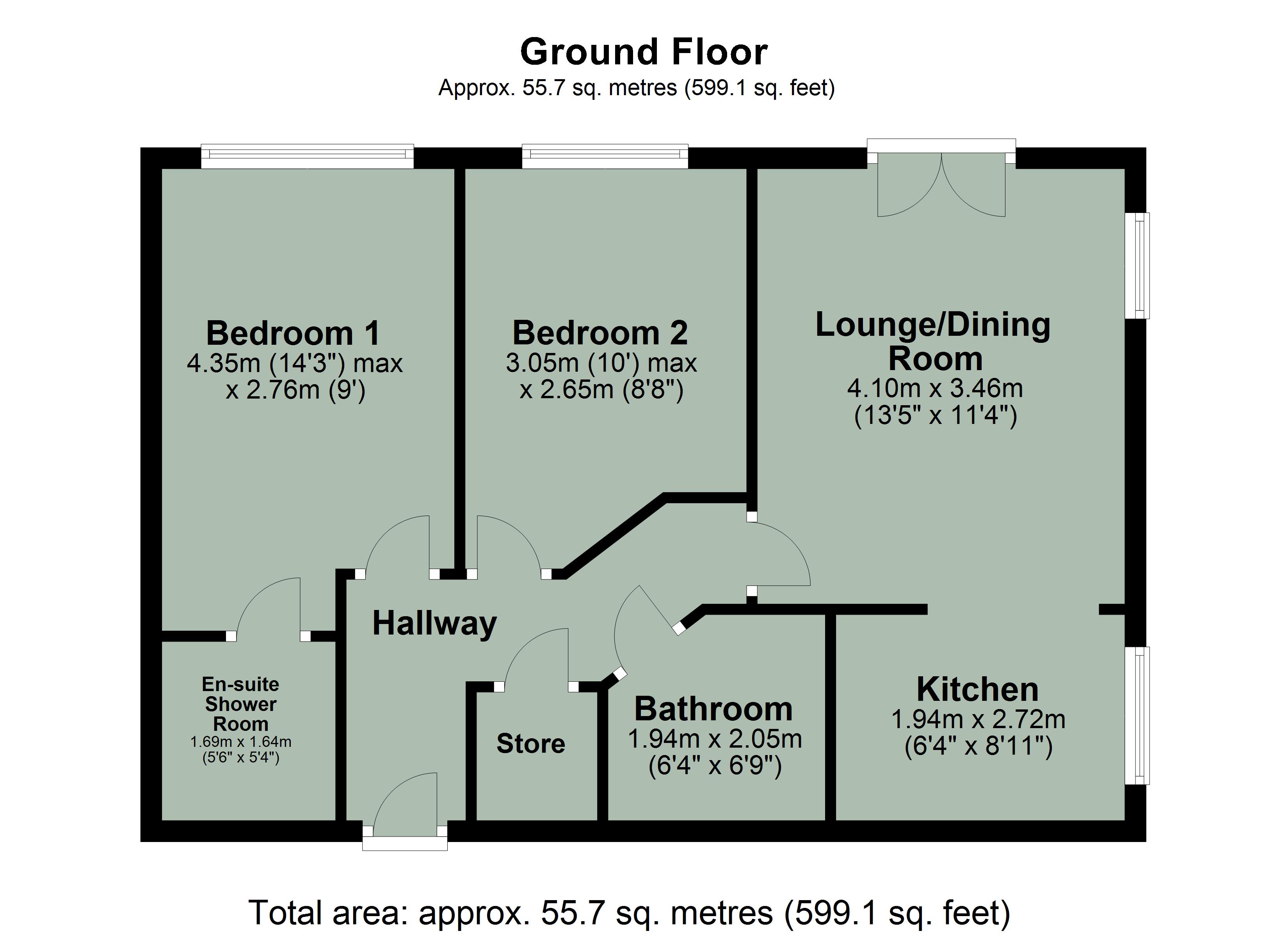 This apartment comprises in brief; a Living room/Kitchen with patio doors and large appliances, two well-sized double bedrooms one of which has an en-suite shower room, and a large main bathroom.