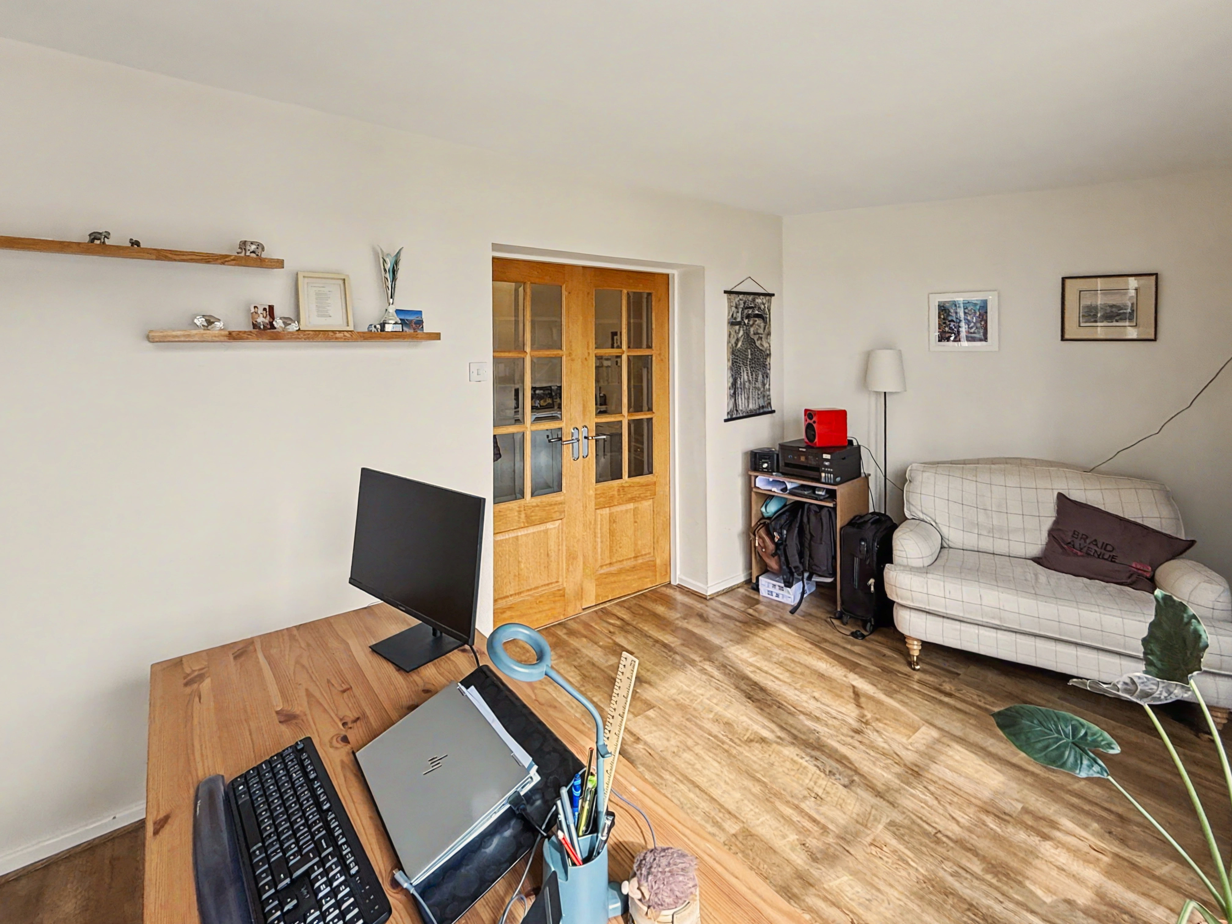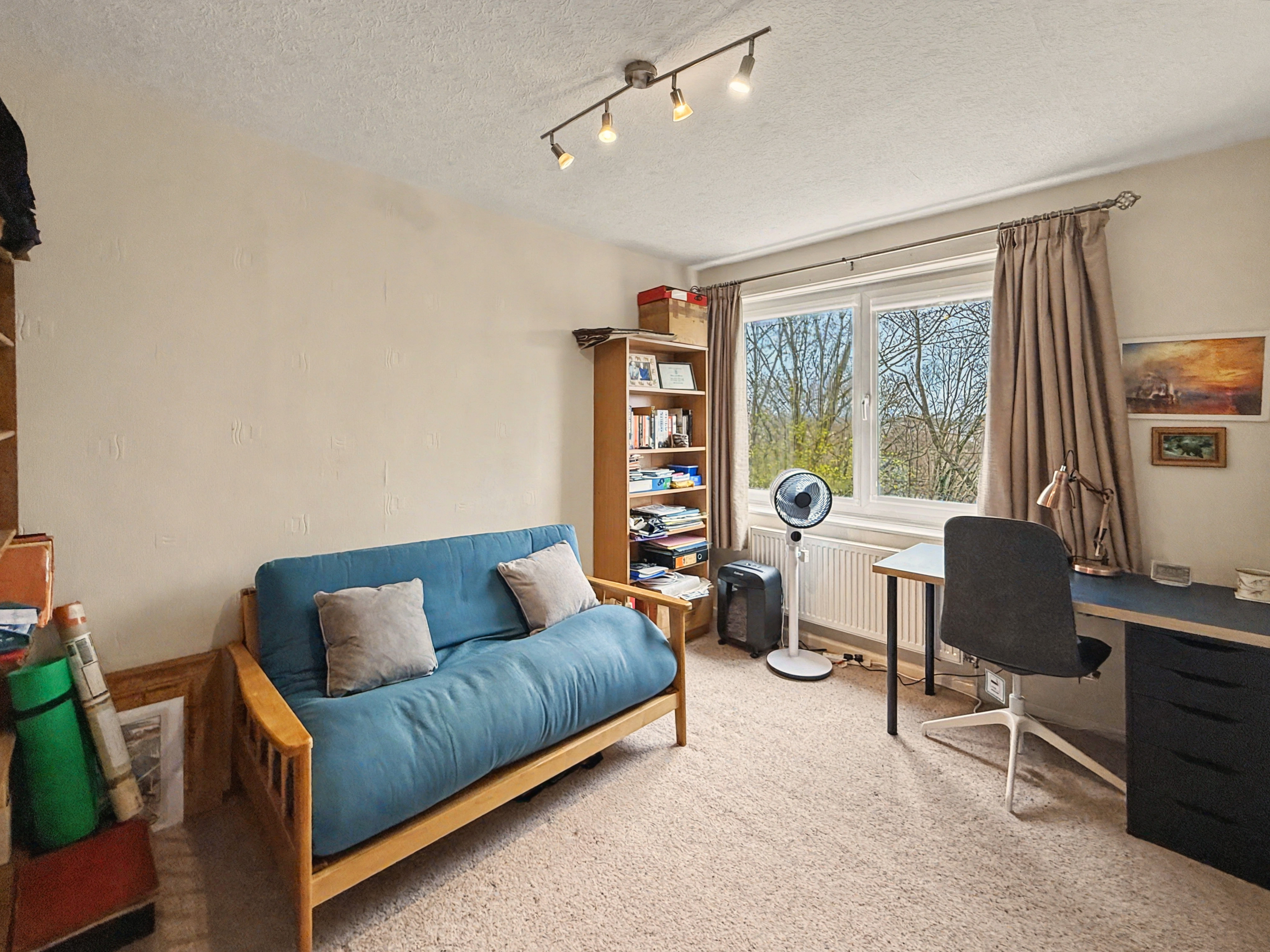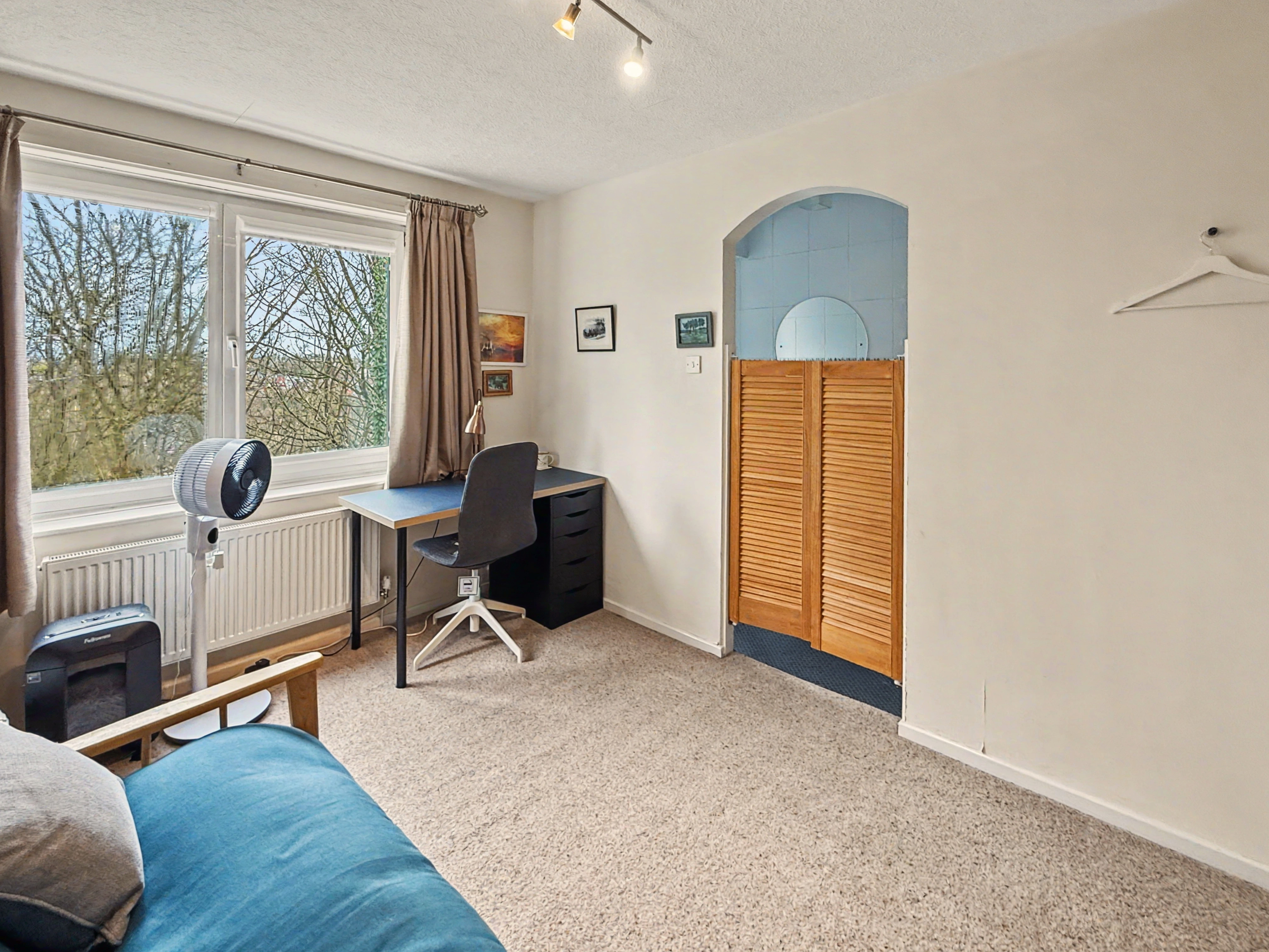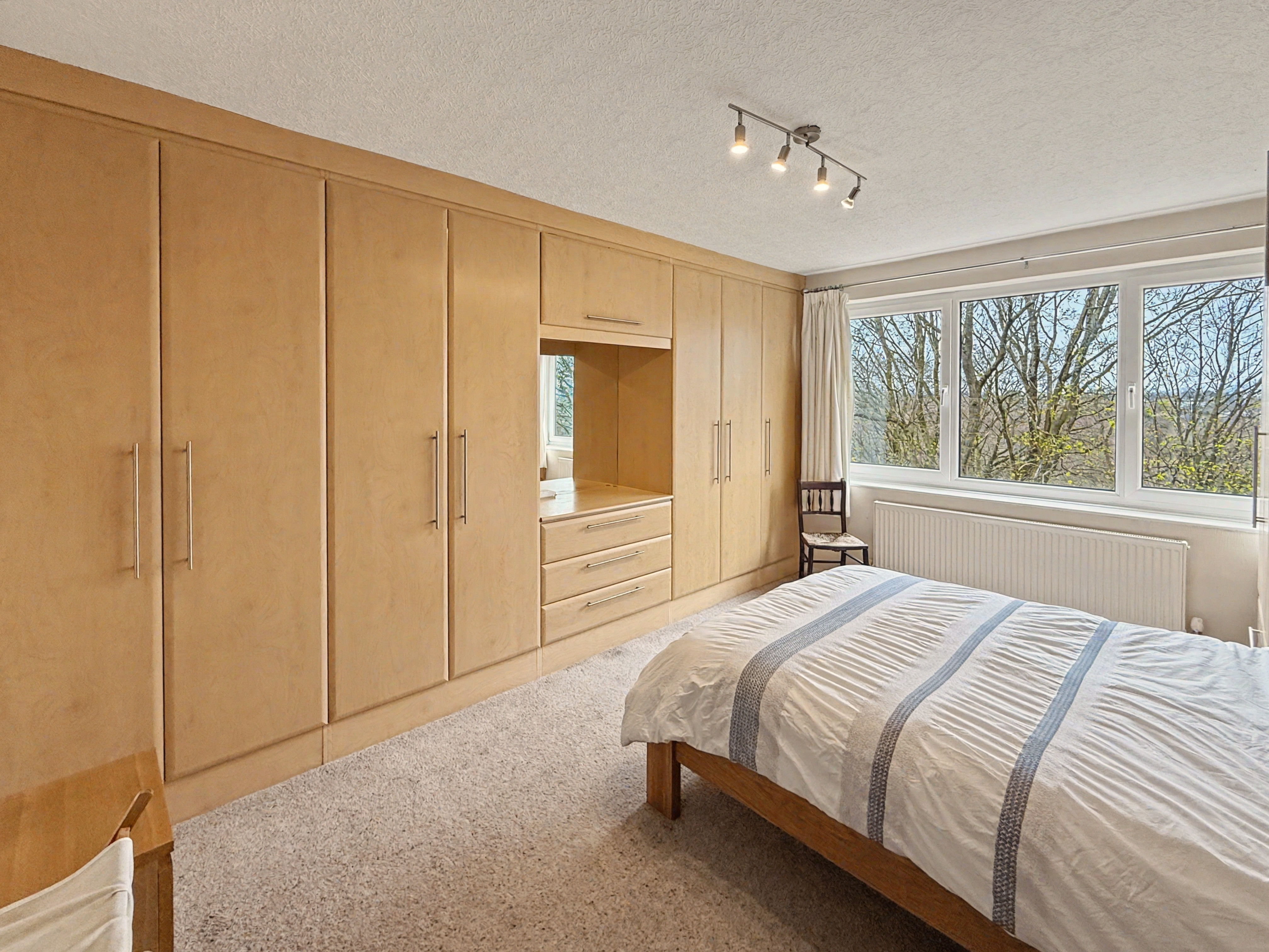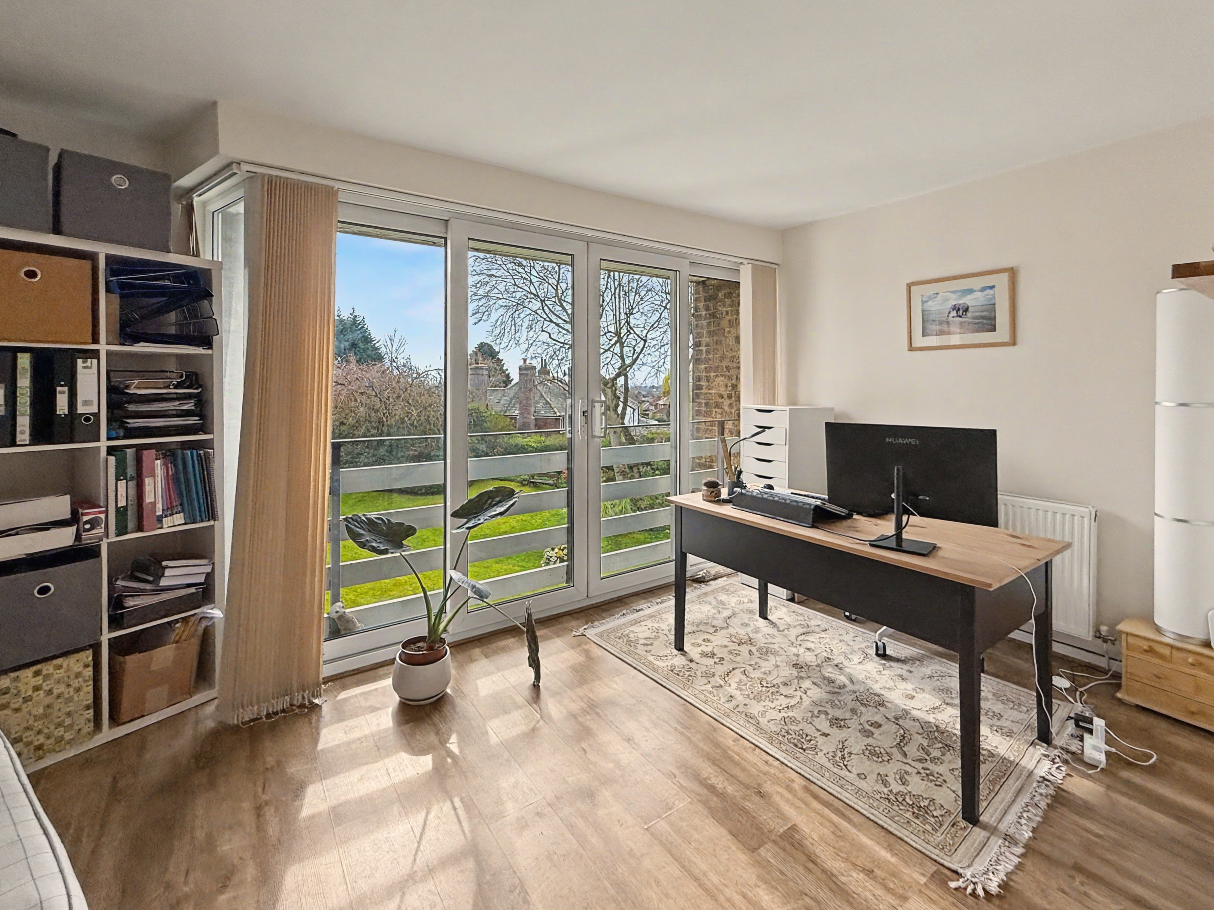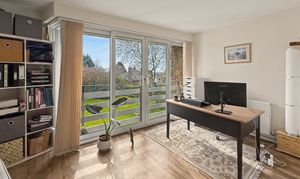 The master bedroom is a large double room and includes bespoke floor to ceiling fitted furniture. The second double is ample sized and benefits from en-suite bathroom which comprises of wc, walk in shower area and wash hand basin, fully tiled walls, non-slip flooring, heated chrome towel rail/radiator. The third bedroom is also facing the communal gardens with Juliet balcony, its currently being used as a home office, but this versatile space equally would make the perfect bedroom, guest room or second sitting room.