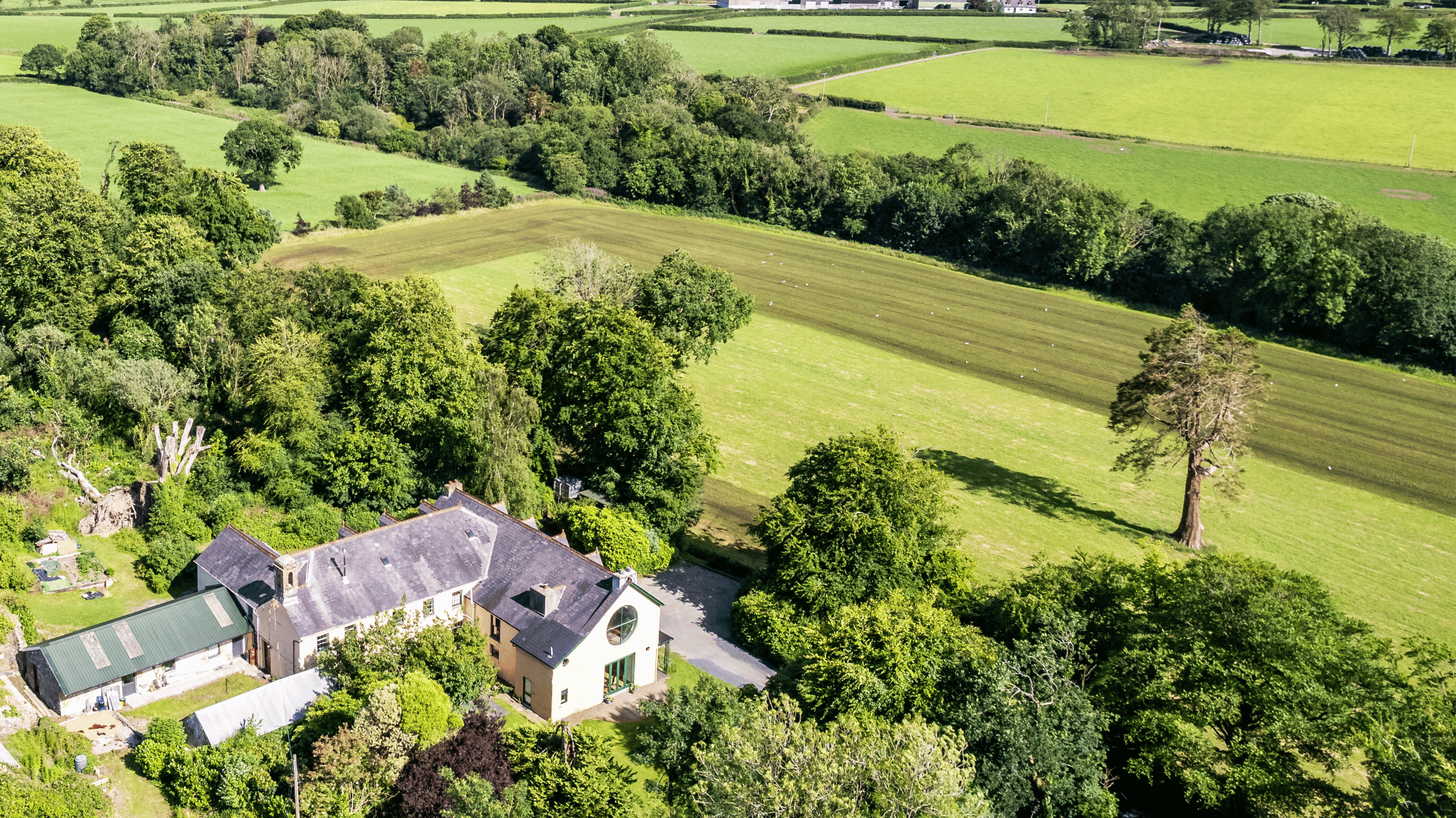 The estate spans approximately 18 acres of beautifully maintained grounds, offering a rare blend of elegance, privacy, and natural beauty. Landscaped Gardens: Thoughtfully designed with mature planting and seasonal interest, creating a striking yet peaceful setting around the main residence. Historic Walled Fruit Garden: A rare and charming feature, ideal for growing heritage fruit varieties in a sheltered environment. Available by separate negotiation if desired. Polytunnel & Vegetable Garden: A well-established area offering excellent potential for self-sufficiency, hobby farming, or small-scale horticulture. Woodland, Stream & Pond: Mature woodland interspersed with a natural stream and pond adds both biodiversity and serene character to the grounds.
