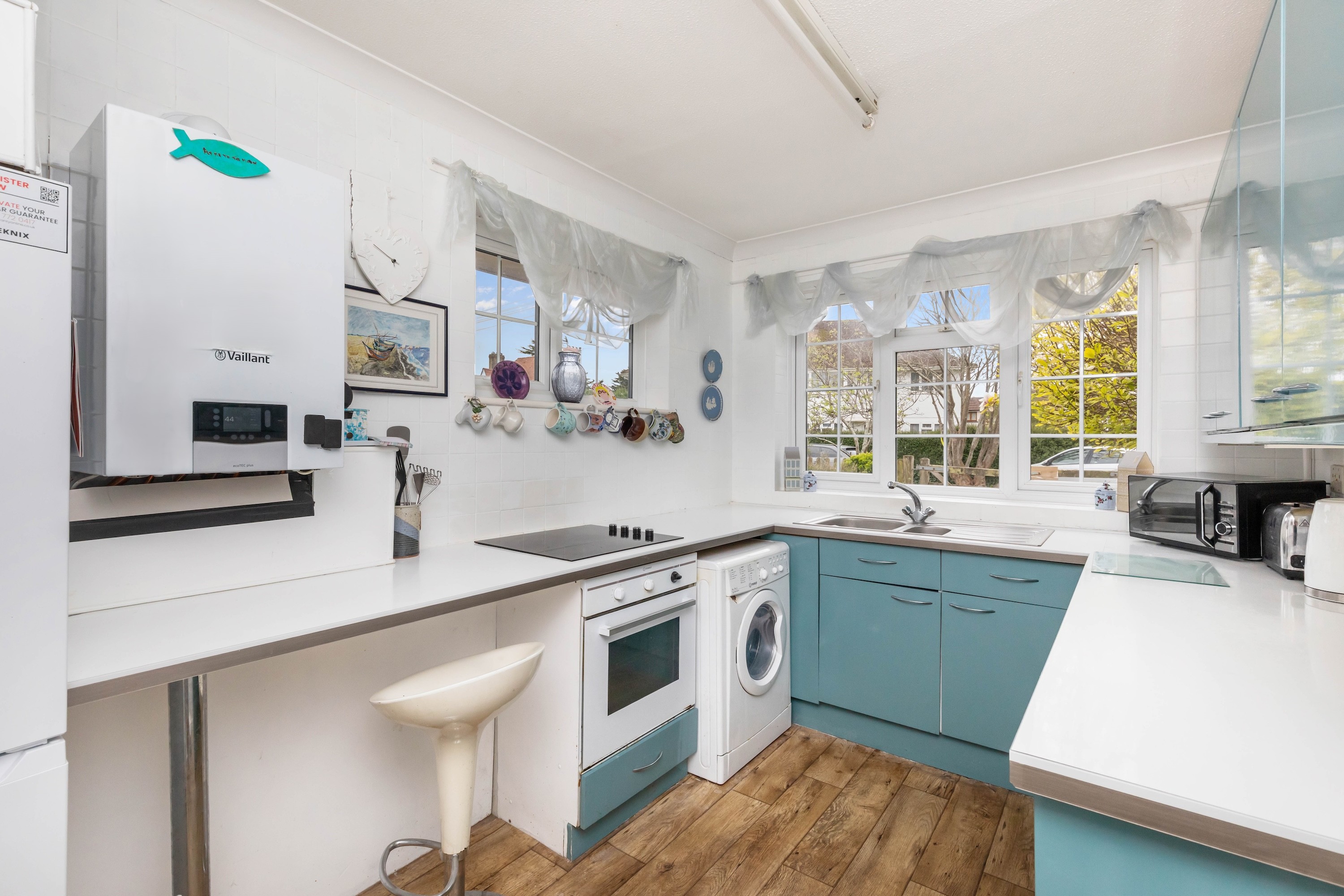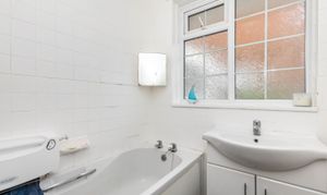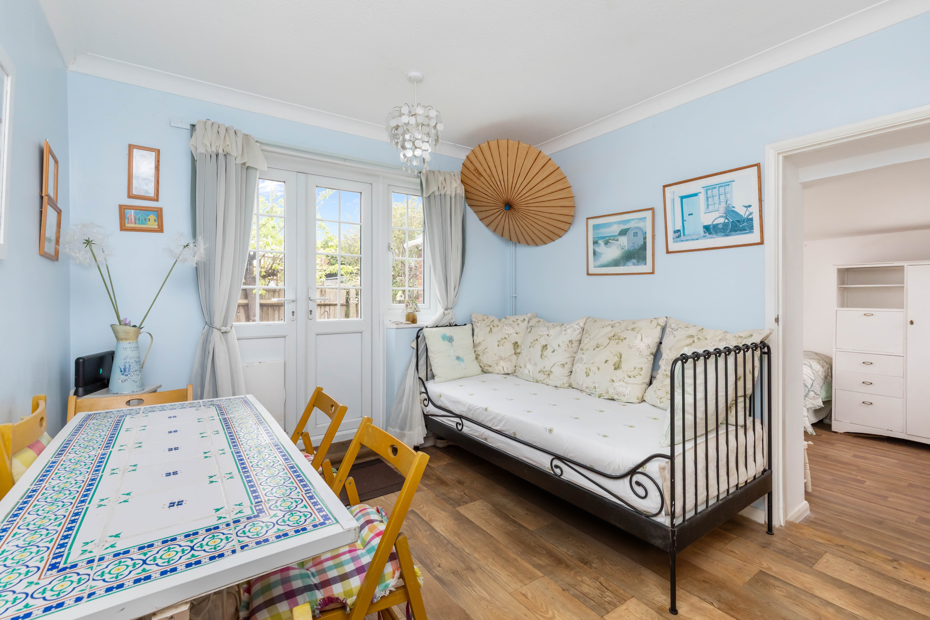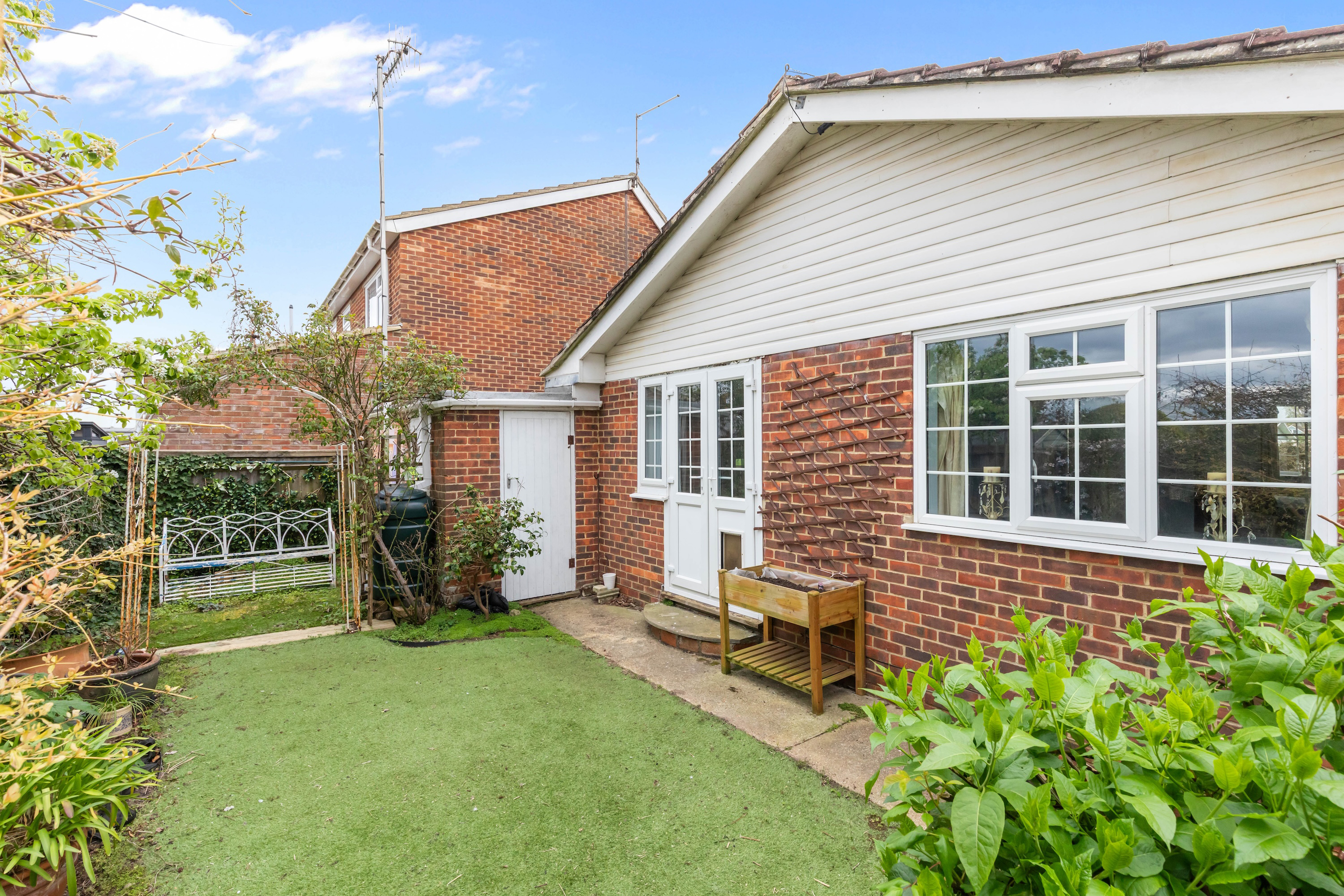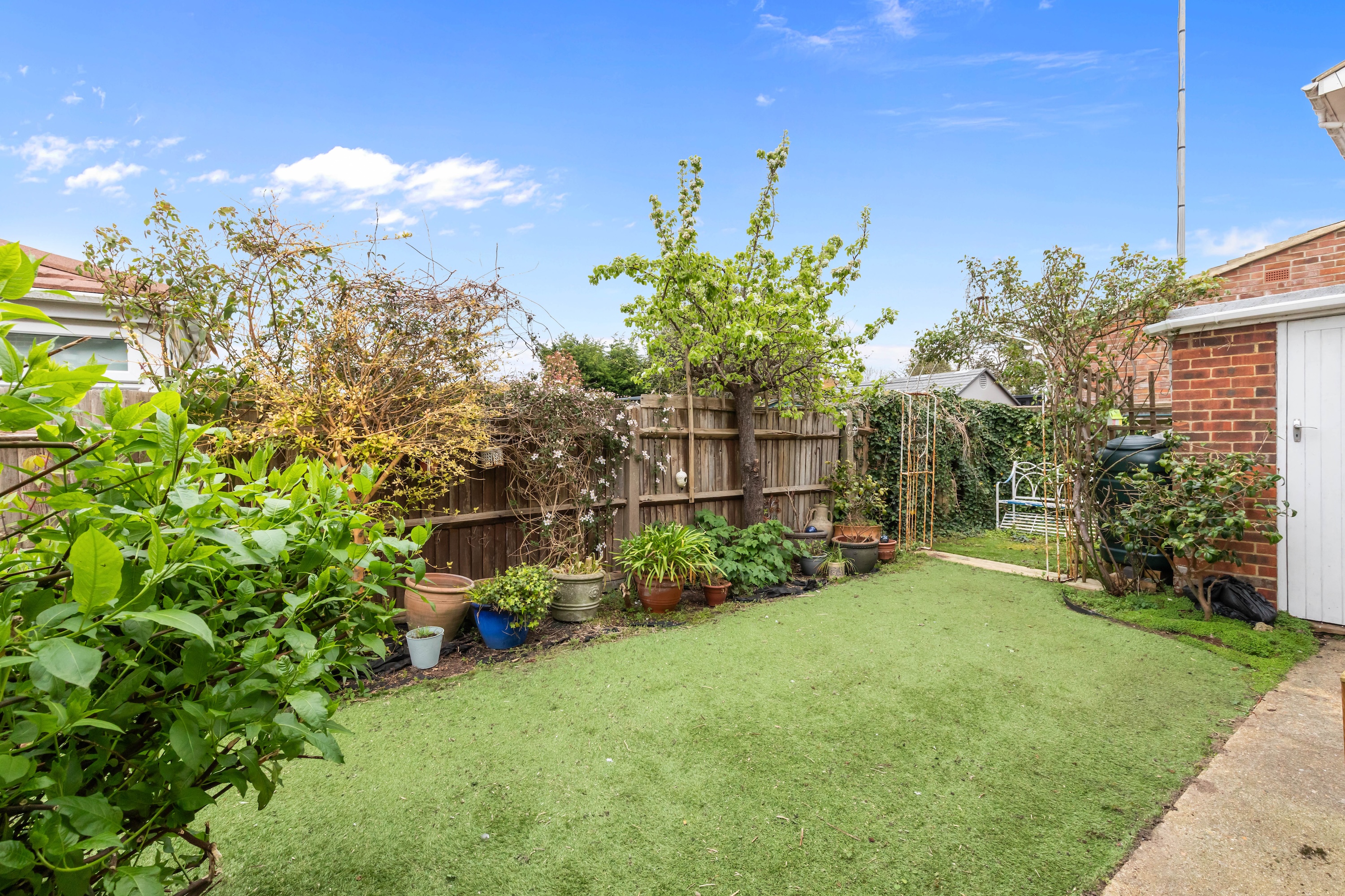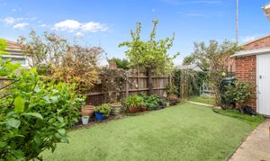 A further reception room can be found to the rear, offering access to the garden. Outside, the garden features mature planting and an artificial lawn, ideal for low-maintenance living.