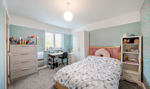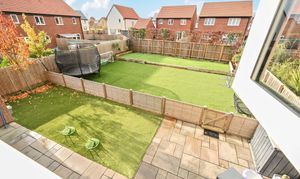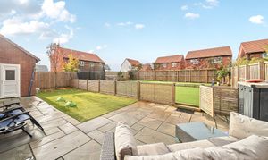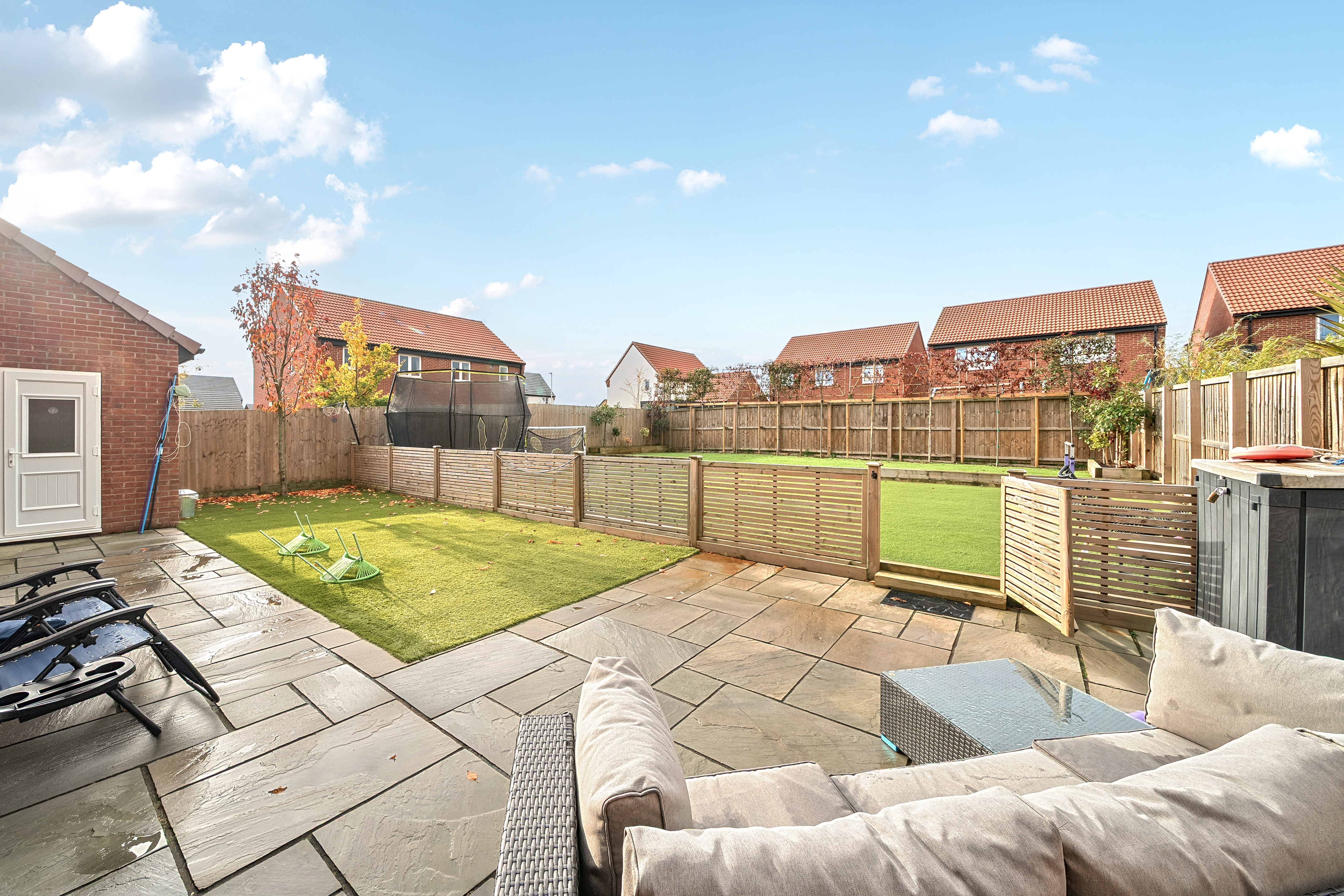 Outside, the property enjoys a large, enclosed rear garden laid to high-spec Astroturf with a patio seating area. To the front, a private driveway offers ample parking and access to a 20ft detached garage, alongside a charming lawn.