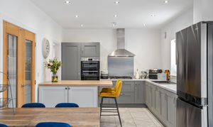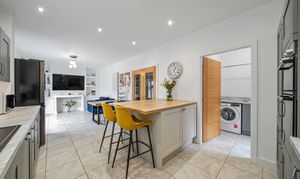 Upstairs, the property features four spacious double bedrooms. The principal bedroom enjoys a private en suite, while bedrooms two and three are connected by a contemporary Jack and Jill bathroom. A further well-proportioned double bedroom and a stylish family bathroom complete the first-floor accommodation.