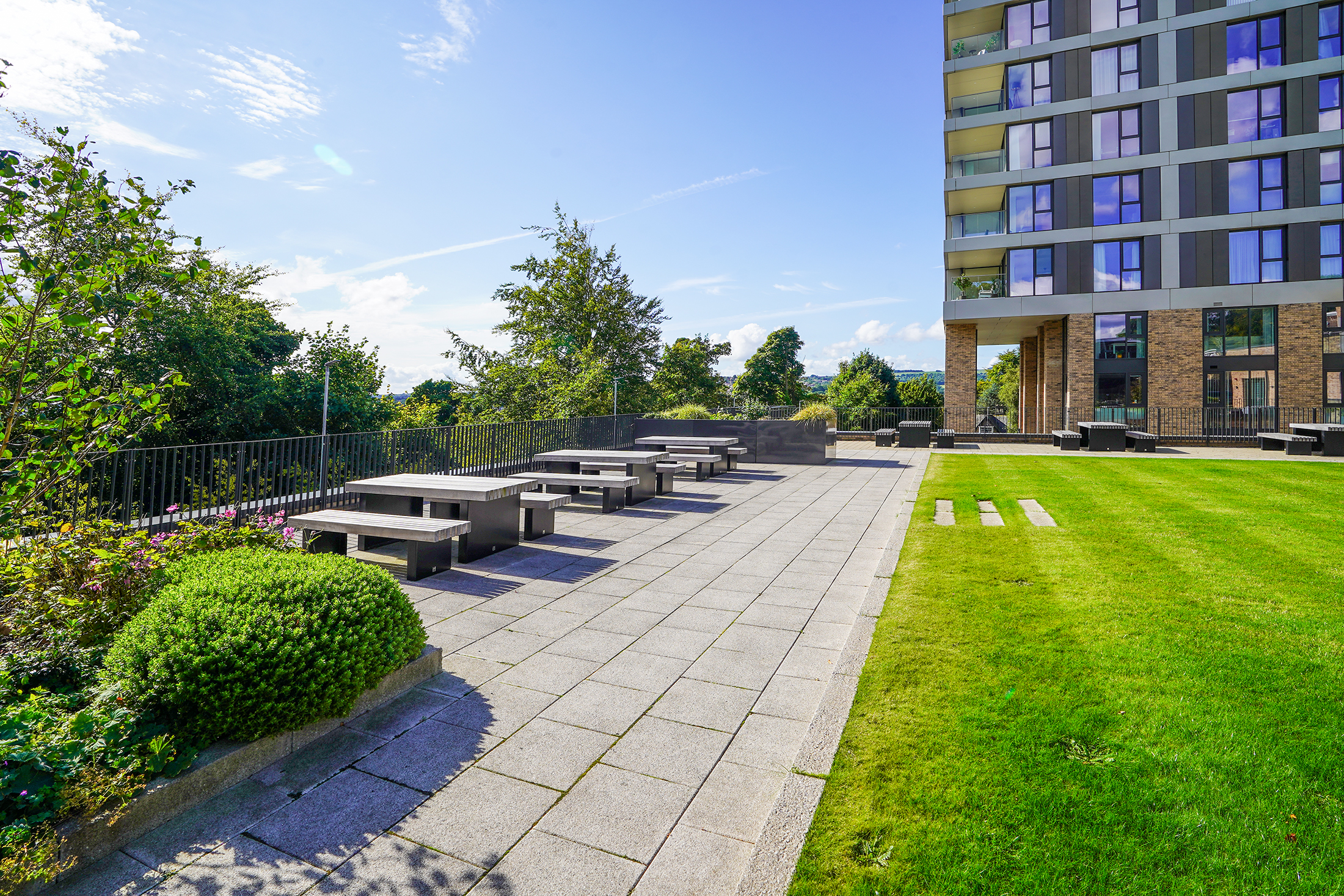 Hallam Towers offers high-end luxury amenities, including a concierge, gym, and swimming pool. The well-maintained communal gardens enhance the overall living experience. The exclusive development is centrally located, providing residents with a prime lifestyle in the heart of Sheffield and walking distance to the many cafes, bars, and restaurants in Broomhill and Ranmoor.