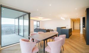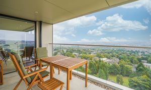 Apartment 1206 features a sizeable balcony that offers uninterrupted, panoramic views of the city. The apartment also benefits from having an allocated parking space and has seen a range of upgrades by the current owners including motorised blinds on all windows, chevron flooring, gold fittings & marble finish in the bathroom, a Bora extraction hob with upgraded Siemens appliances and a Quooker tap with hot/filtered water options.