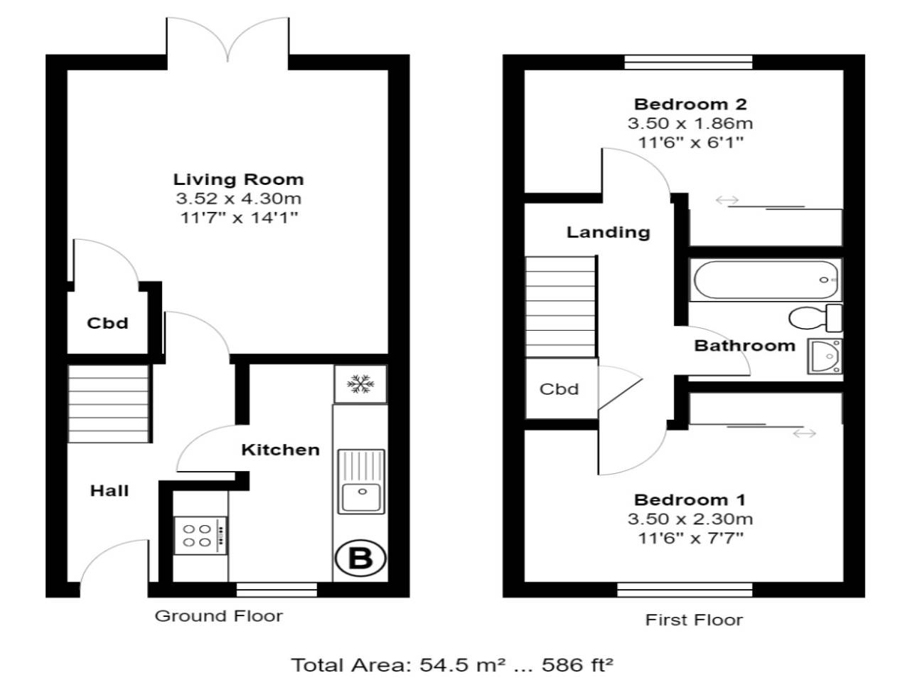 Situated to the rear of the ground floor is a living/dining room with under stairs storage cupboard and doors opening into the back garden. First floor has two bedrooms and a bathroom with wc, wash hand basin and bath with shower over.