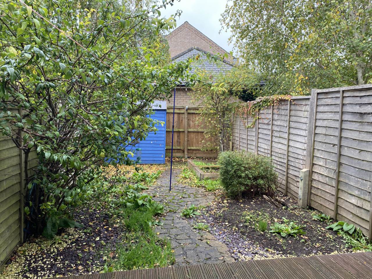 The back garden has decking to the rear of the property with a path leading to the shed and pedestrian access to the rear making it easy to store bicycles in the garden or store shed.