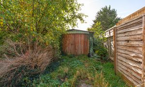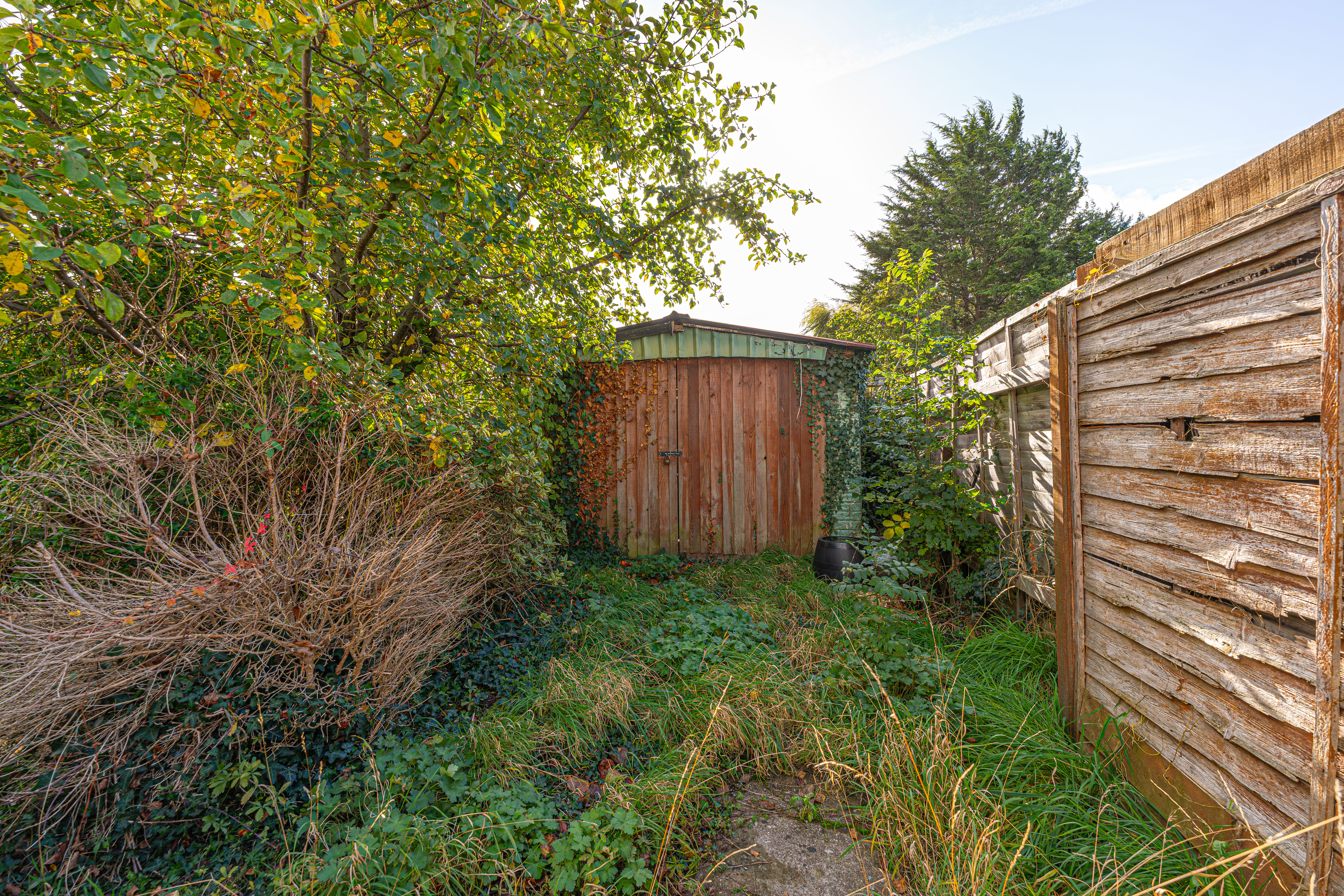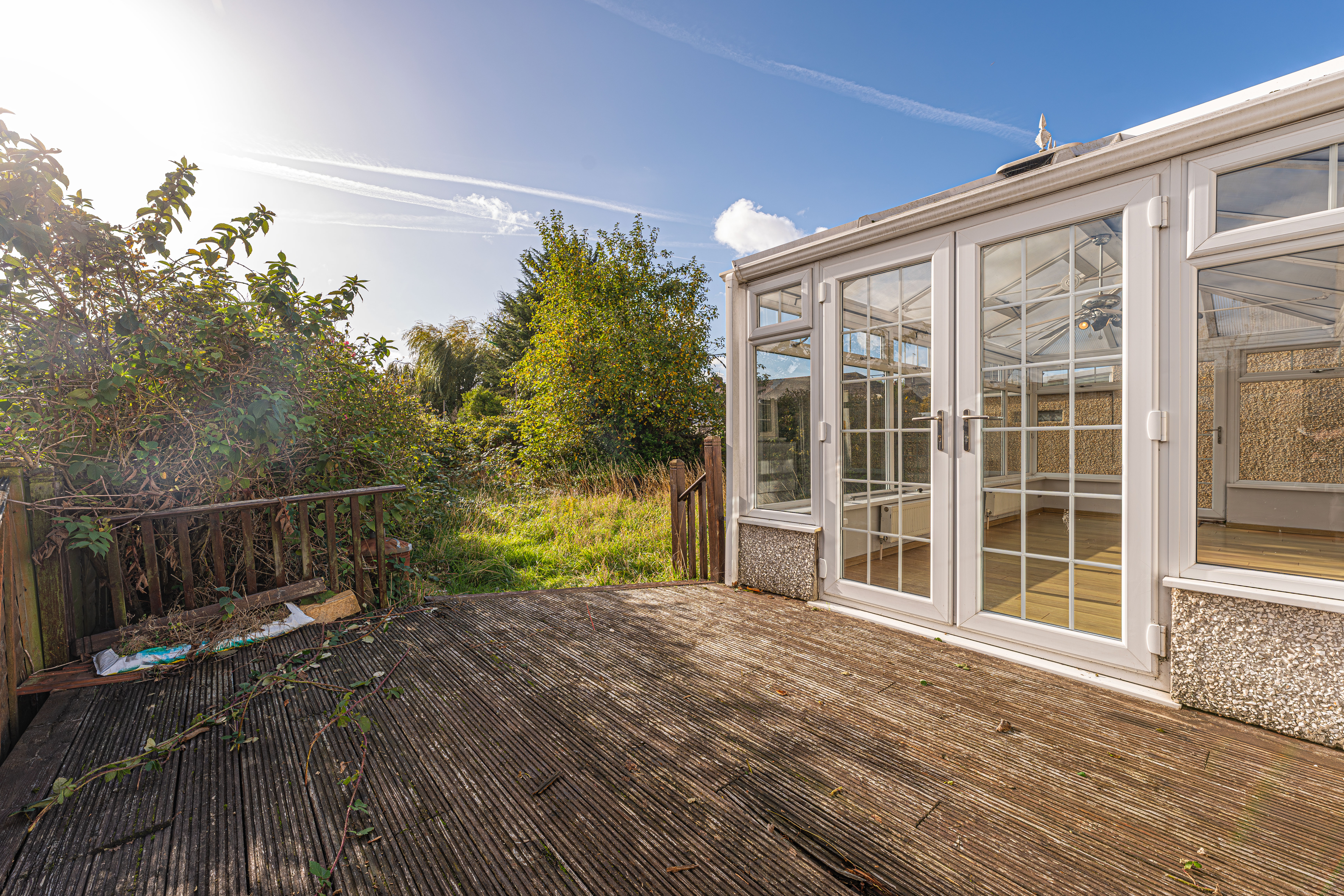 Stepping outside we can find a large rear garden, where we have a wooden deck and a large grass lawn beyond. The garden space can benefit from additional maintenance, including a replacement decking to create a relaxing outdoor retreat. This sizeable garden also presents a great opportunity for development and landscaping, with further patio space and a garage for additional storage. The property also benefits from a sizeable plot at the front of the house, with a huge patio and driveway that can provide additional space for lounging and entertaining, as well as considerable off-road parking space for a large host of vehicles.