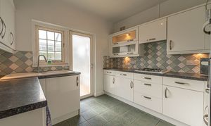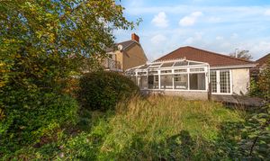 This wonderful bungalow offers a great deal of versatile space throughout, with all rooms being generously proportioned and flexible. The heart of the home is in the large living room, which can accommodate various furniture layouts and is ideal for relaxing and entertaining, with double doors that open directly to the rear garden. Another extensive reception room is positioned at the rear of the house in the sizeable conservatory, which further extends the plentiful living space, and is perfect for a dedicated dining and entertainment area. The conservatory also connects to the practical kitchen, which has ample storage fixtures and room for appliances to join the fitted hob, oven and grill. The conservatory could benefit from having a solid roof added, to create a more inviting space. From the hallway we can also find a helpful utility room, as well as access to the two generously sized bedrooms located at the front of the house. Both bedrooms are double in size, and flooded by natural light through bay windows, while one of the bedrooms features a great array of storage space from a large fitted wardrobe.