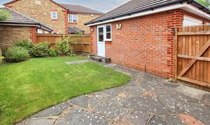 This delightful garden has a patio for tables and chairs and a lawn surrounded by flower and shrub borders. There is also gated side access and a side door to access garage.