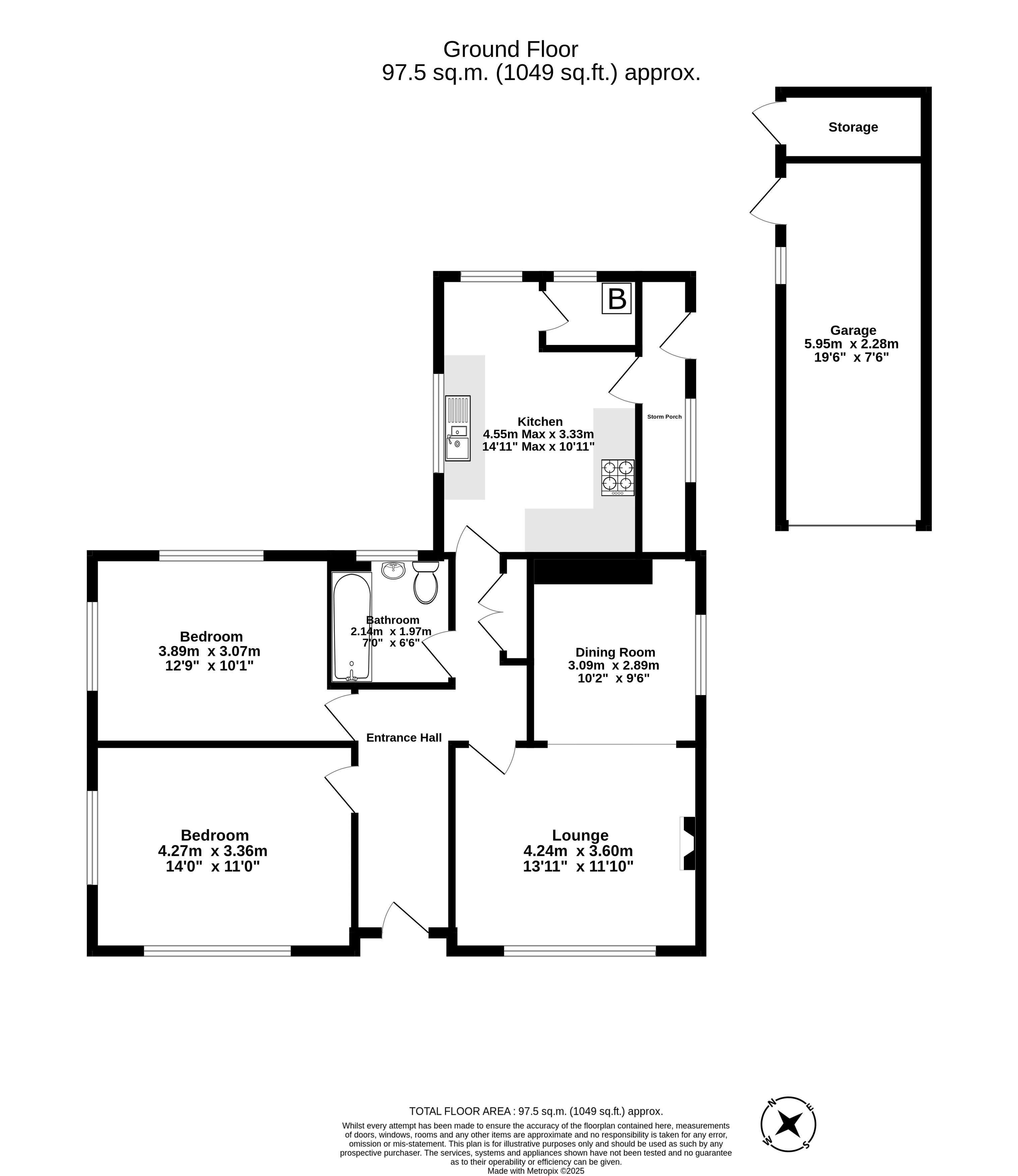Internally, this charming bungalow boasts original features and character details, such as the original flooring, adding a touch of heritage and warmth to the living space. The open-plan lounge and dining room create a comfortable area for relaxation or entertainment, while the two double rooms provide ample accommodation for families, downsizers, or those seeking a home office.