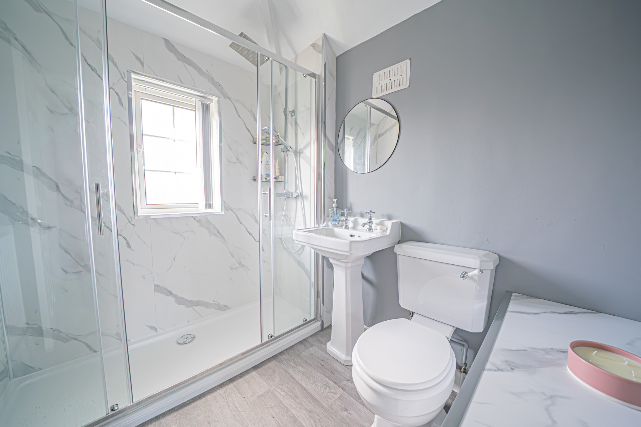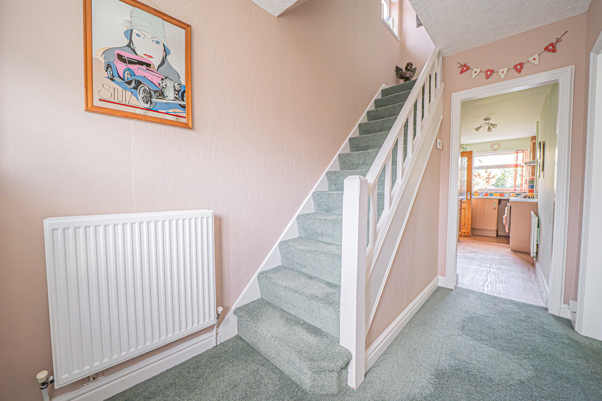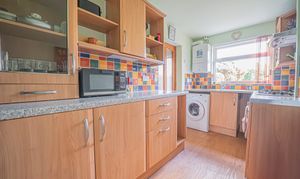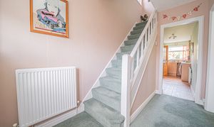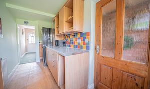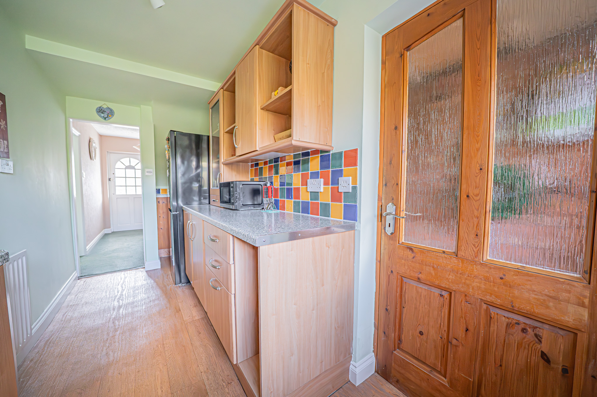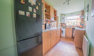 The fitted kitchen boasts ample work surfaces and offers views overlooking the rear garden - a delightful backdrop for culinary endeavours. Leading off the kitchen is the side passage which has secure doors either end providing extra storage and ease of access to the front and back of the property Upstairs, the property features three generously sized bedrooms - two doubles and a versatile single - each serviced by a family bathroom.