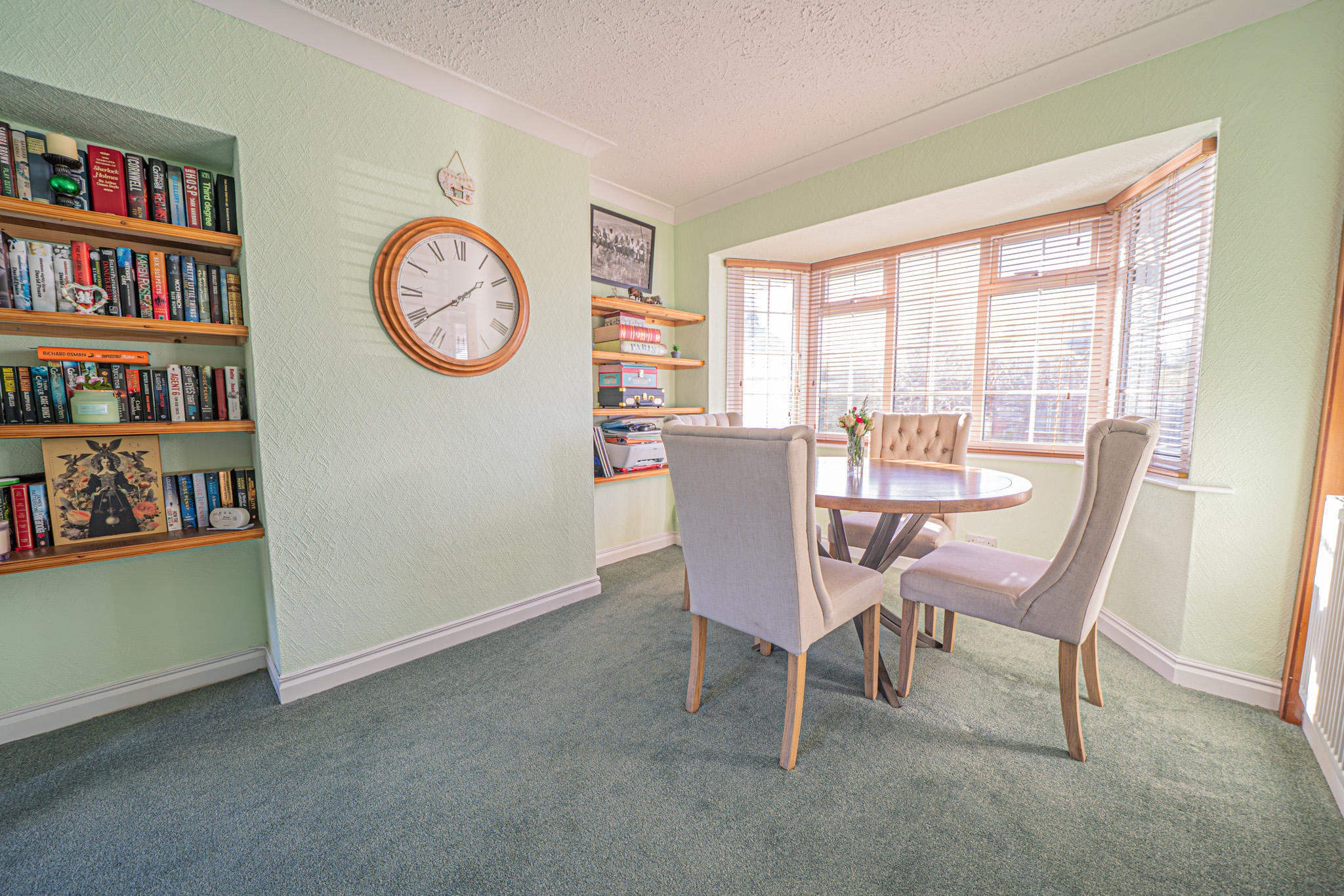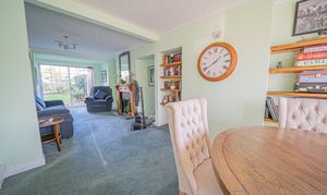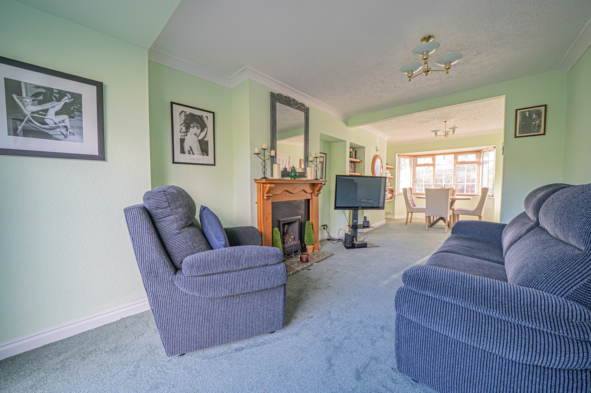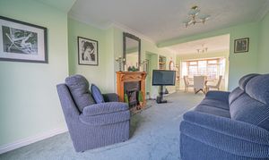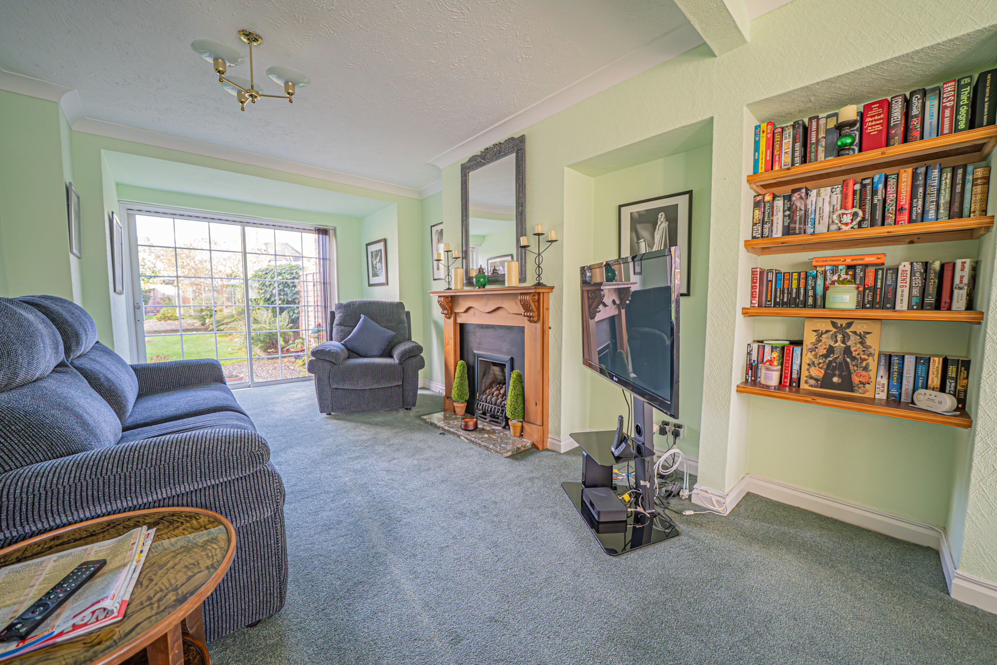 Approaching the house, you are greeted by a well-maintained foregarden and a driveway capable of accommodating two vehicles. The enclosed porch and inner front door leads to the entrance hallway which provides access to the interior of the home, leading you into the spacious living/dining room with sliding patio door providing access to the rear garden, bay window to the front and gas fire, this room benefits from dual aspects allowing an abundance of natural light to fill the space.