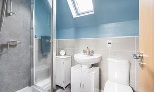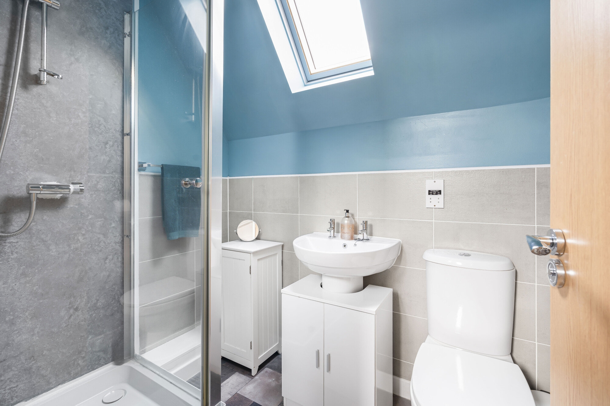 To the second floor a further two spacious double bedrooms, both double aspect with Velux windows to the rear and a separate shower room.