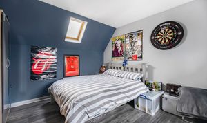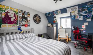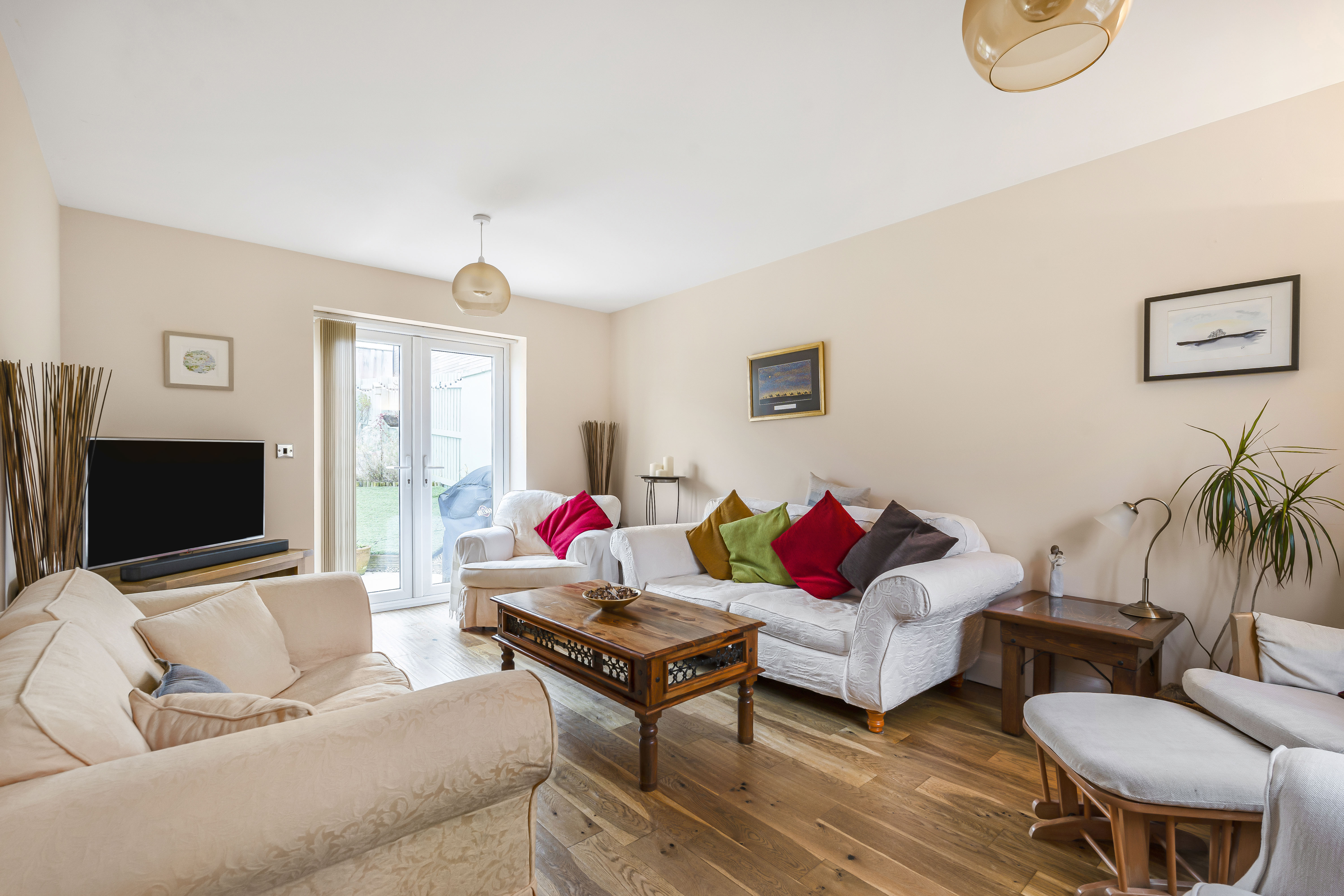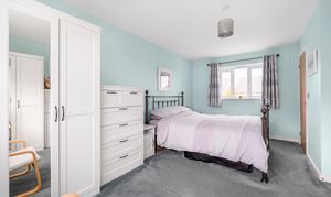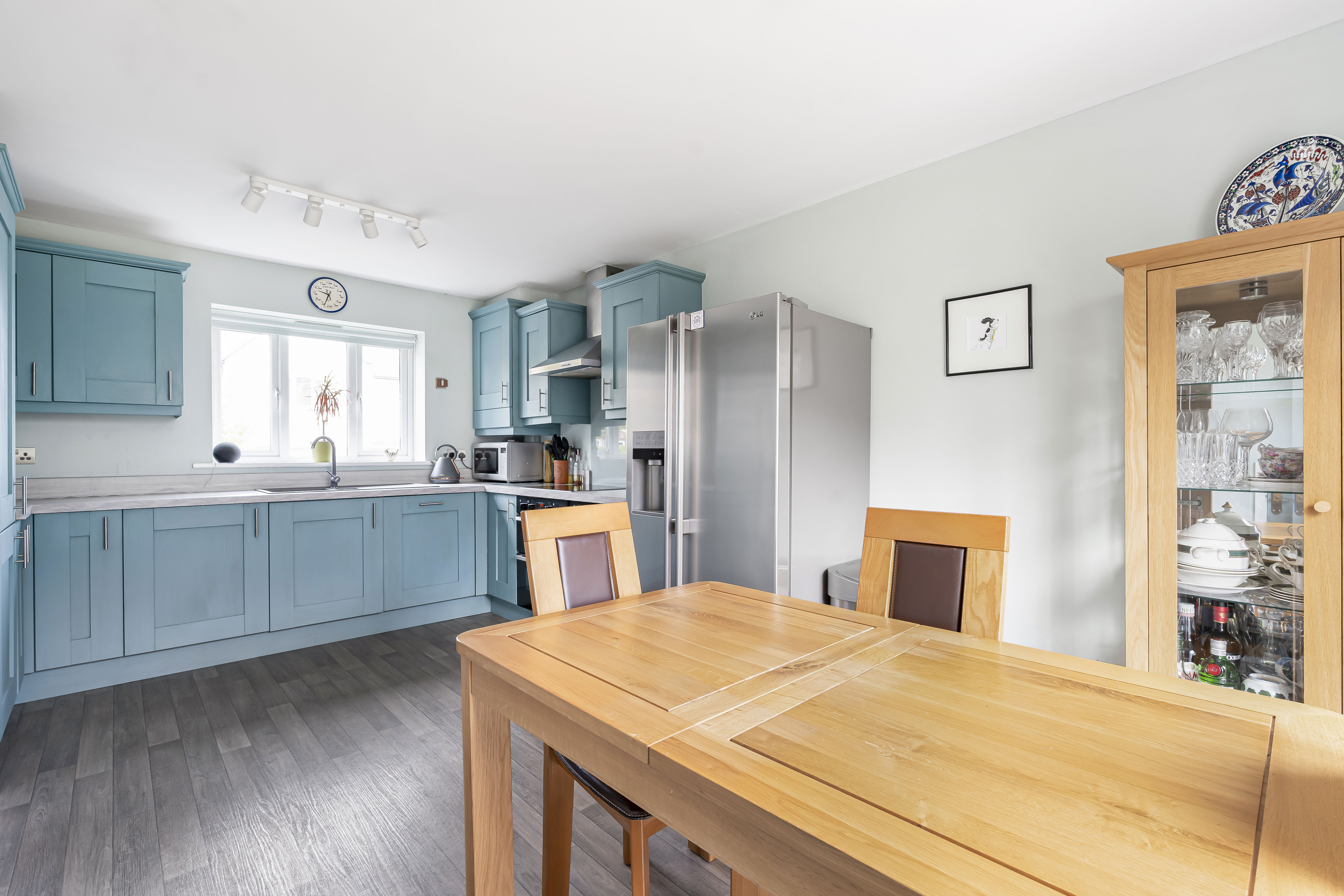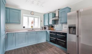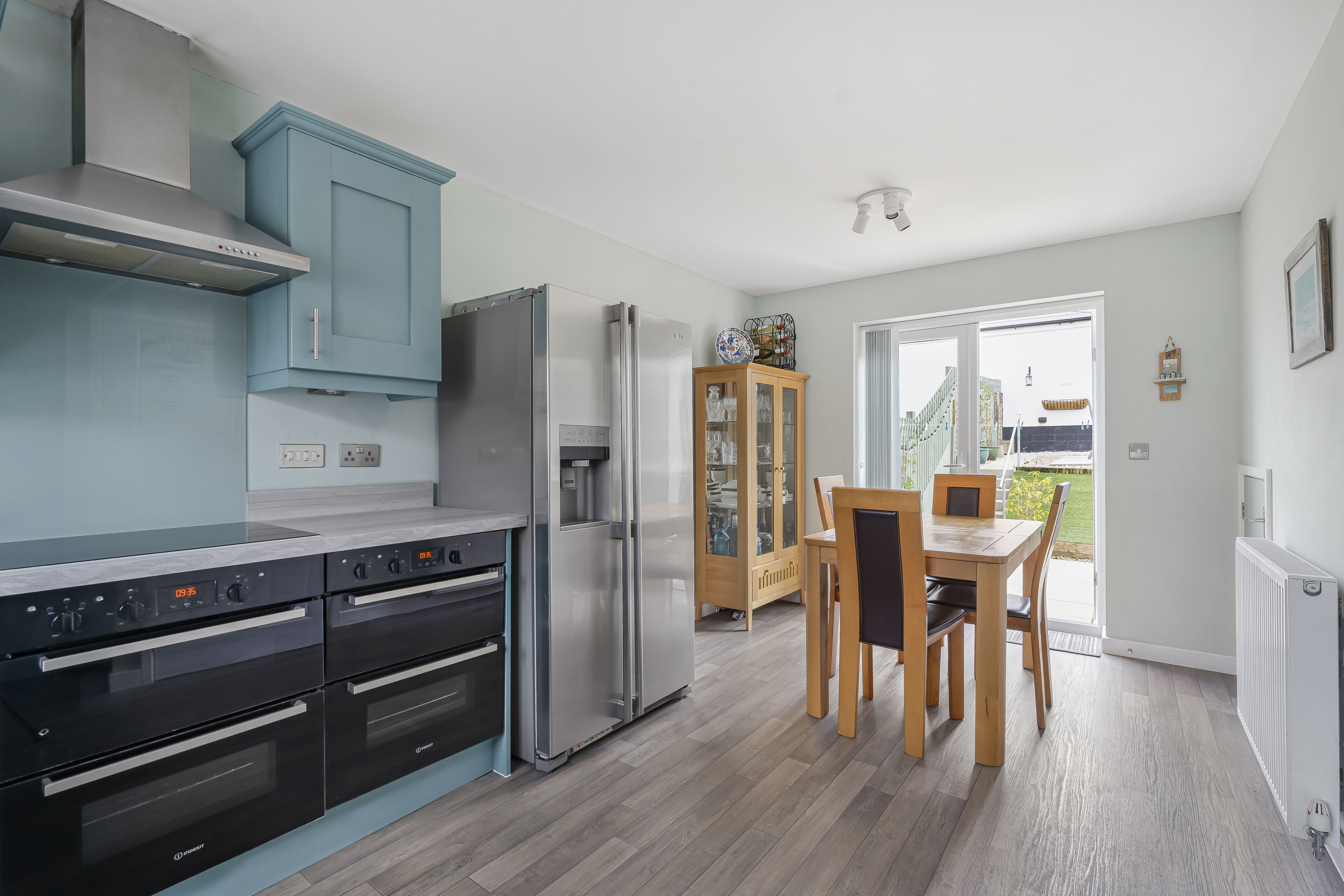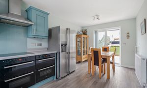 The dual aspect Kitchen/Diner also has French doors out to the garden with space for family dining table. The kitchen offers a range of wall and base cupboards with work surfaces over, inset one and half bowl with drainer, two built in double ovens, induction hob with extractor over and splash back, integrated dishwasher and one year old washer/dryer, space for fridge freezer. The vendor has replaced the sink, taps, work surfaces, two double ovens, induction hob, splashback and flooring all within the last two years.