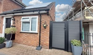 A path surrounds the annex with the area to the left hand side being ideal for cycle storage. Ther is no garden but a gate gives access to the nearby park.