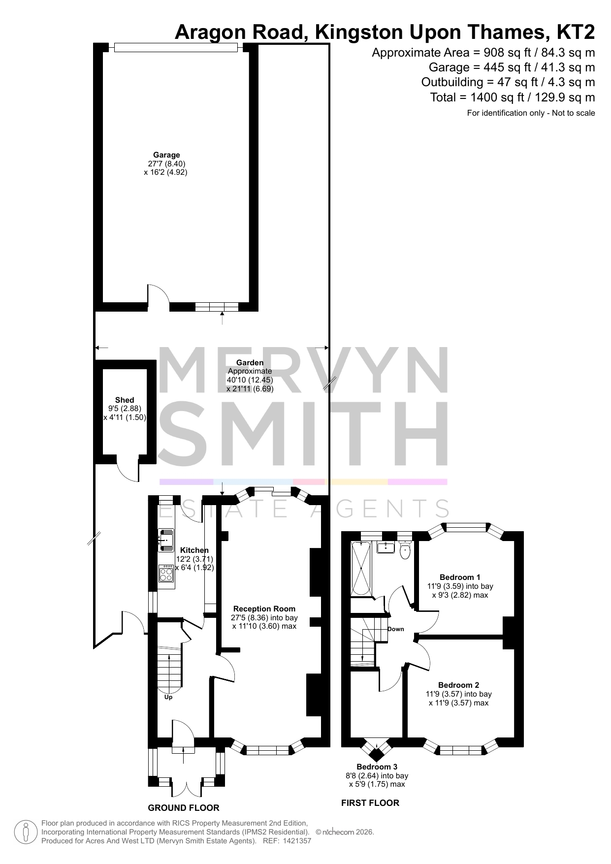- 2 double bedrooms with bay windows and wardrobes : 3rd single bedroom : 1st floor bathroom.