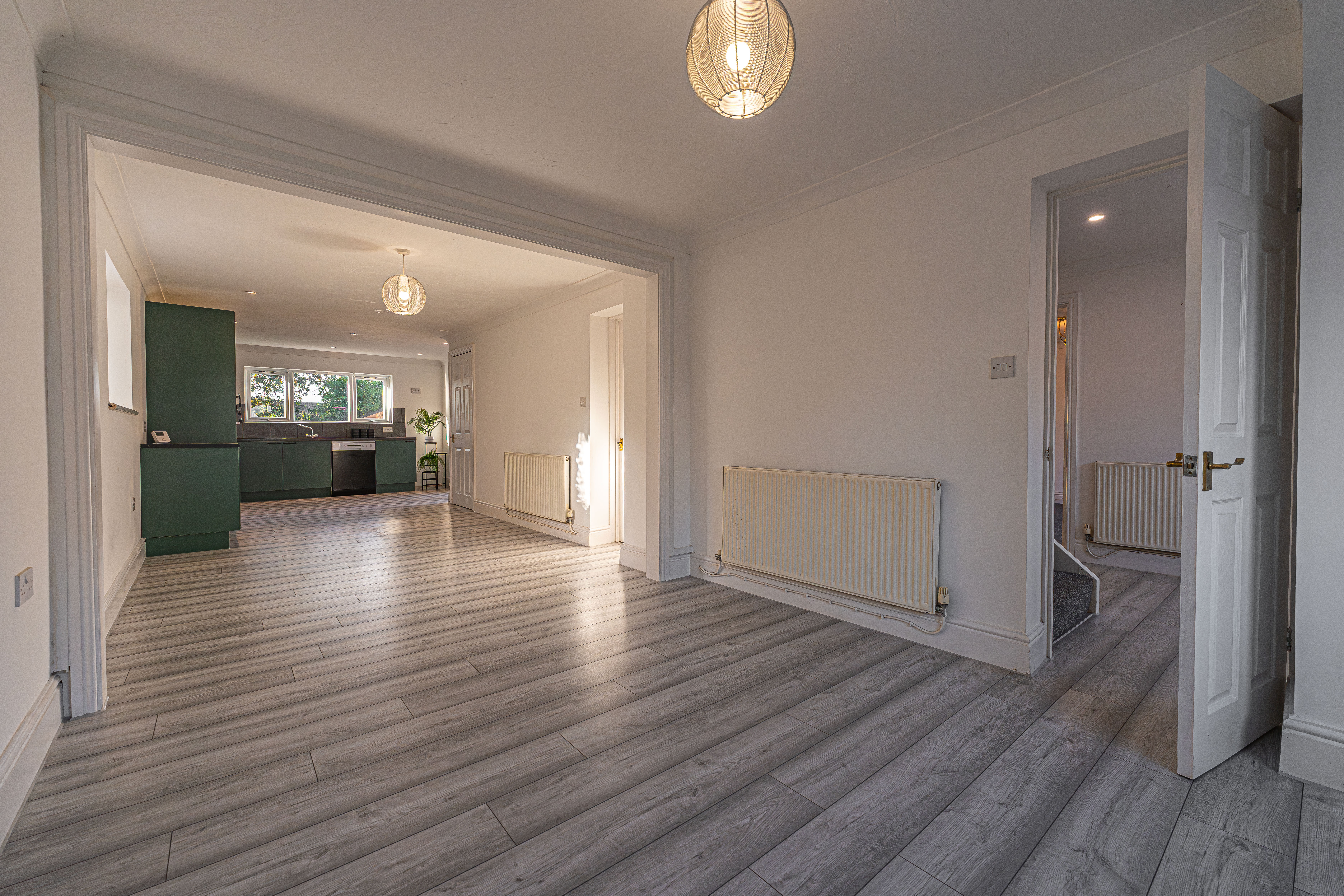 This impressive home offers vast living space across a multiple bedrooms and reception rooms, making this a great choice for a growing family looking for an abundance of flexible space. We enter to the front of the house arriving, with the welcoming hallway offering a helpful cloakroom cupboard, and leading into two expansive living rooms which are flooded by natural light. with One of these reception rooms features a spacious open plan design to stretch all the way to the rear of the house, offering plenty of room for both a secondary lounge and a dining room next to the well appointed kitchen. This fantastic kitchen space showcases a vibrant design with a wide range of storage fixtures, as well as multiple integrated appliances and a useful pantry cupboard. The kitchen also opens directly to the rear garden, and further connects to a helpful utility room and W.C which can also be accessed from the entry hall.