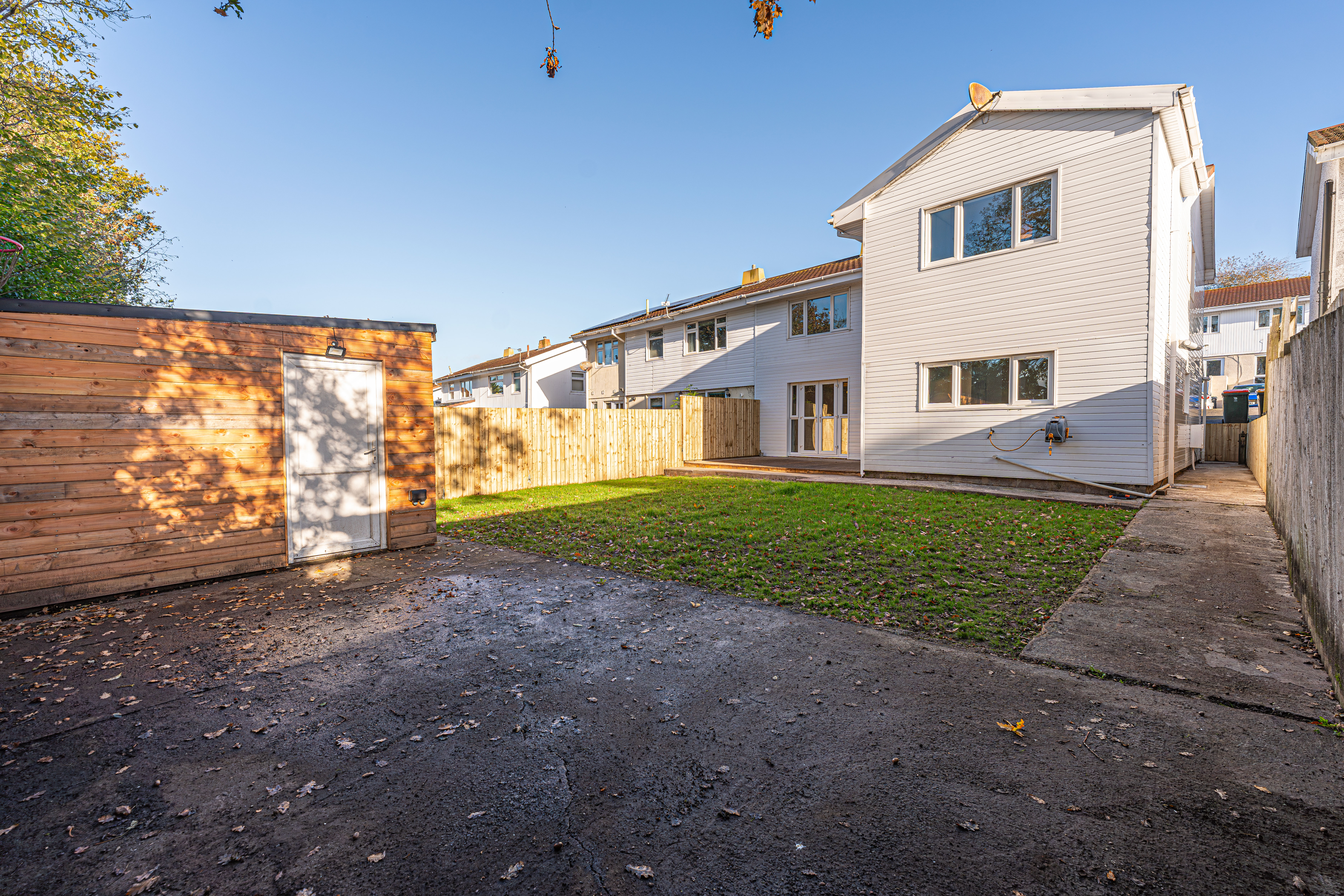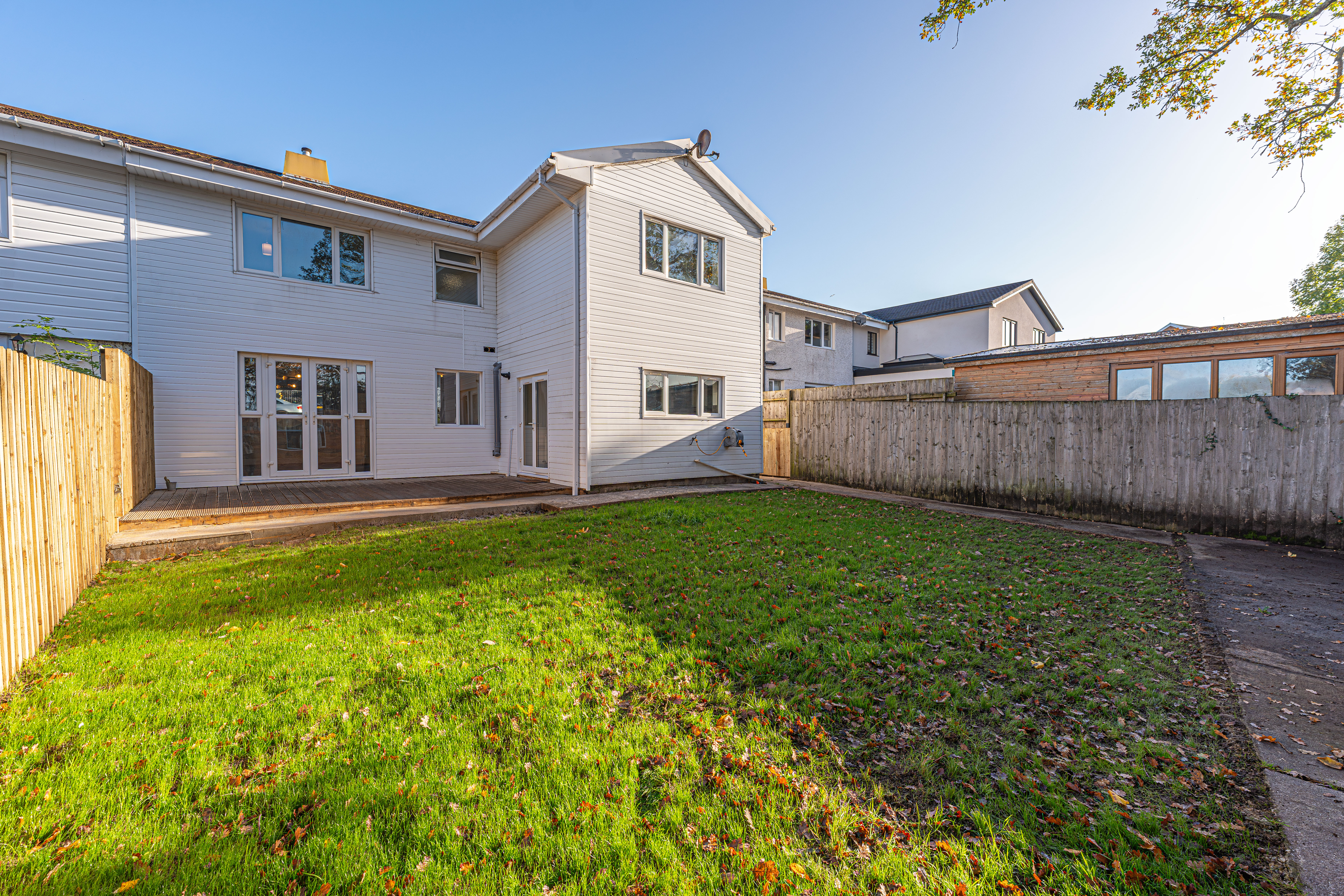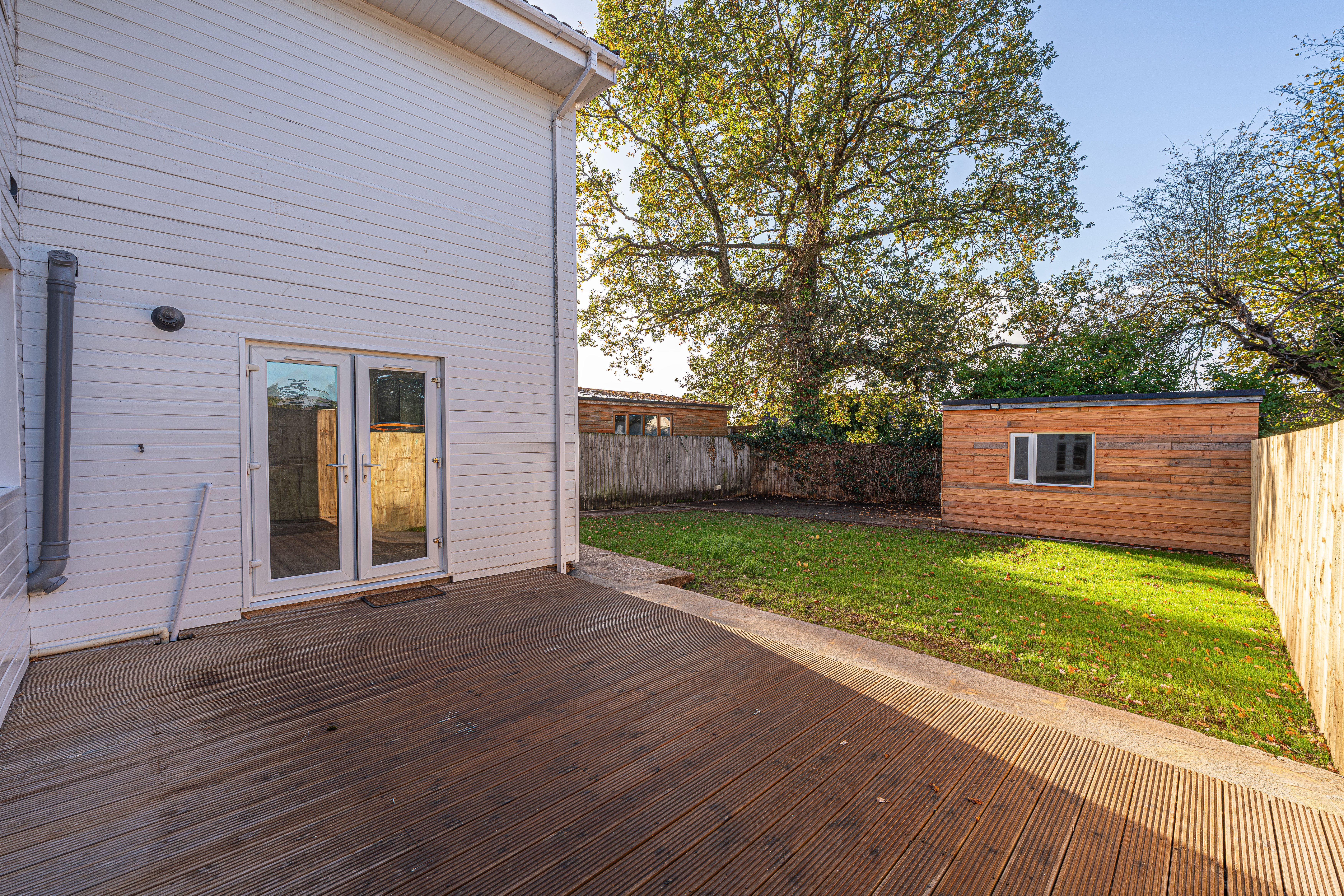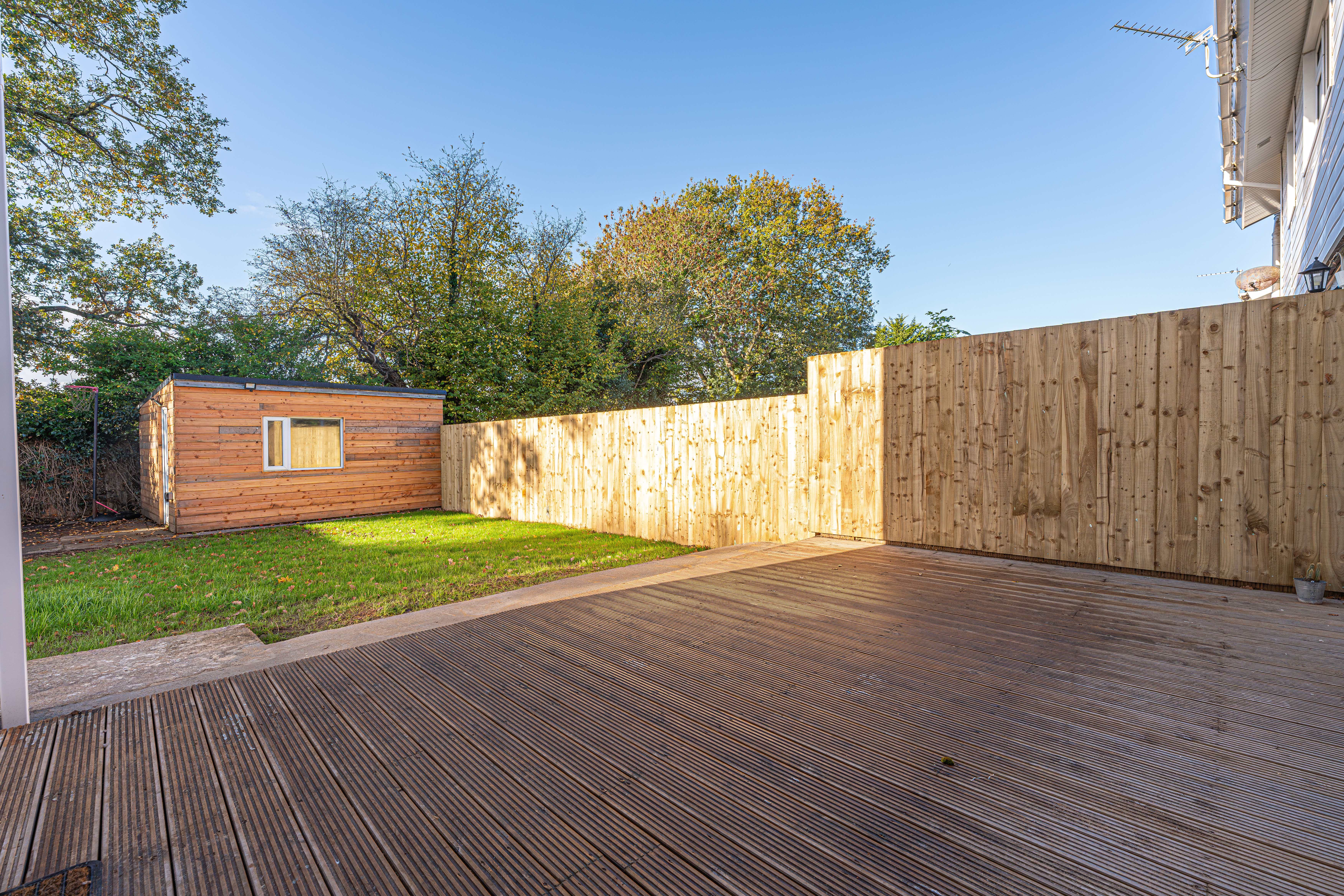 Another standout feature is the substantial private garden at the rear of the house, which is fully enclosed, and offers a fantastic size for the whole family to enjoy. Showcasing a well-maintained lawn, and multiple seating areas with both a patio and wooden deck, the garden is perfect for all manner of outdoor activities, and well suited for relaxing at the end of a long day, and welcoming guests to catch up over tea/coffee and dining al-fresco style. The garden also showcases a helpful shed for storage and multi-functional conversions, while another highlight is the large driveway at the front of the house, which can provide convenient parking for 2-3 vehicles.