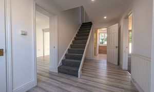 To the first floor we can find an incredible five bedrooms, of which four are generously sized double rooms, while the fifth is a comfortably sized single which could work perfectly as a home office, dressing room or nursery. Two of the bedrooms are benefitted by en-suite shower rooms, while the communal bathroom is found from the hallway with a sleek design, as well as a bath and shower suite, offering a great ratio of bathrooms for families to enjoy.