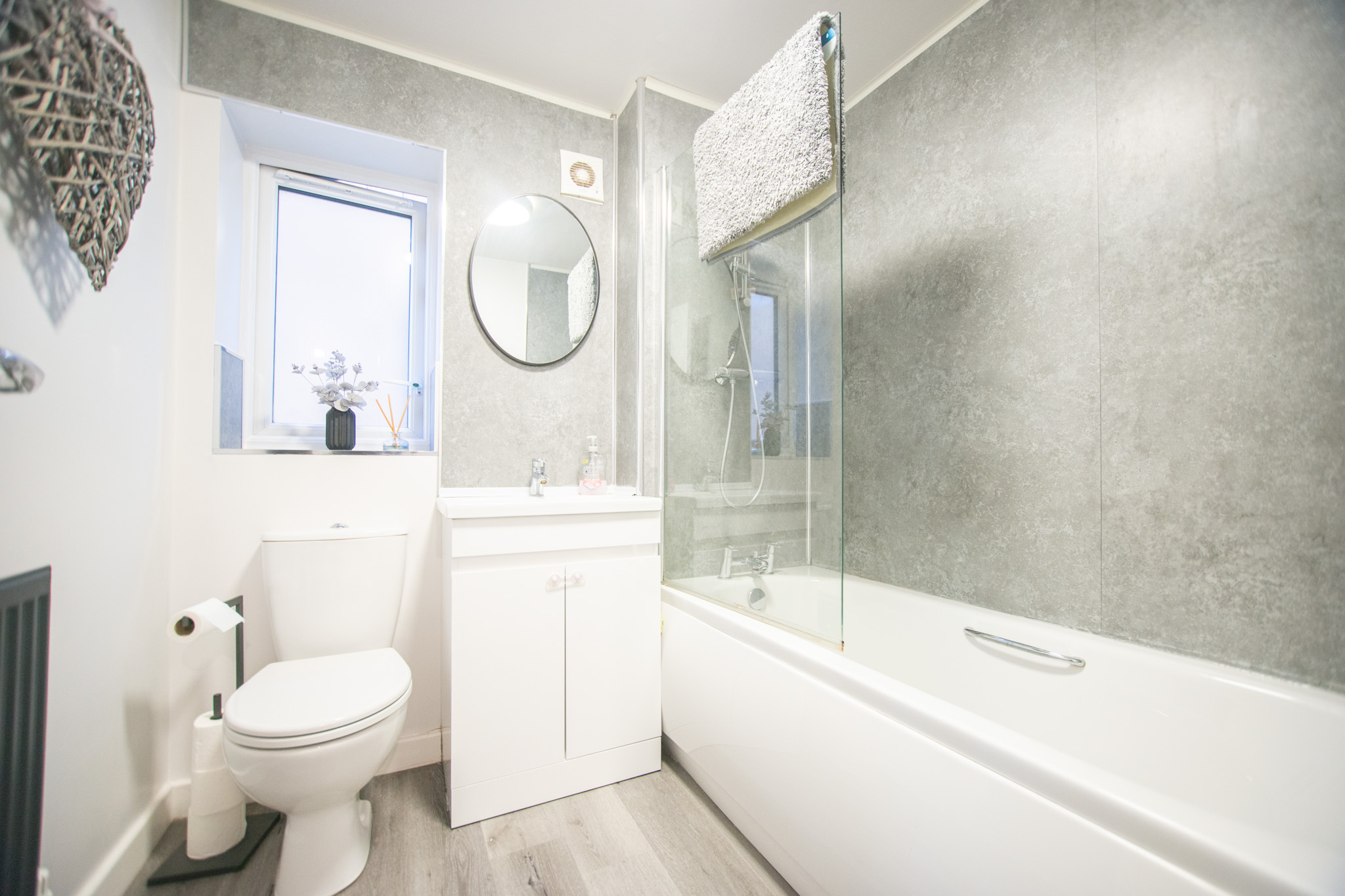 Both bedrooms are generously sized and finished to a high standard. The modern bathroom features stylish fixtures.