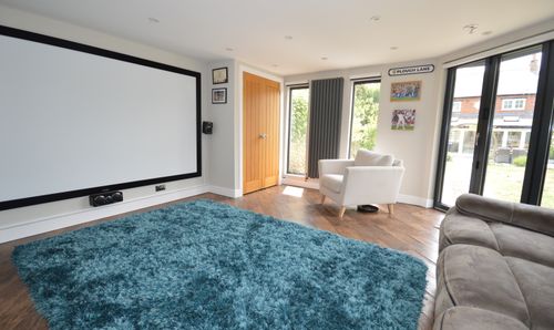 To the front of the property there is a block paved driveway and a further gravelled area which together, provide off street parking for approximately four cars. There is also a half sized garage which provides useful storage for bikes and gardening equipment. To the rear, the good size garden is a superb feature of the property, extending to approximately 75’ and having been attractively landscaped, offering a high degree of seclusion. There is a large patio immediately abutting the property which leads on to the large area of lawn with mature tree and shrub borders. There is a further paved seating area to the rear and a pathway which leads to the recently constructed home office/studio.
