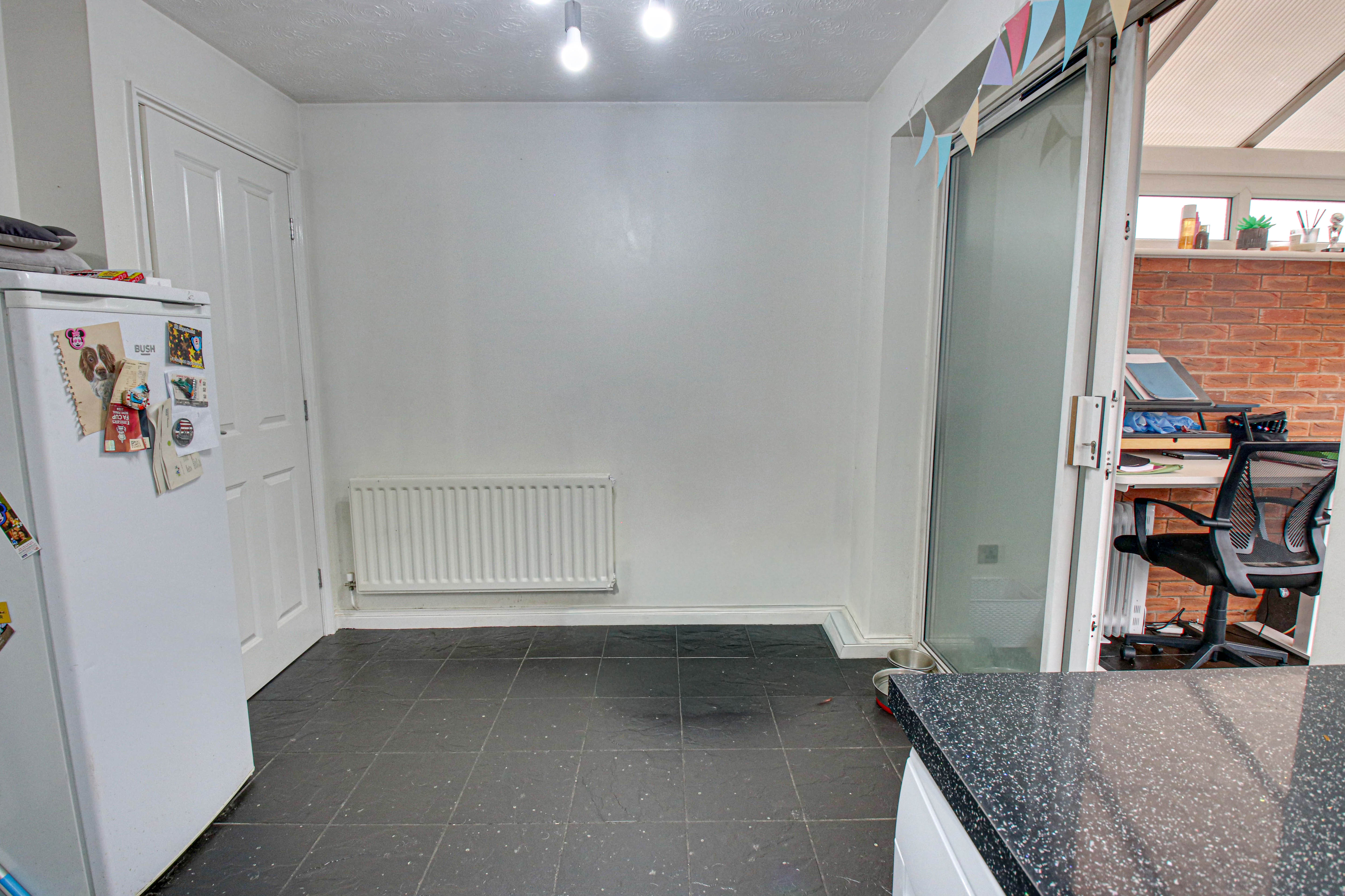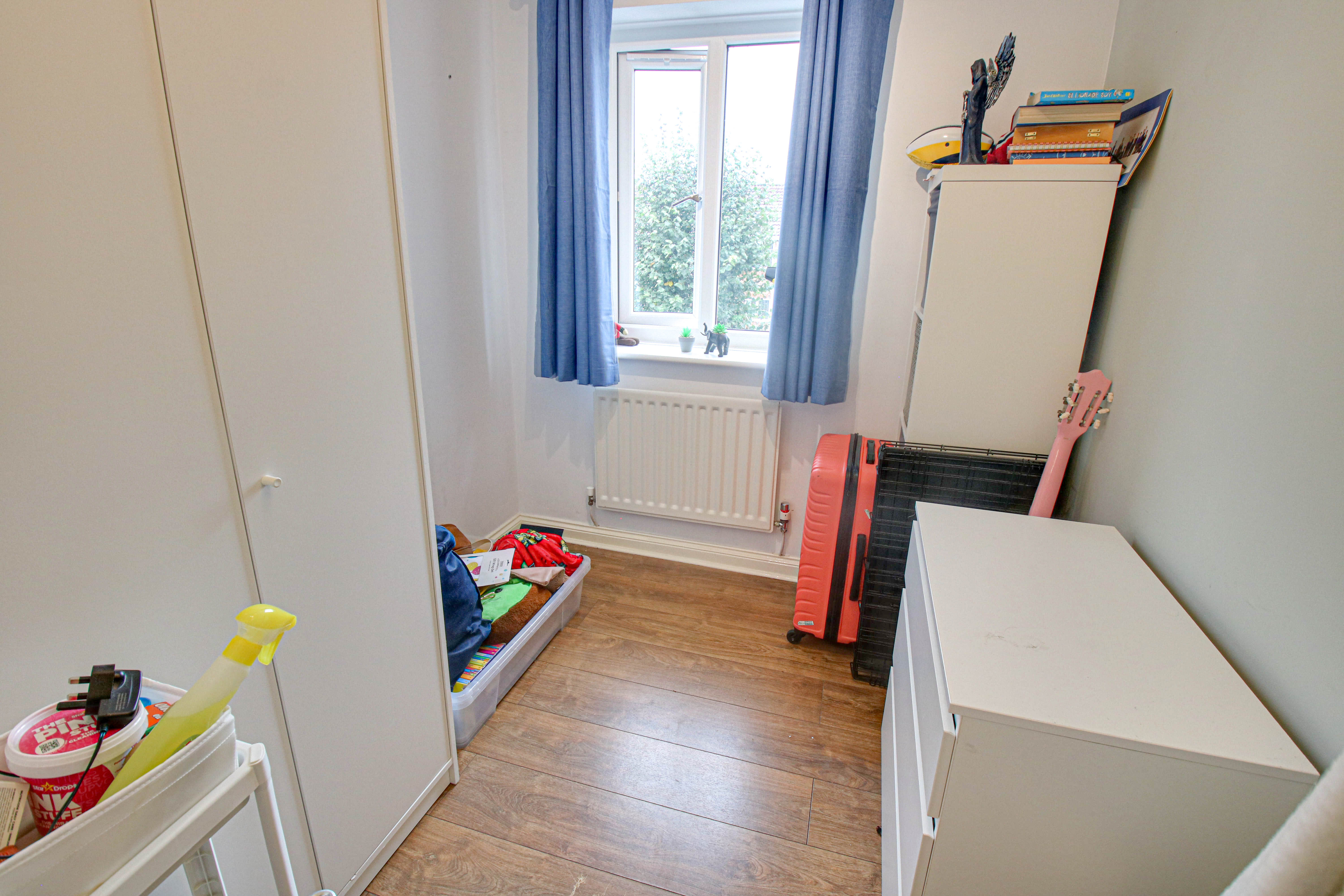 Rear facing upvc double glazed window, laminate flooring and radiator.