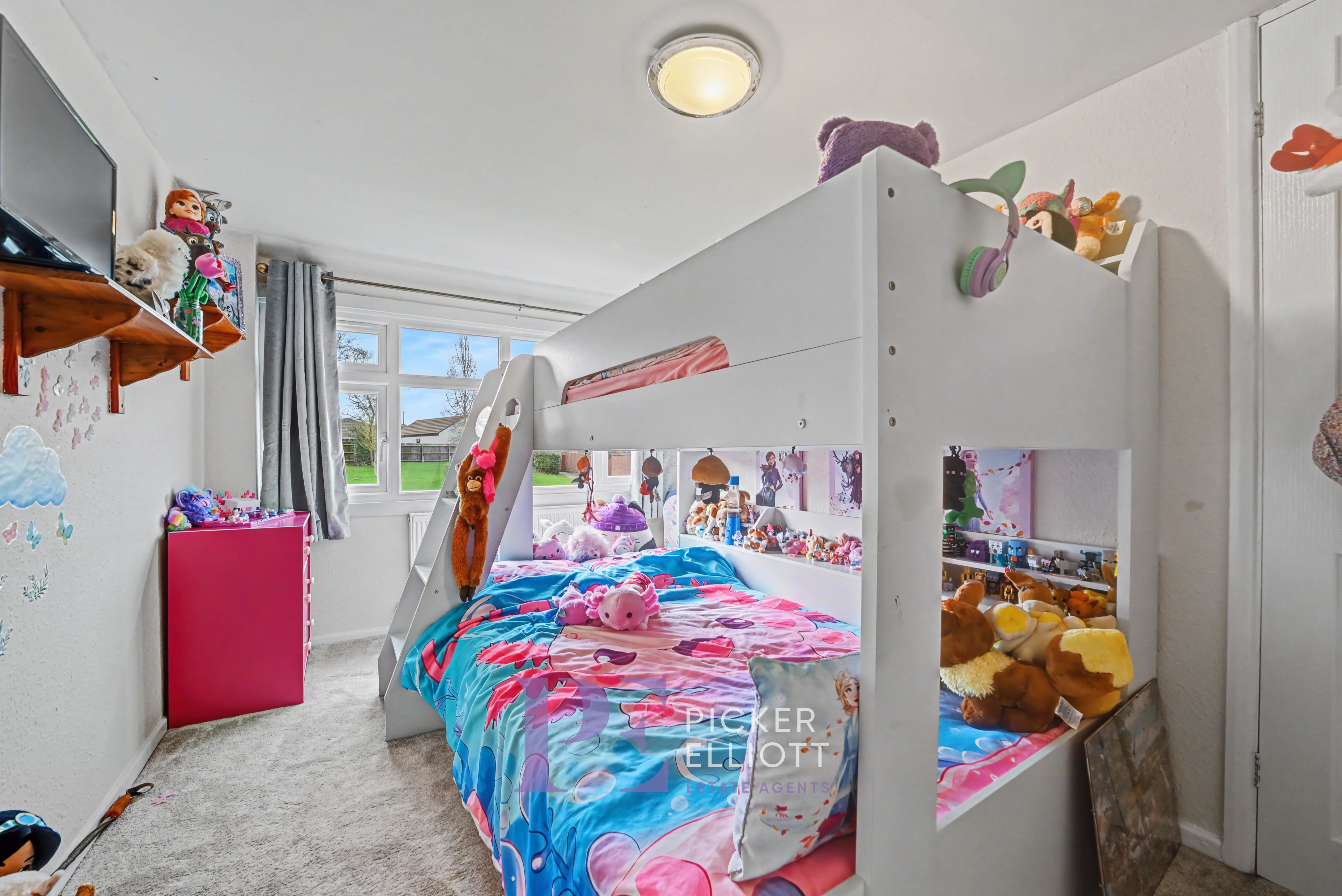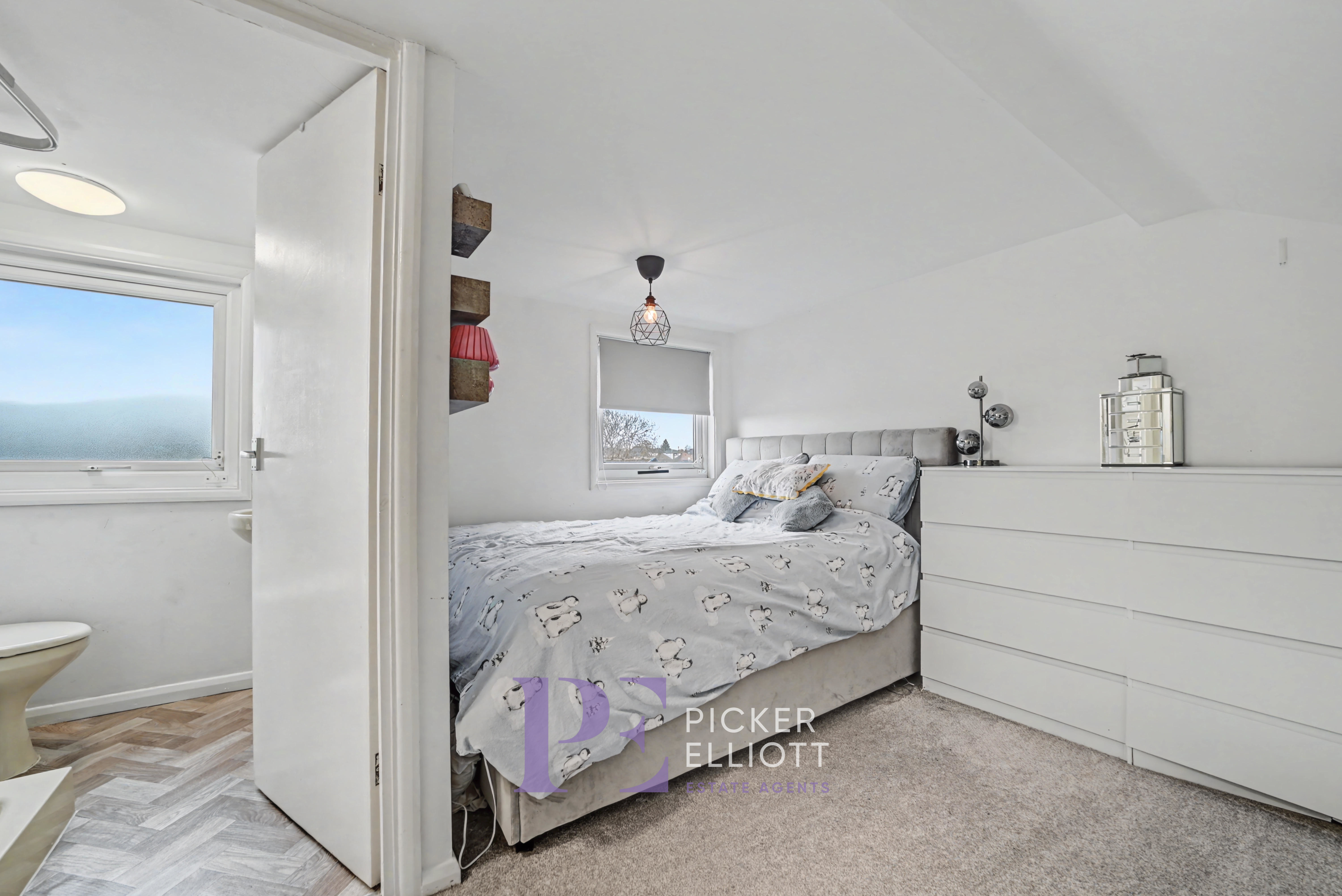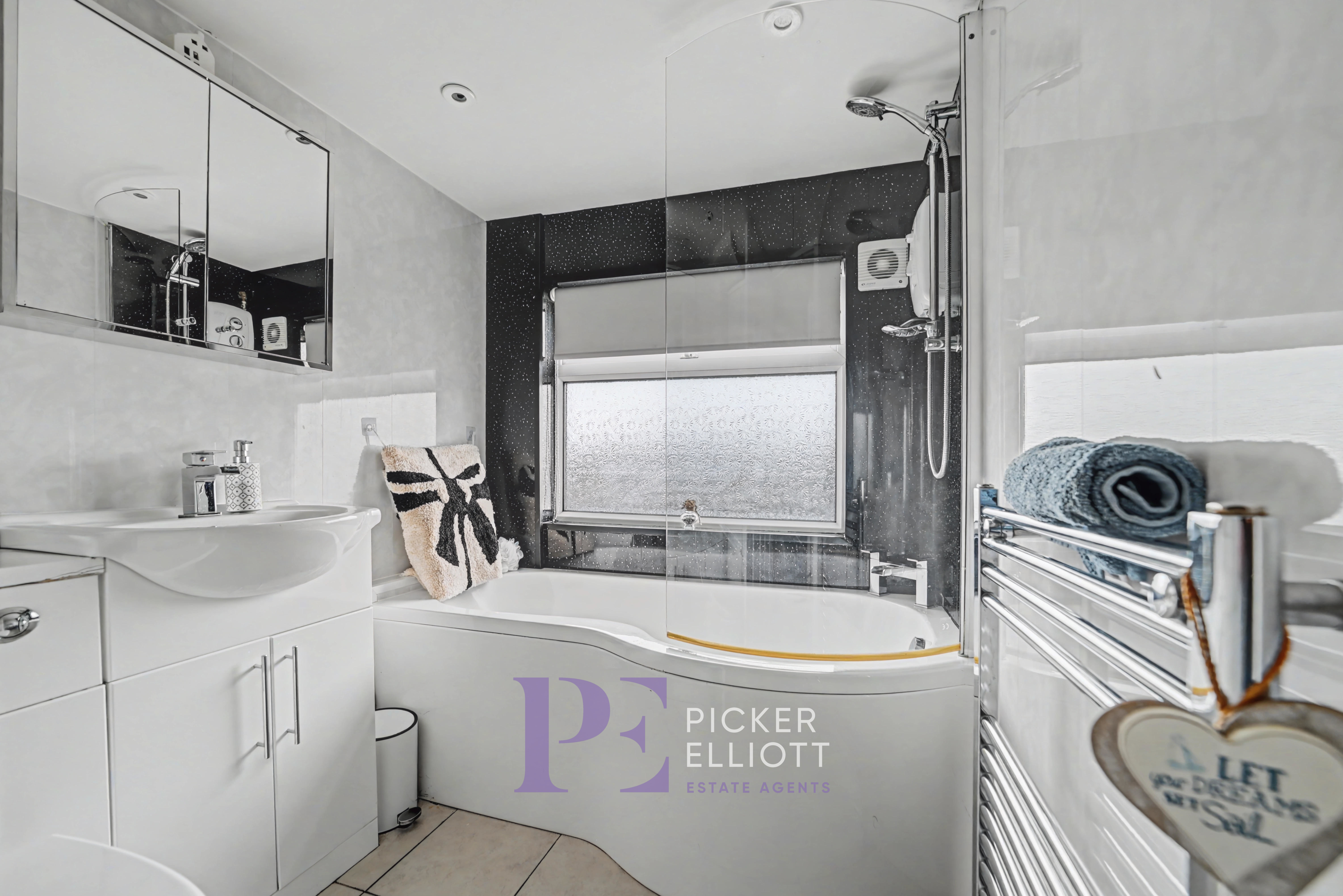 The bedrooms offer versatility, with features such as built-in wardrobes, modern lighting fixtures, and large windows that maximise natural light. The family bathroom showcases contemporary fixtures, with a shower over the bath with a curved glass screen, heated towel rail, and integrated storage for convenience. The main bedroom enjoys the benefit of an ensuite.