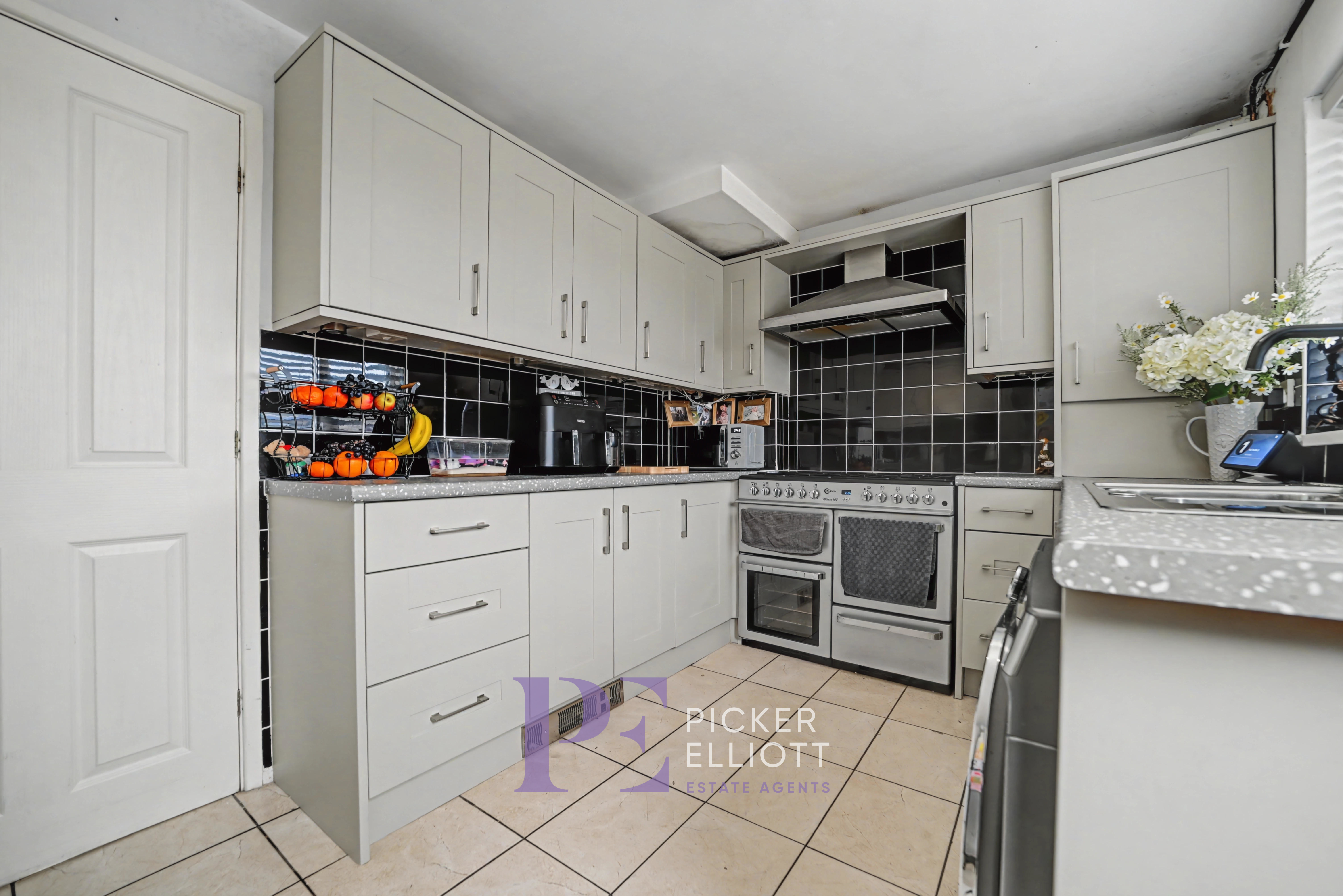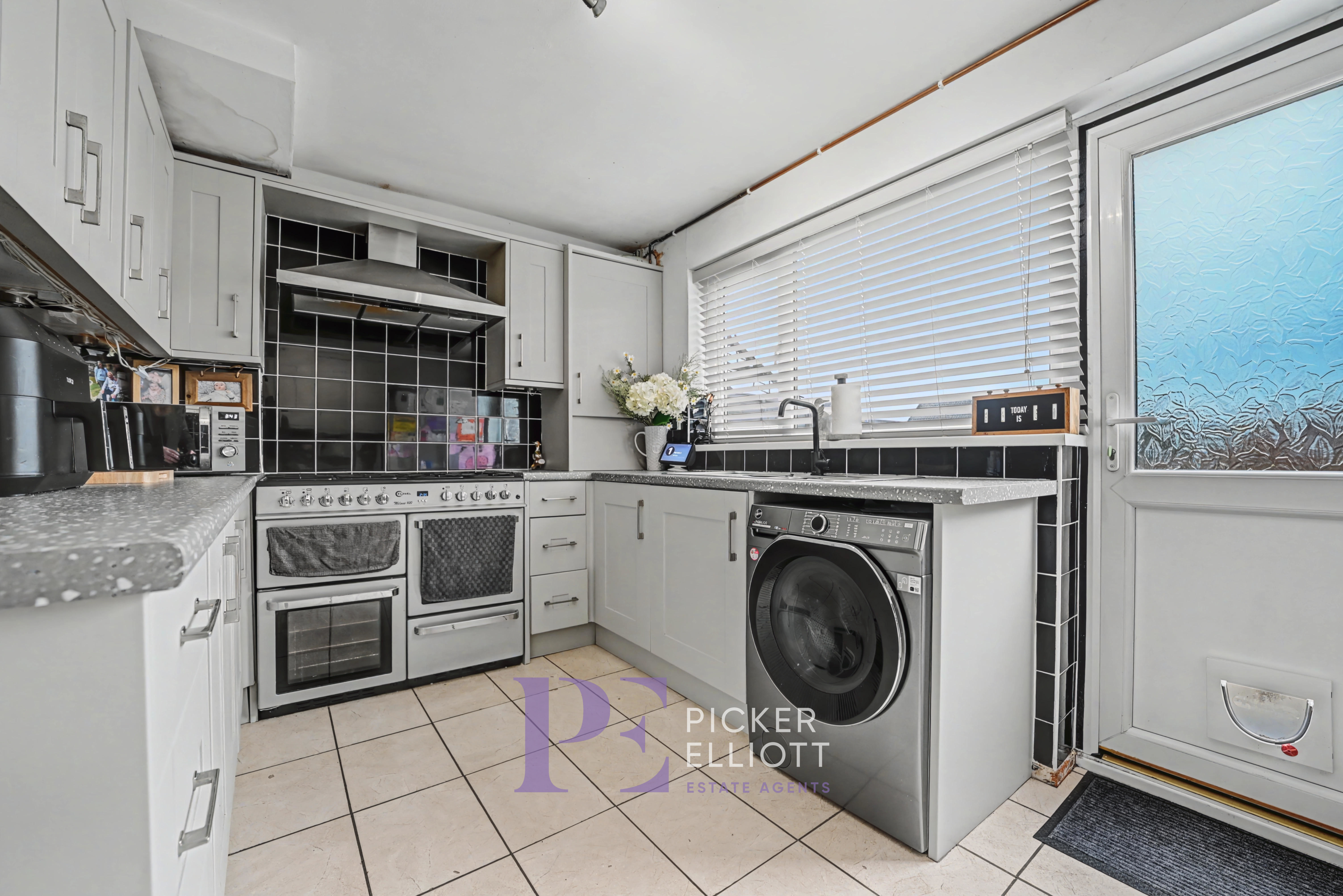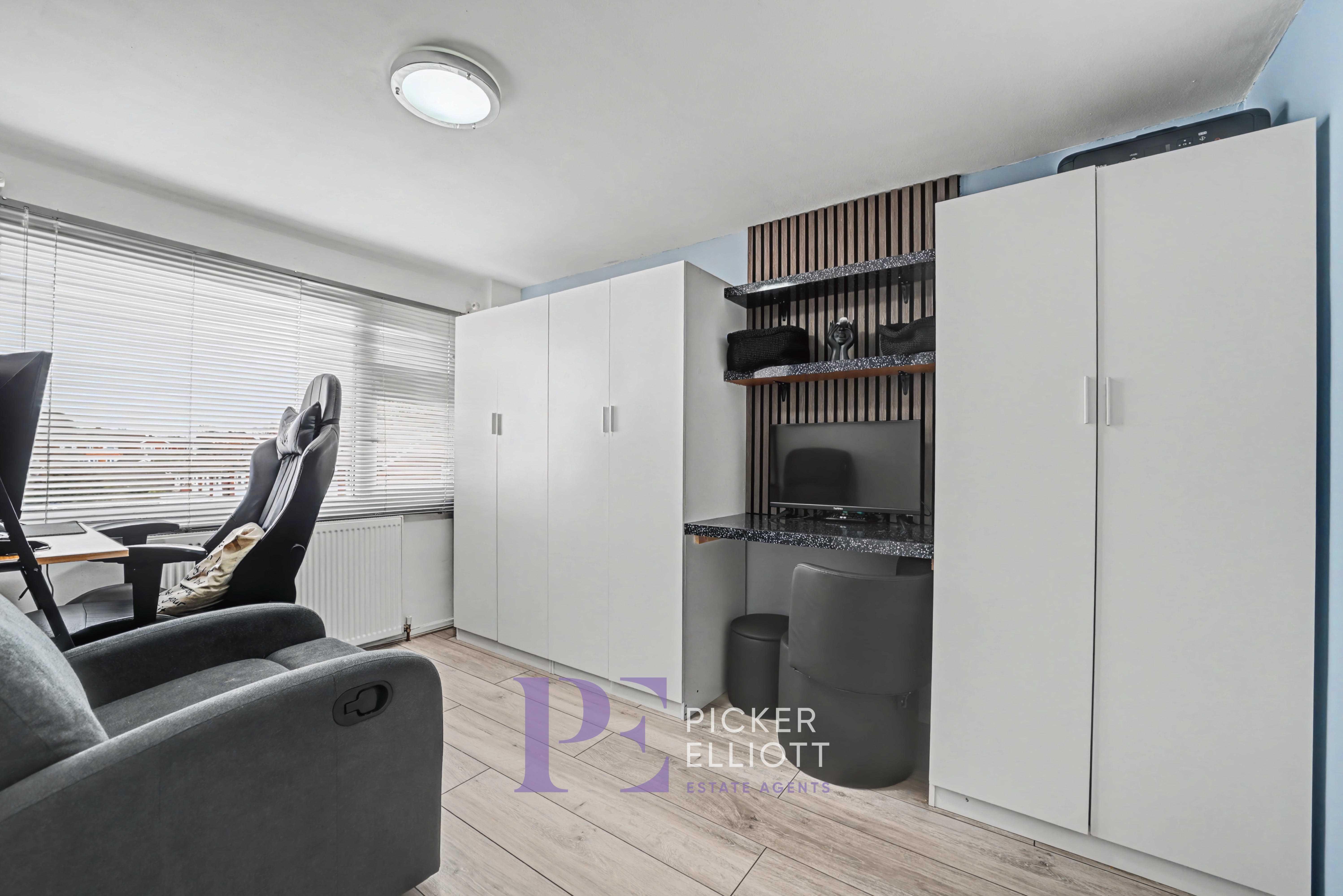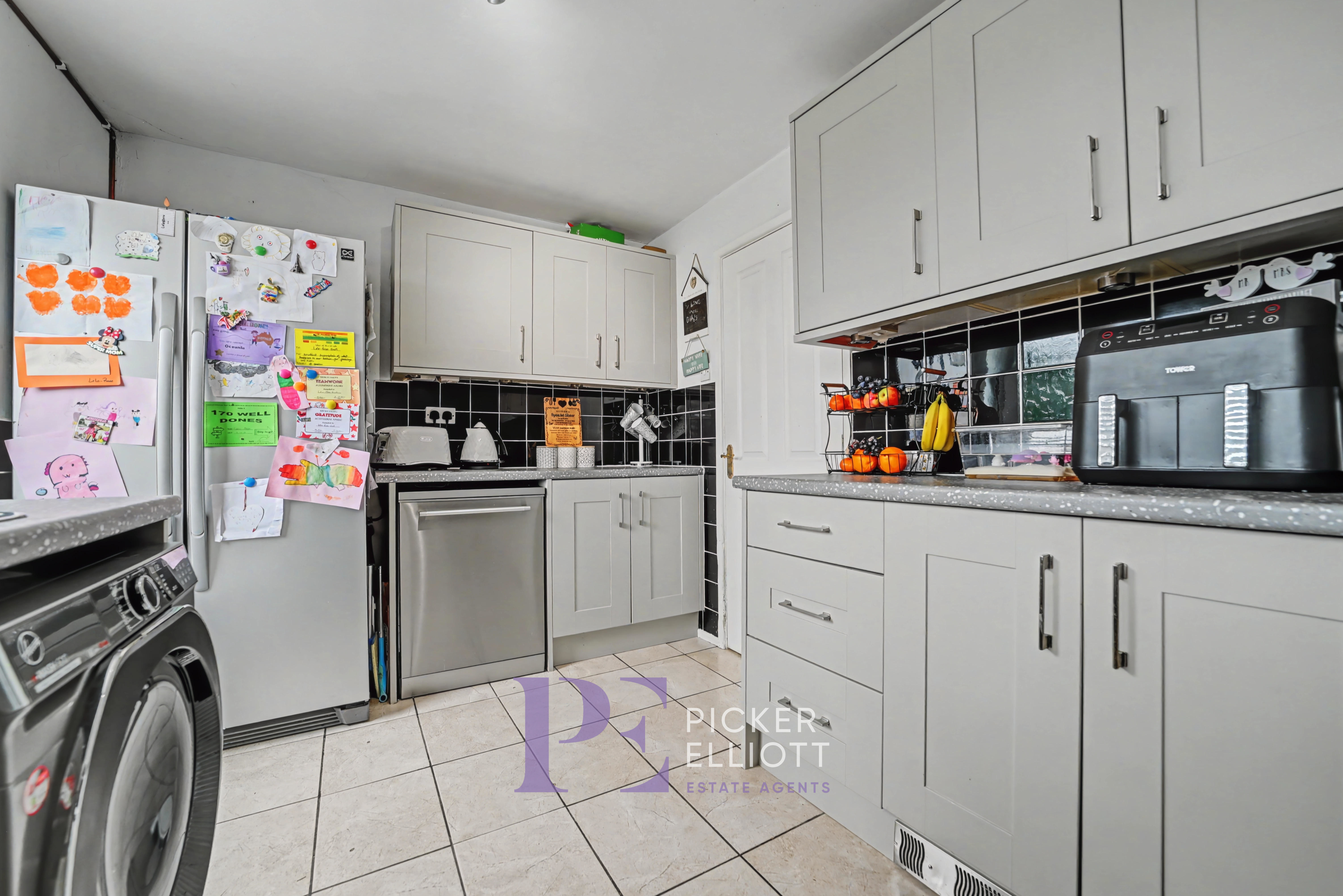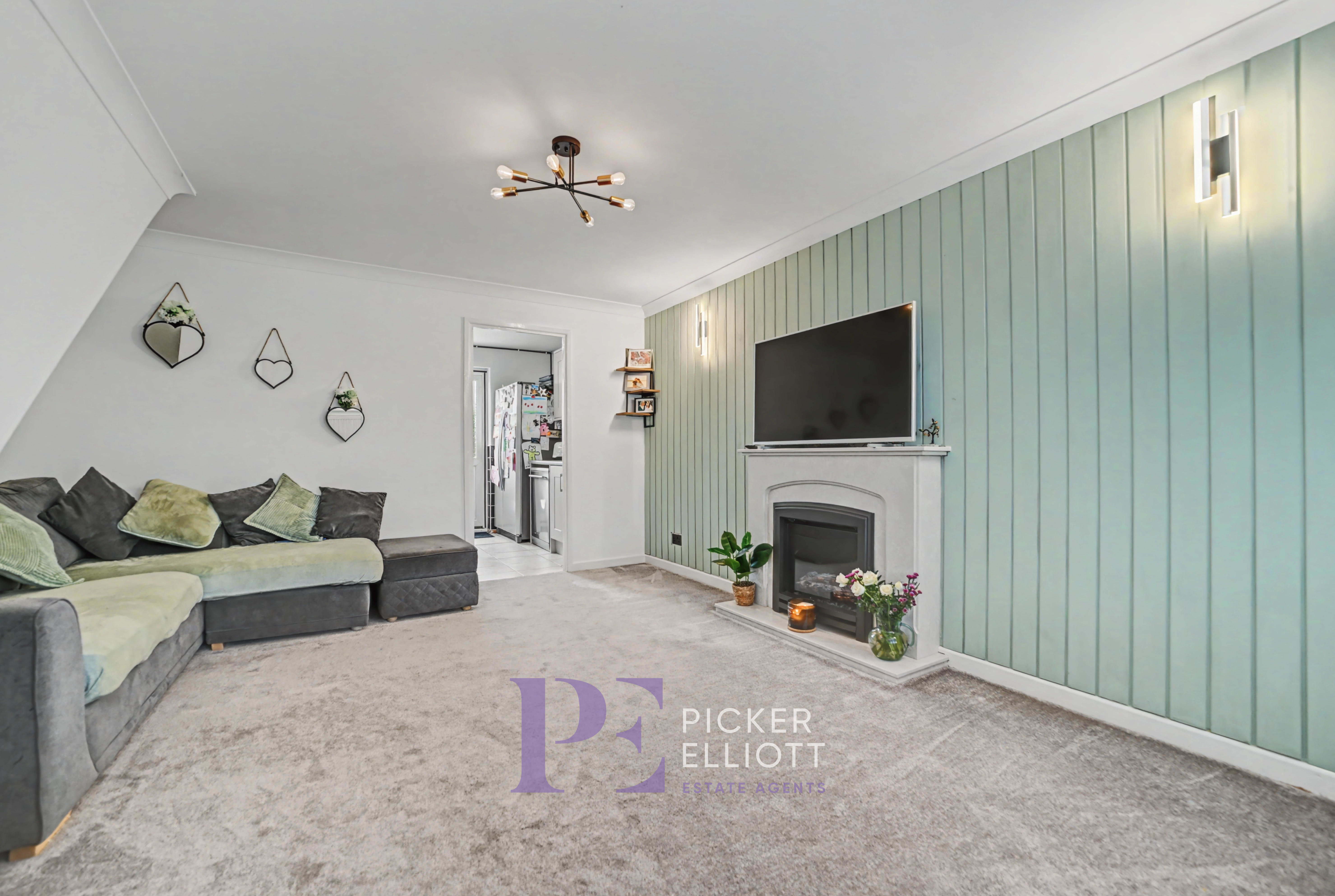 This beautifully presented home offers three spacious bedrooms, two bathrooms, and a generously proportioned reception room, making it an ideal choice for families and professionals alike. The home features a welcoming well-maintained front garden, complemented by the convenience of off-road parking to the rear, and a detached garage for additional storage or vehicle space. Natural light floods the interiors through large double glazed windows (with brand new windows to the front), enhancing the bright and airy feel throughout. The stylish living room is a true highlight, featuring a modern fireplace set against a striking feature wall, plush carpeting, and contemporary lighting. The modern kitchen boasts sleek, recently updated, cabinetry, ample storage, and a spacious countertop, perfect for those who love to cook and entertain.