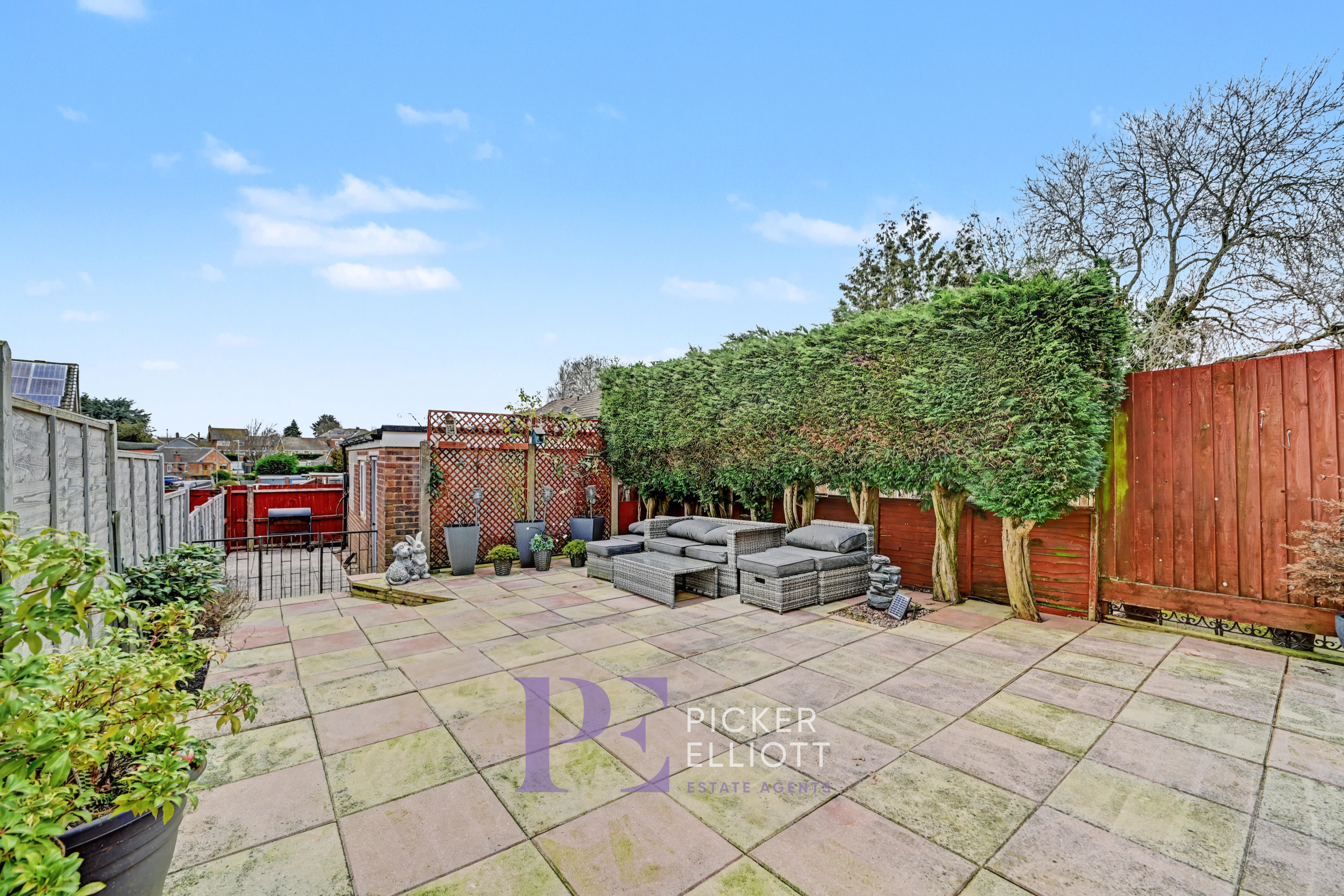 A sizable rear garden which is fully paved for low-maintenance. Timber fencing to all boundaries, and gated access to the front, rear and garage.