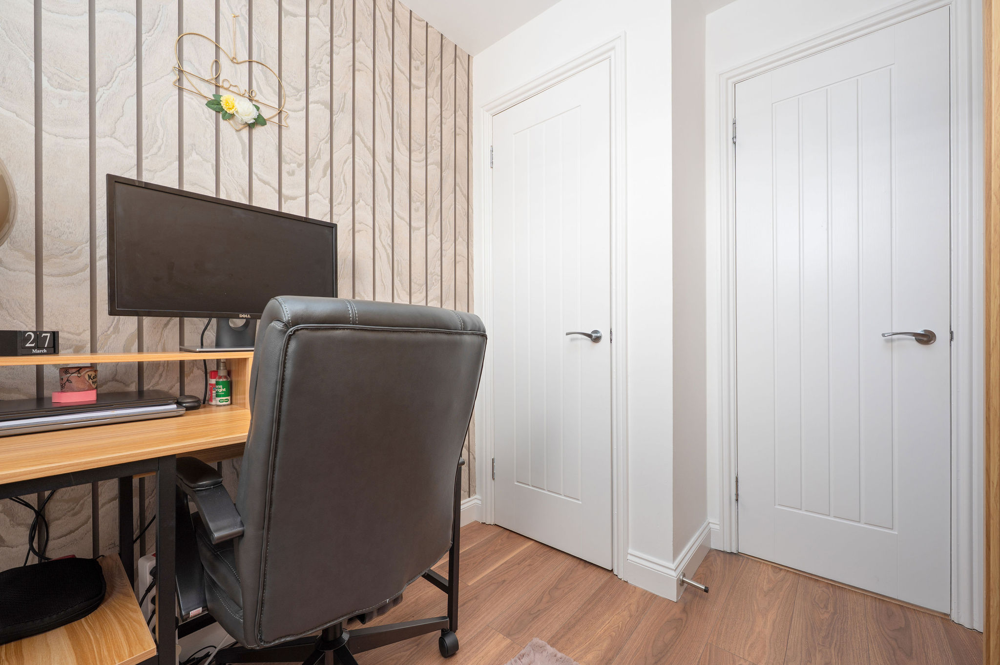Externally, the rear garden is designed for low maintenance and enjoyment, with artificial lawn and paved areas, ideal for relaxing or hosting. The front garden is laid with decorative chippings and benefits from a driveway providing off street parking.