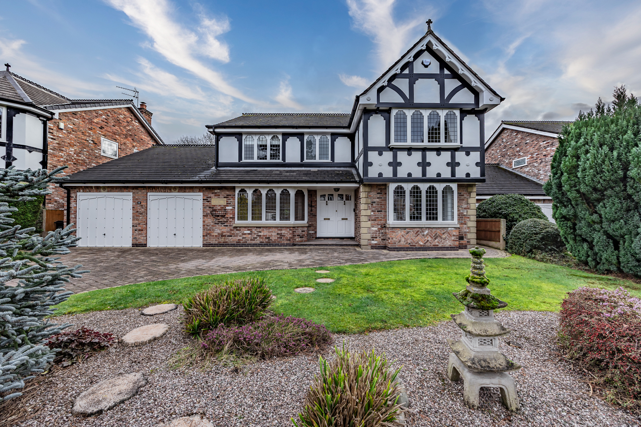 Bellairs - A striking Tudor-inspired residence of distinction, stands proudly within an exclusive cul-de-sac of just twelve executive homes, each echoing the timeless elegance of Bramhall Hall architecture. Built in 1989 and lovingly maintained as a cherished family home ever since, this is a property that offers not only impressive proportions, but a setting that feels both picture-perfect and peacefully removed from the everyday.