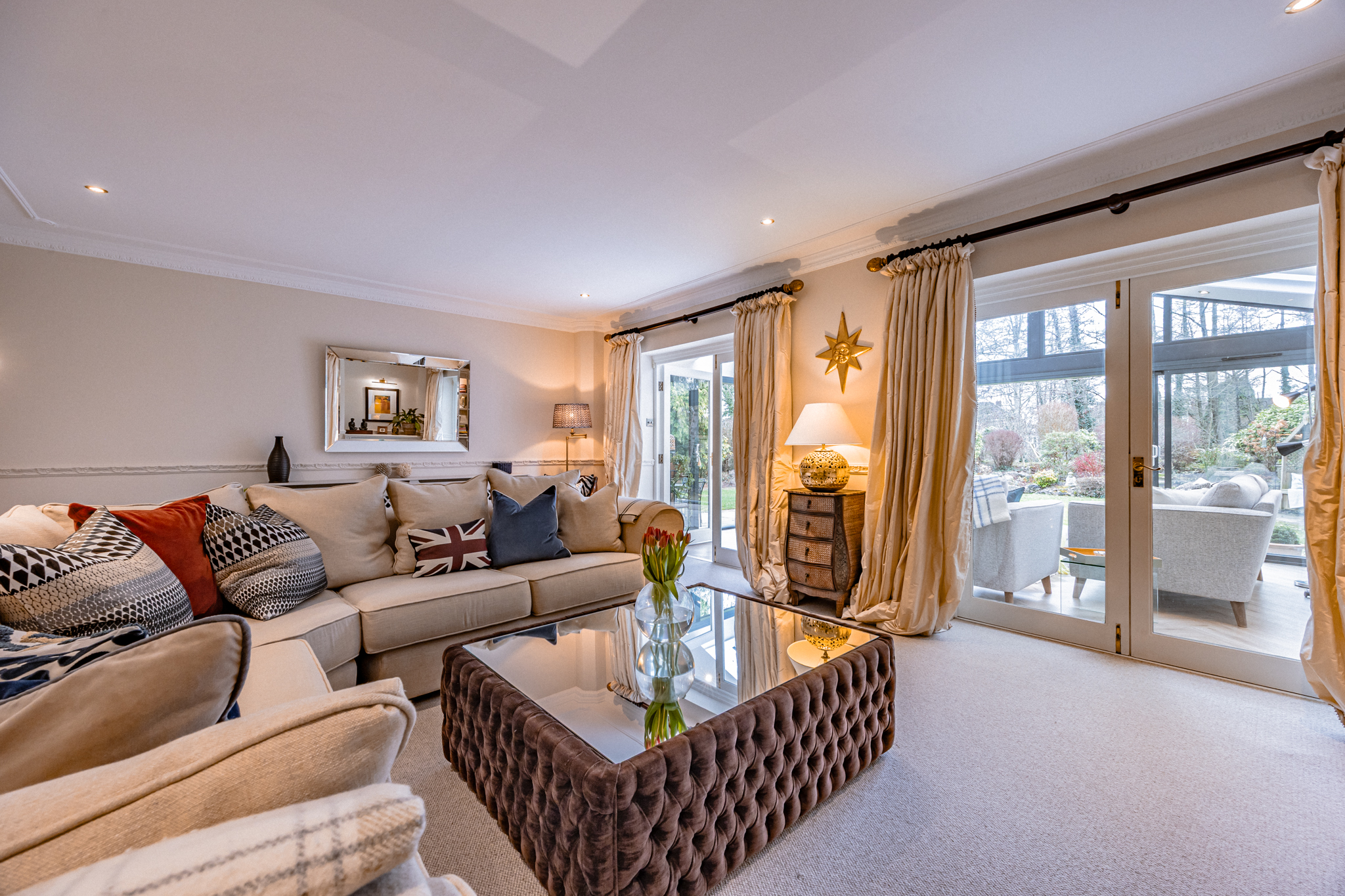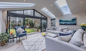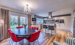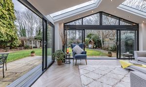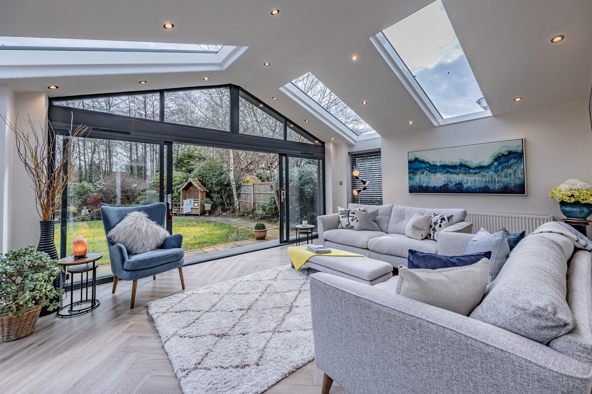 - Stunning garden room with apex skylights and wraparound sliding glazed doors