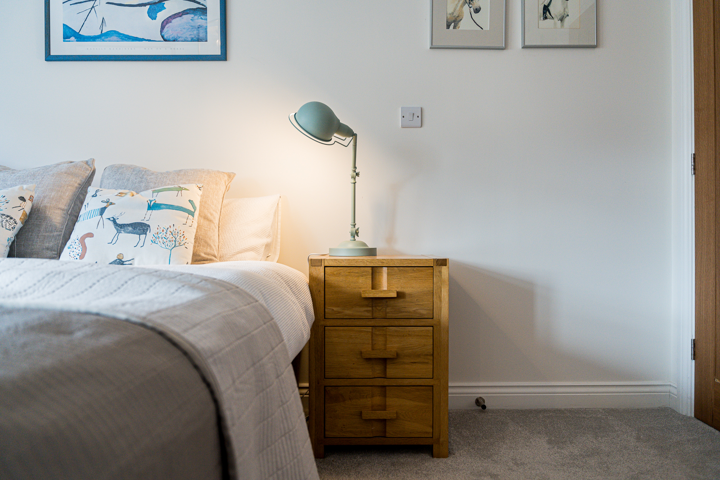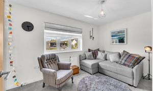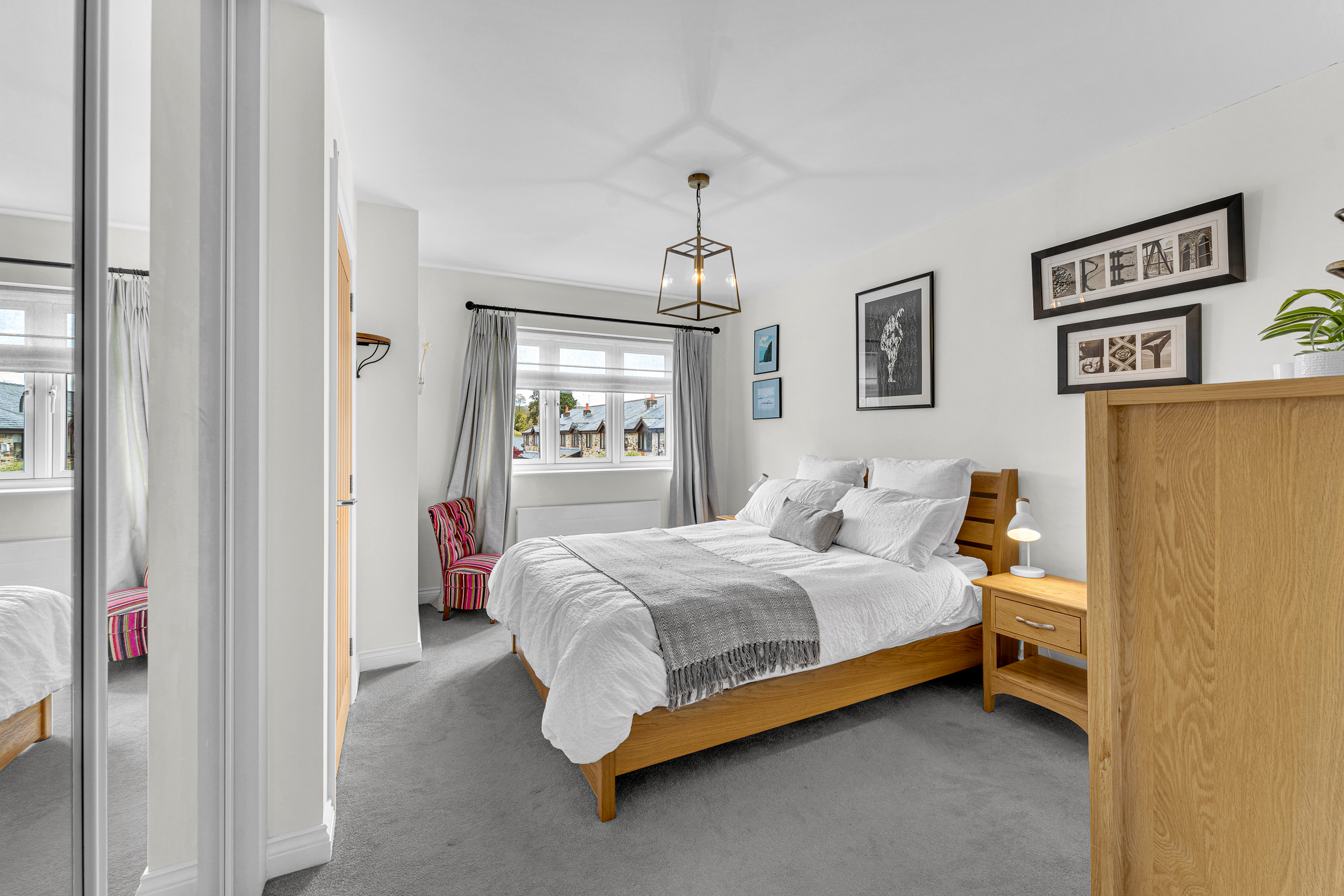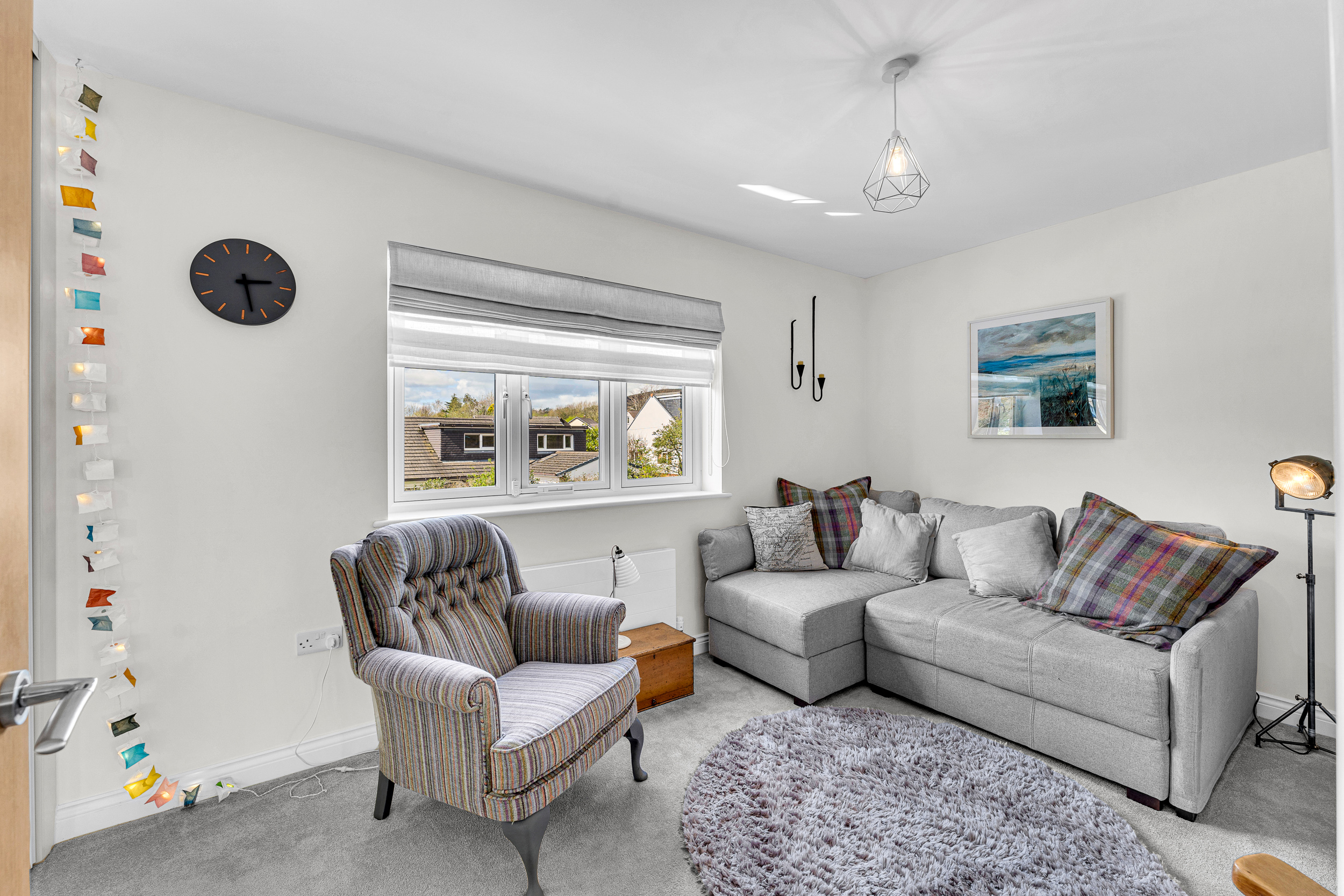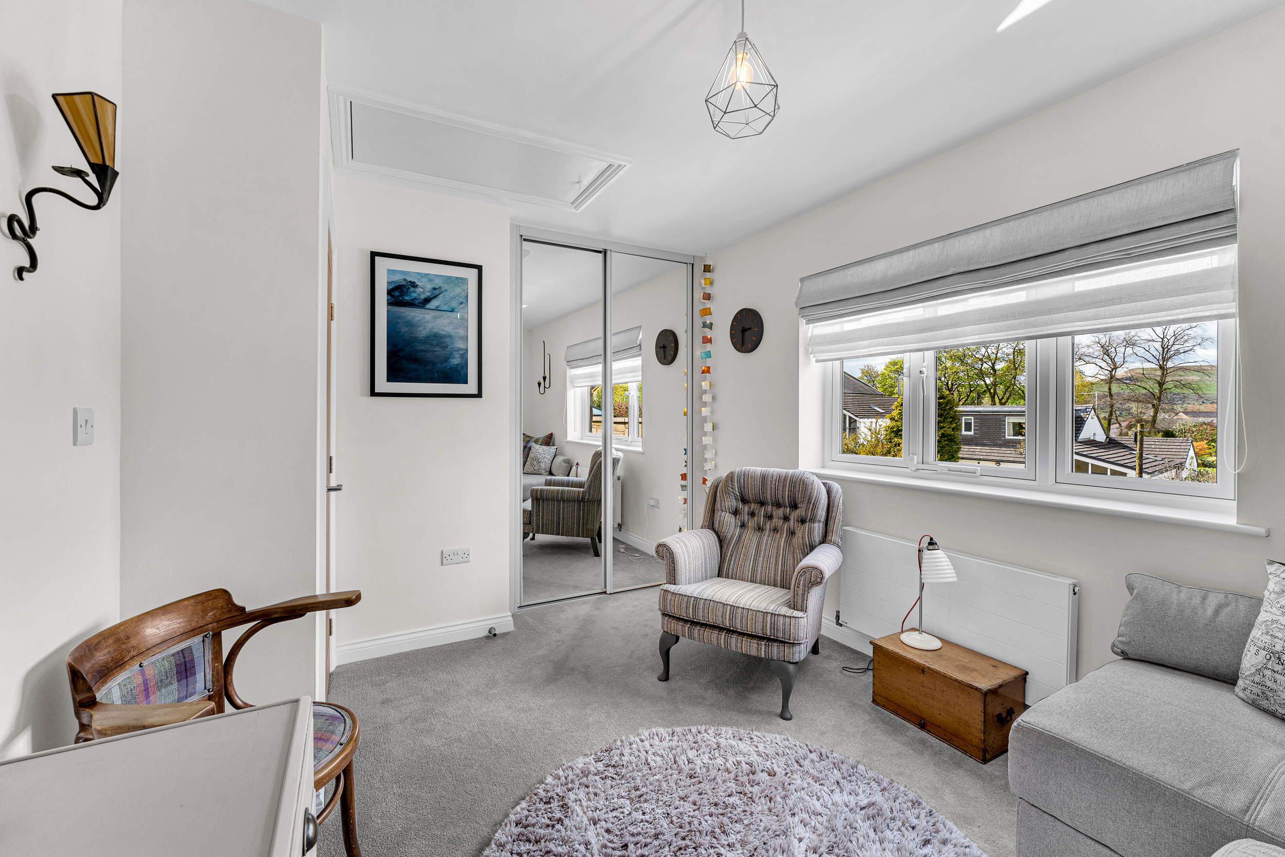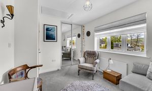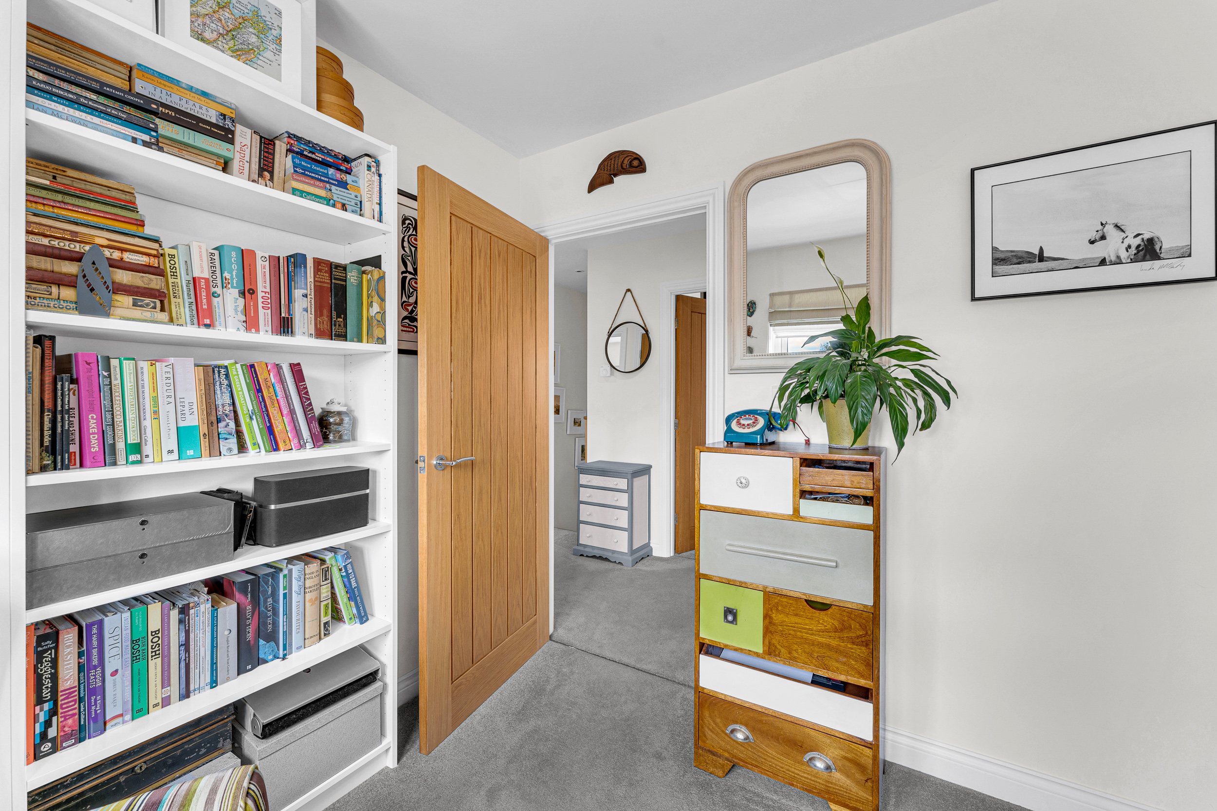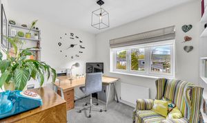 With views over the private rear garden, the remaining two bedrooms are currently set up as an additional snug and home office, as pictured. However, both are well-sized bedrooms and share a spot-lit family bathroom, with tiling and sanitaryware to match the en-suites and a deep bath with a glass screen and overhead rainfall shower. You’ll also find access to a part-boarded storage loft from bedroom three.