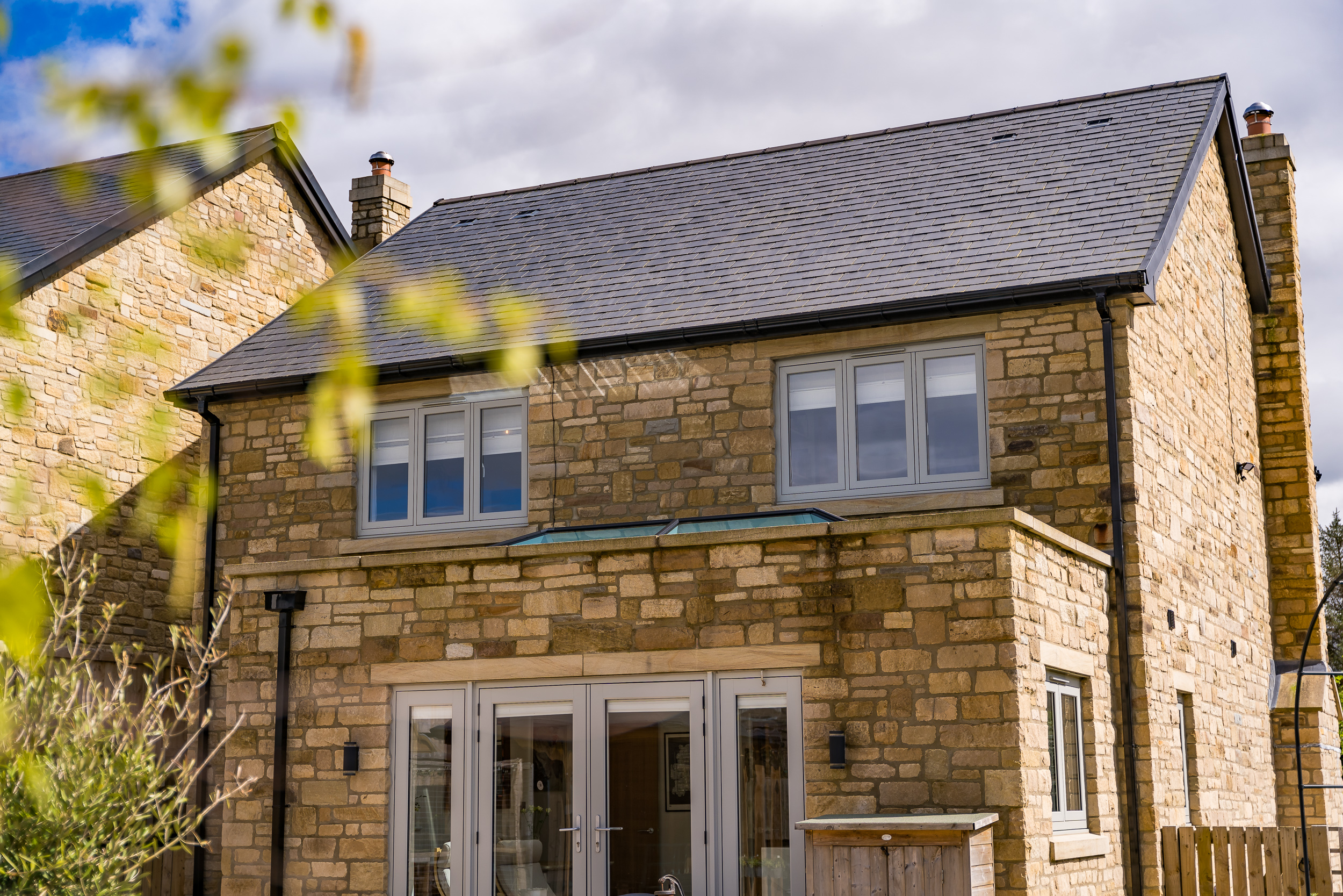 Backdropped by the local church and rolling hills, Number 17 sits on a generous corner plot at the entrance of Newchurch Meadows. You’ll immediately notice its handsome exterior, crafted from quarried Lancashire stone topped with a natural slate roof and punctuated with large, double-glazed uPVC windows with Painswick Grey frames. Inside, the windows feature Voile Roman blinds for greater privacy and light control.