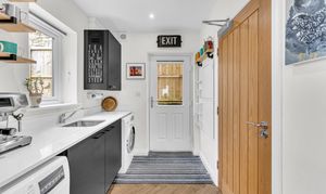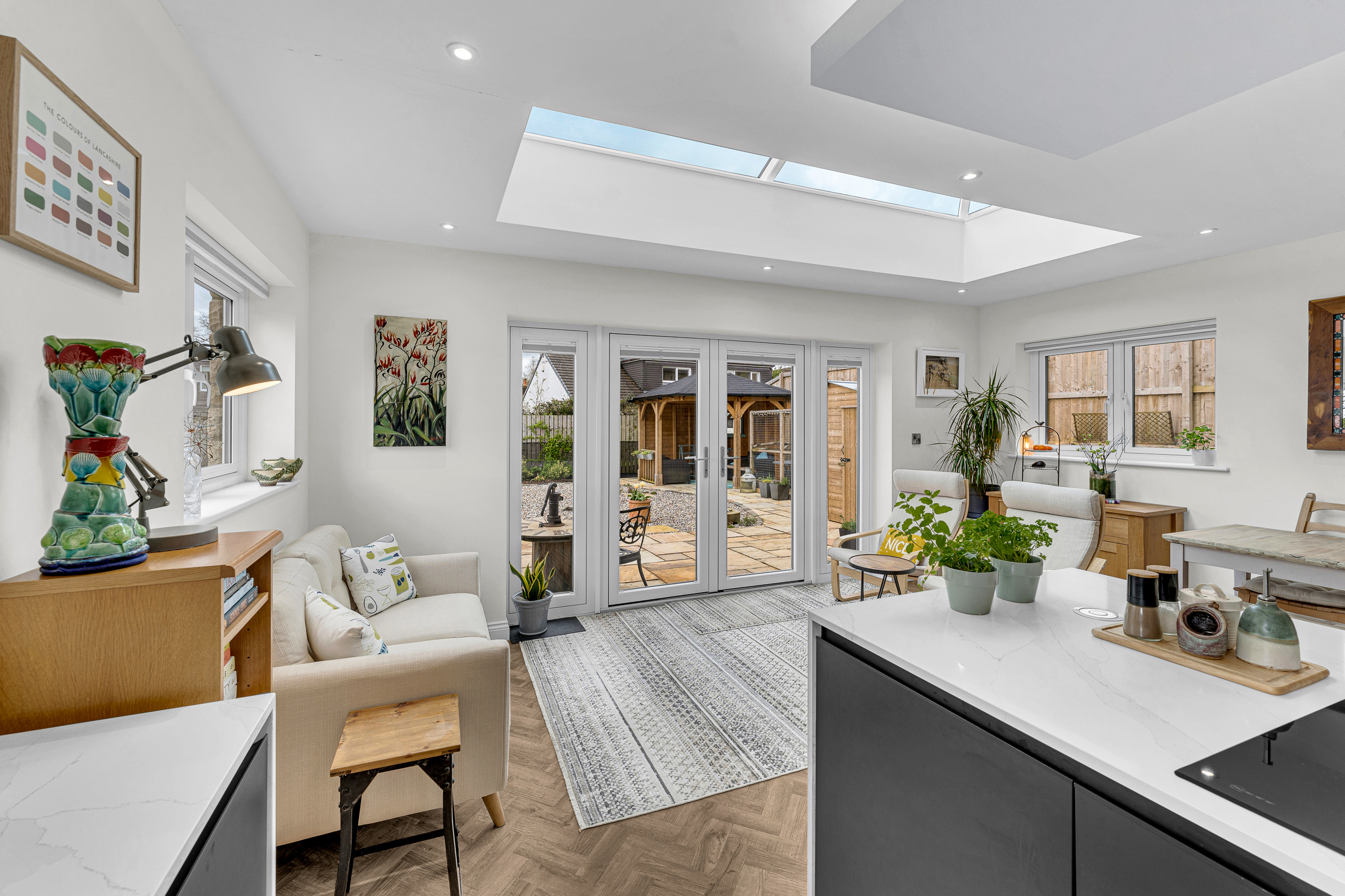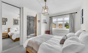 Beautifully cared for by the current owners, the house and garden have been thoughtfully designed and kitted out to be easy to maintain. While the sunny garden wraps around three sides of the property, the internal layout includes a large and light dining kitchen, a separate living room with a cosy log burner, versatile double bedrooms (two en-suite), and a high-end family bathroom and WC with premium fittings.