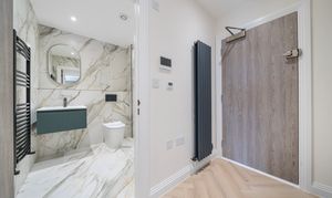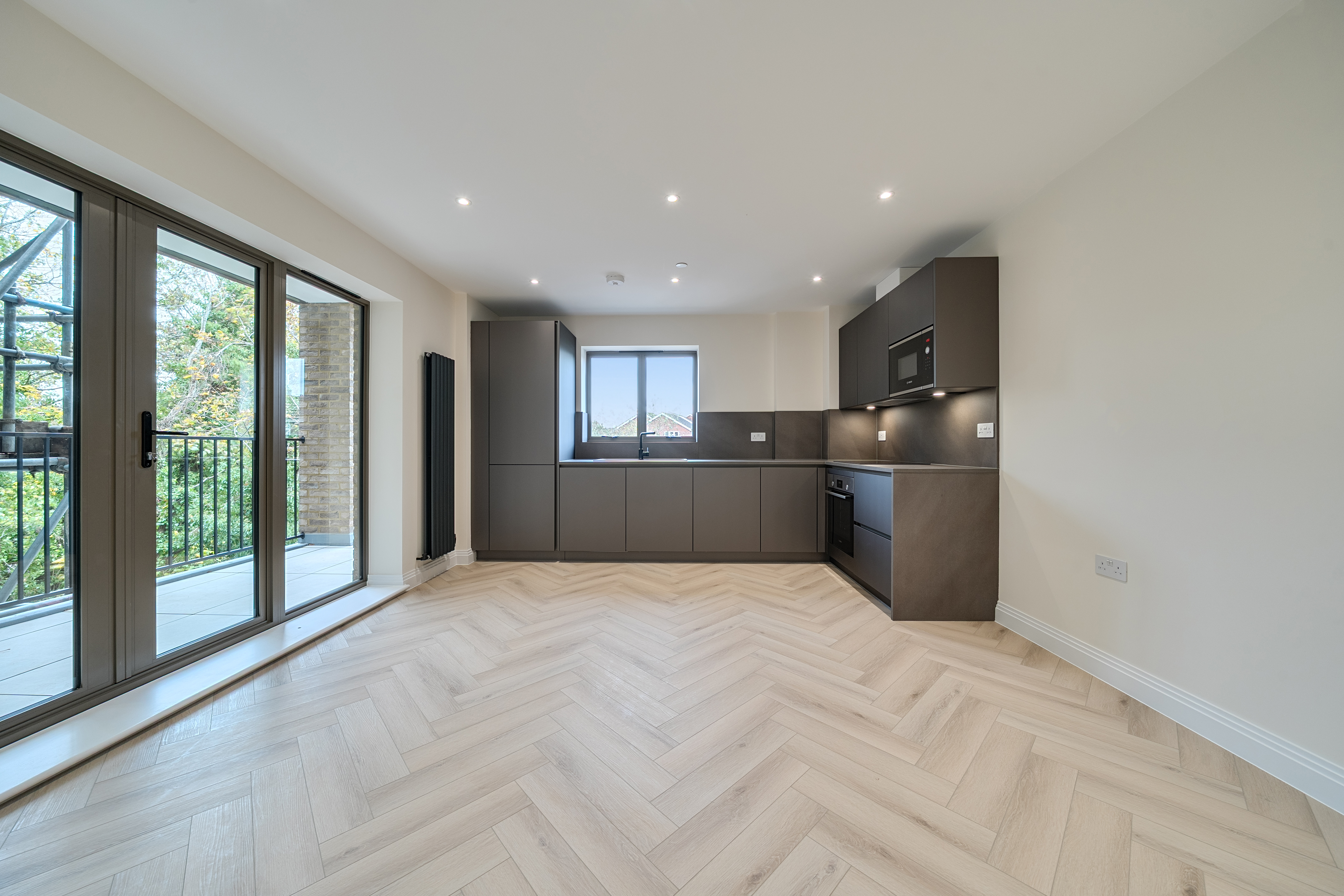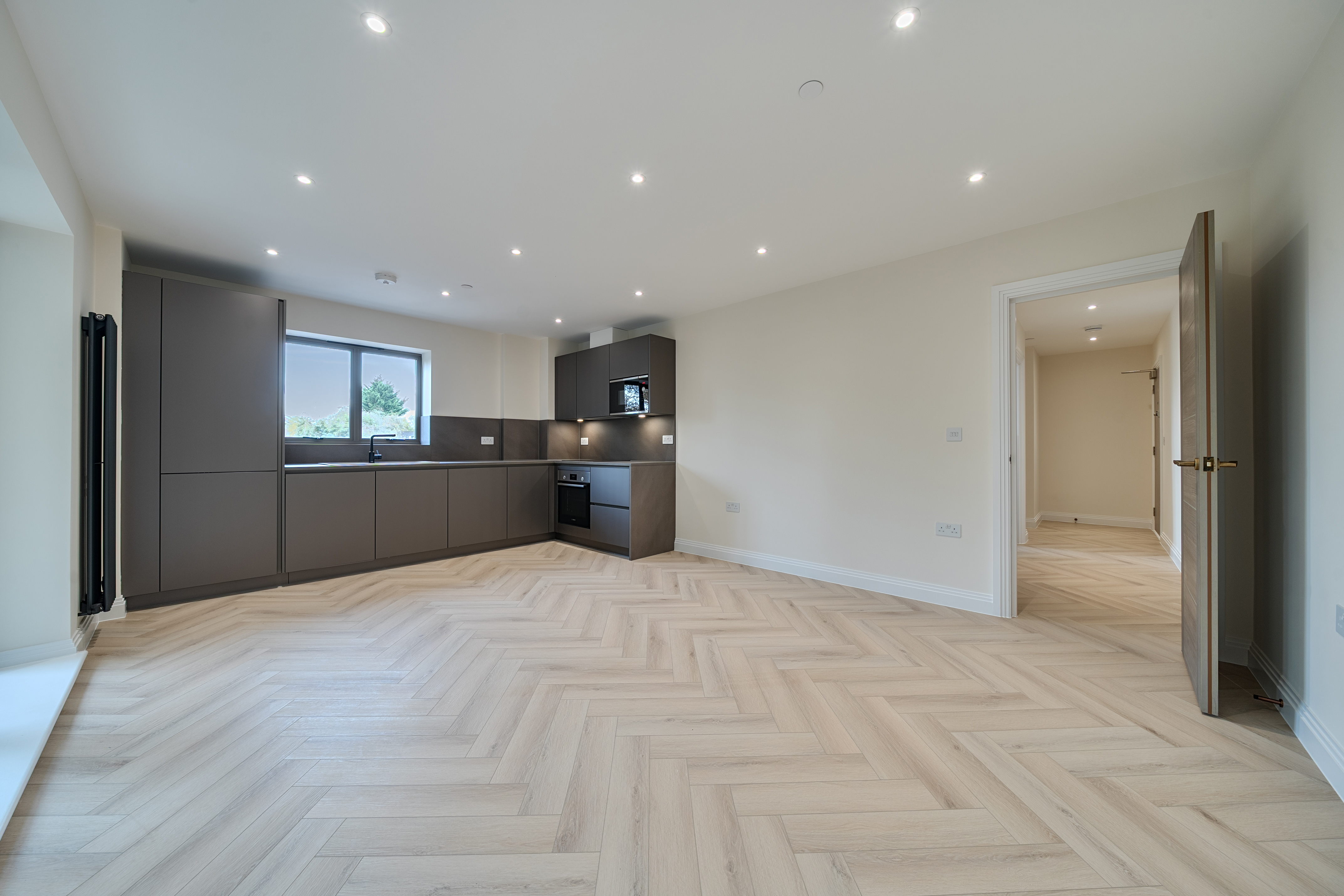 Step inside and discover a world of modern elegance. The open-plan living area extends to a private balcony, offering a perfect balance between relaxation and entertainment. The bespoke kitchen combines sleek design with practical functionality, while premium flooring and high-spec fixtures create an atmosphere of understated sophistication.