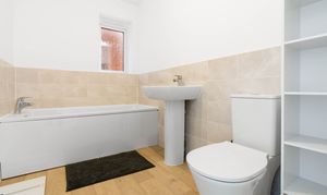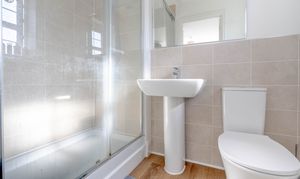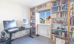 Upstairs there is a landing with storage cupboard and loft access. Bedroom 1 is a good double room with two windows, a fitted wardrobe and an ensuite shower room. Bedroom 2 is another double room with Bedroom 3 being a large single room with fitted bookcases. The family bathroom comprises a panelled bath, WC, pedestal wash basin, half-tiled walls and a side window.