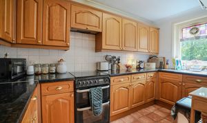 Inside, the house retains a wealth of original features, including stained-glass window panels and natural wood-panelled doors, complemented by a mix of UPVC sealed units and secondary double glazing. With gas-fired central heating, it combines character with modern comfort. The property also enjoys a convenient setting just a short distance from the village centre, with its range of amenities, the seafront, and access to a beautiful stretch of sandy beaches.