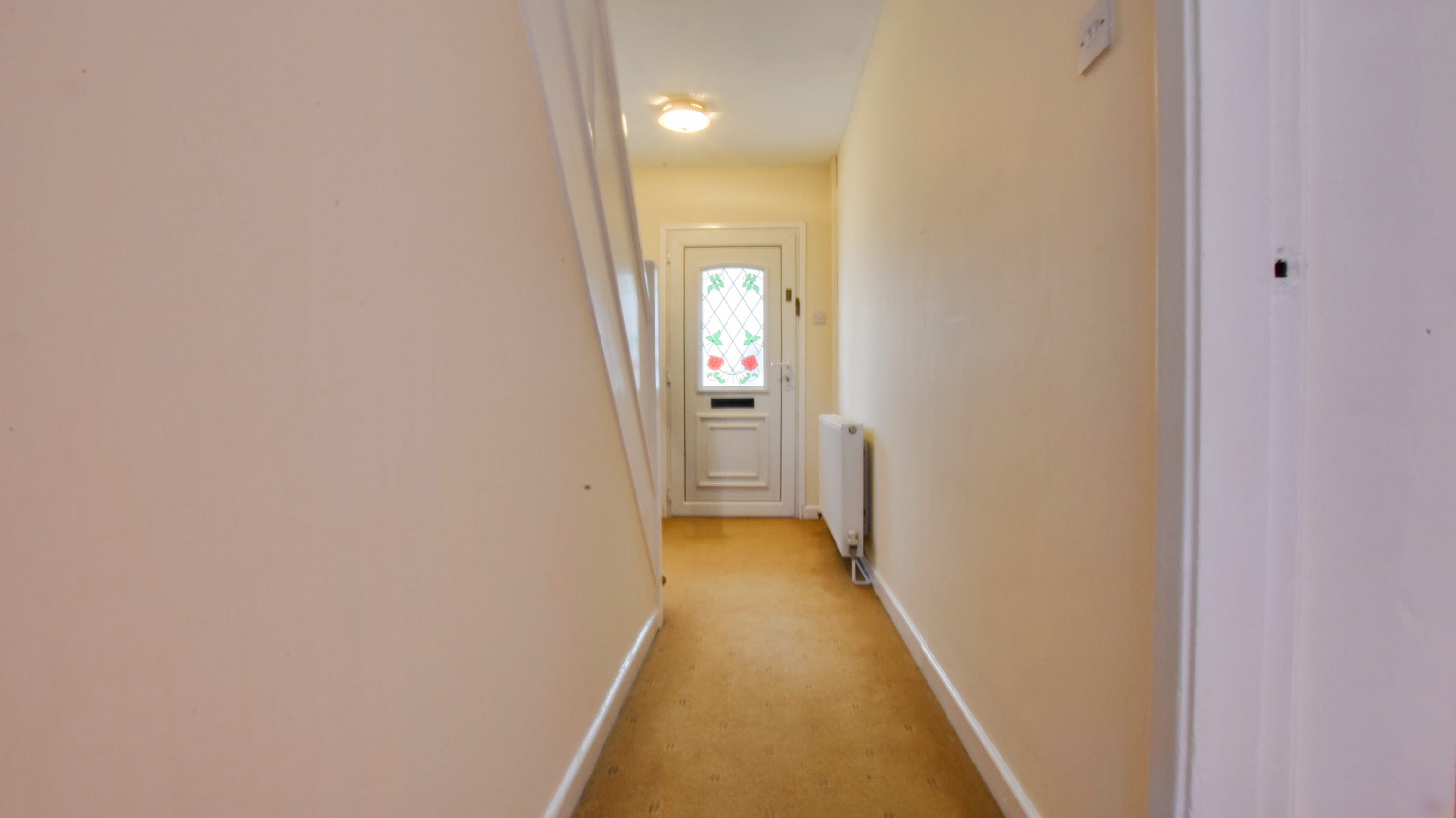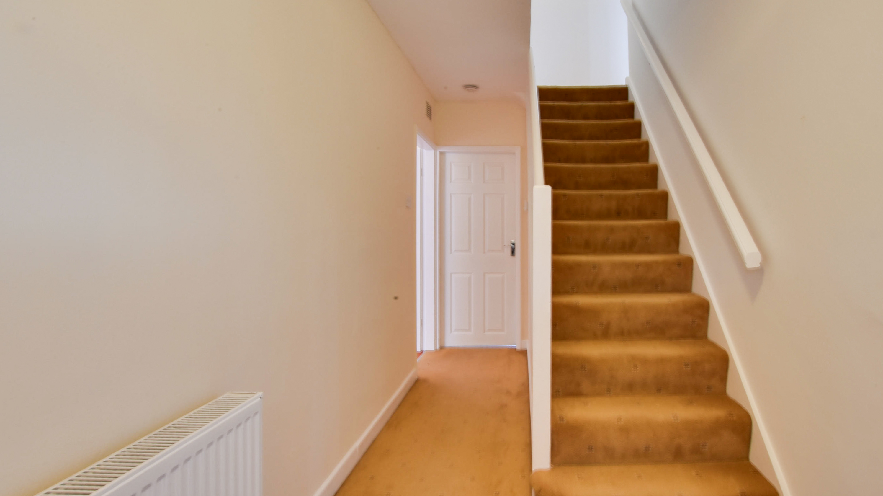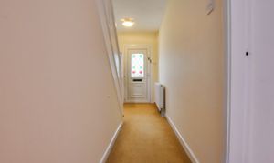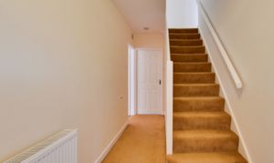 With stairs to the first floor, radiator, carpeted floor covering, door to the porch and access to downstairs living accommodation.
