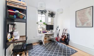 There is a very well sized double bedroom overlooking the rear gardens and the principle suite is extremely generous- allowing plenty of space for storage. There is direct access out onto the 22’ x 16’ private garden- creating a quiet oasis and fantastic barbecue spot in the summer months.