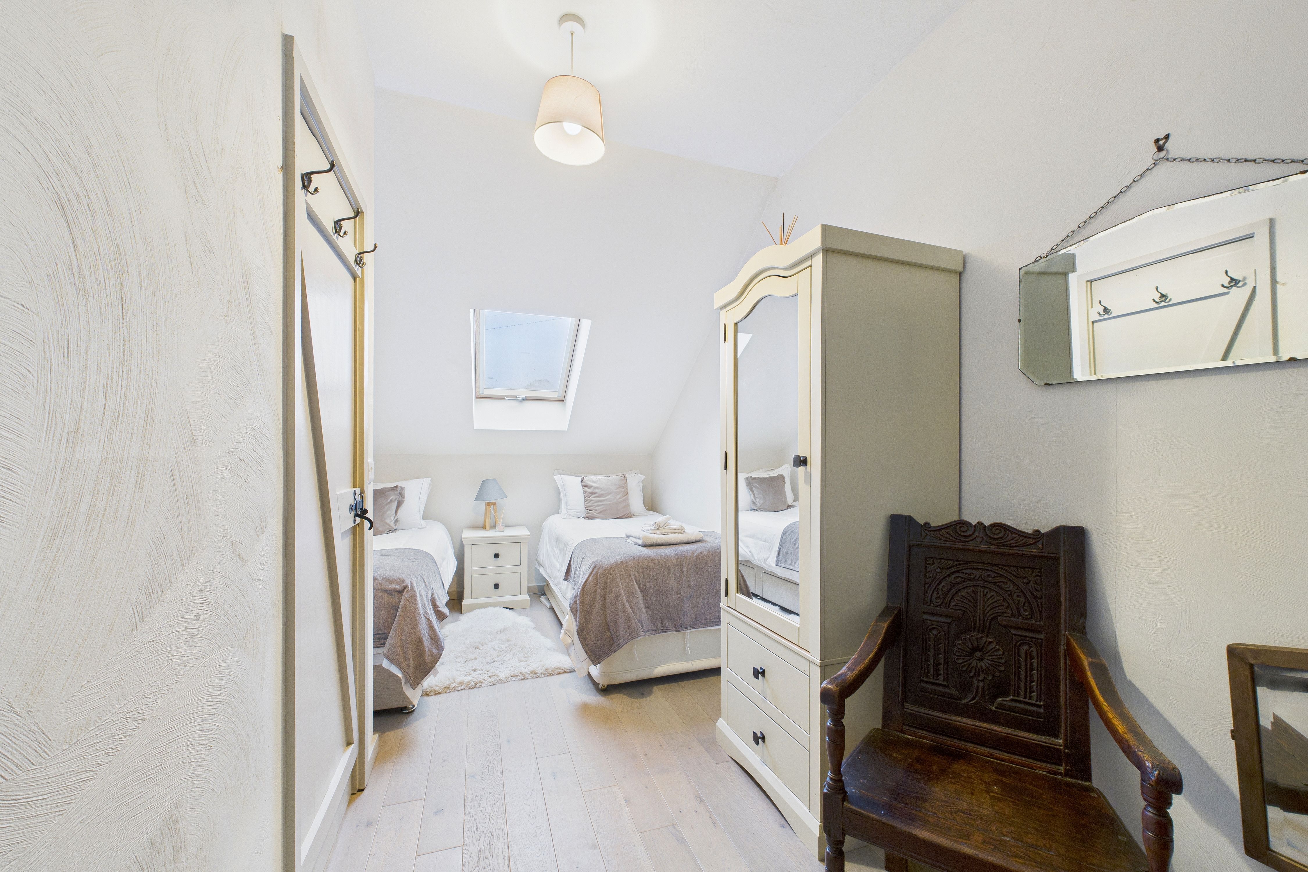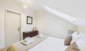 Ascend to the first floor and discover two beautifully presented double bedrooms, each offering a restful sanctuary after a day exploring the nearby countryside. The main bedroom benefits from a sleek, modern ensuite bathroom, creating a private retreat within this historic setting.