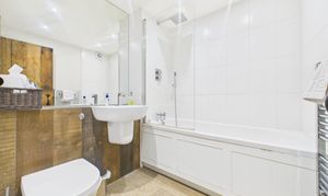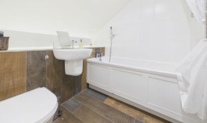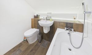 To the rear of the ground floor the bathroom is a modern haven, beautifully refurbished with modern fixtures and fitting but perfectly matching the charm of the property.