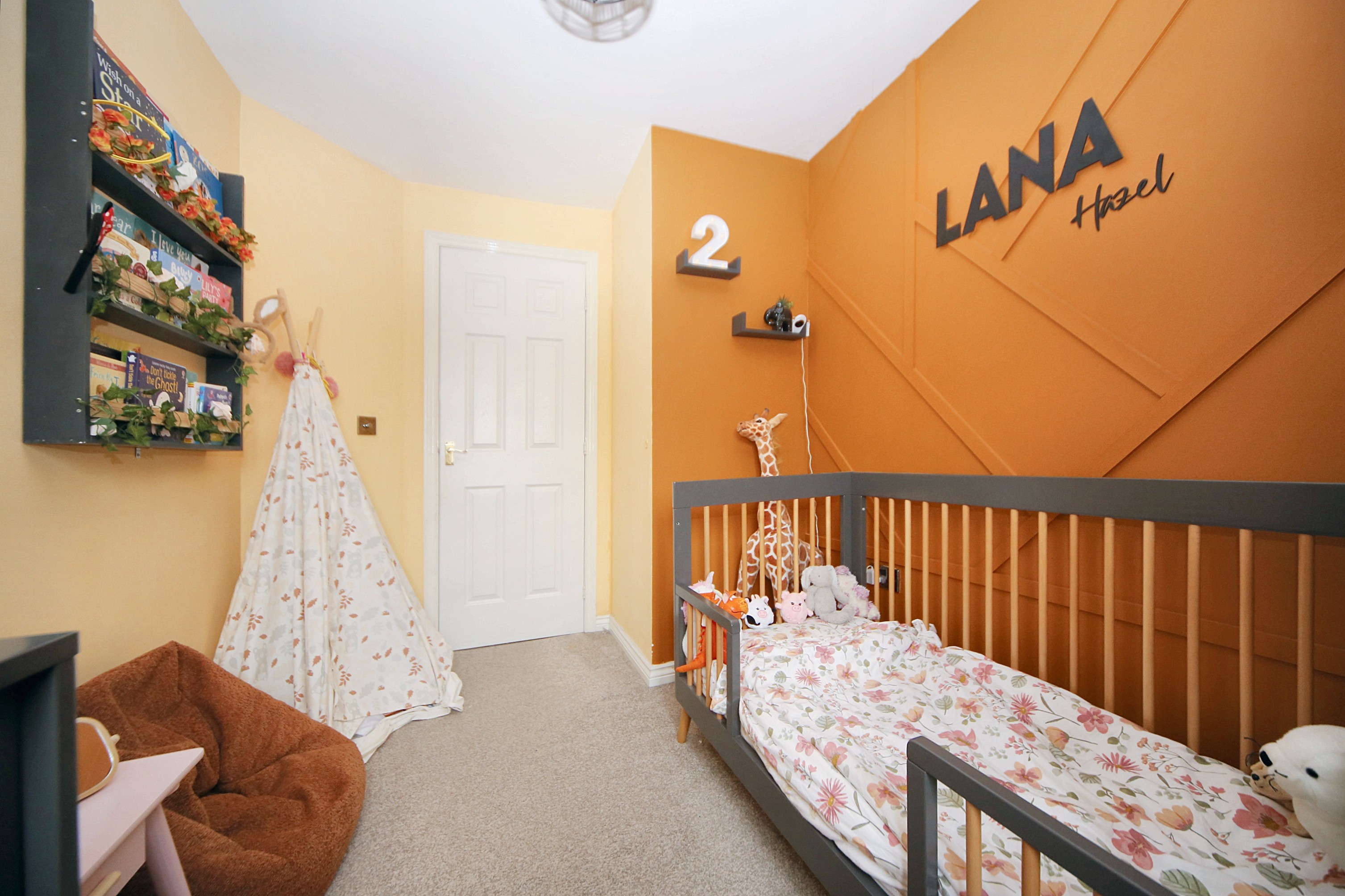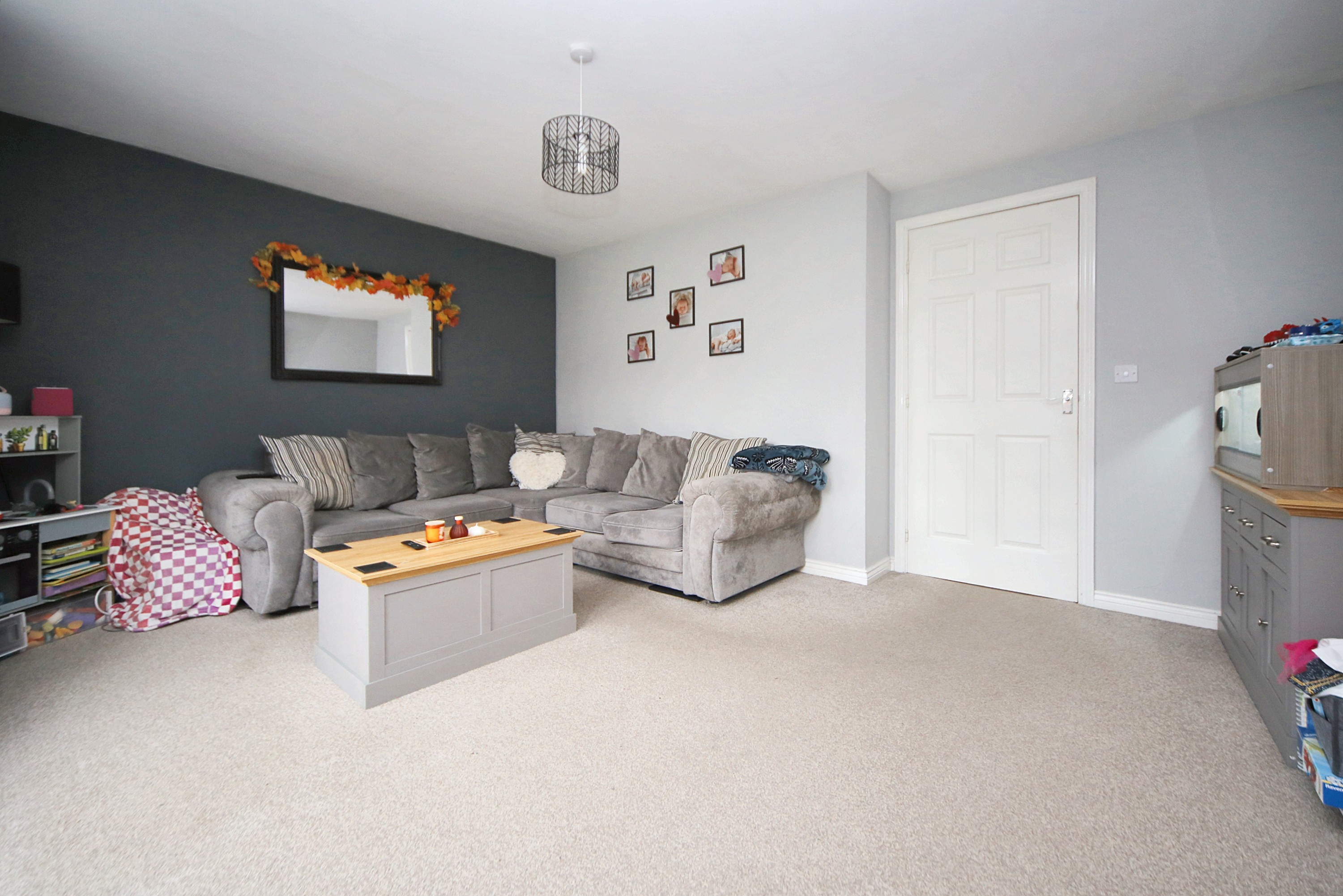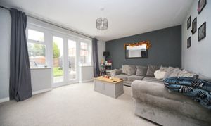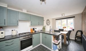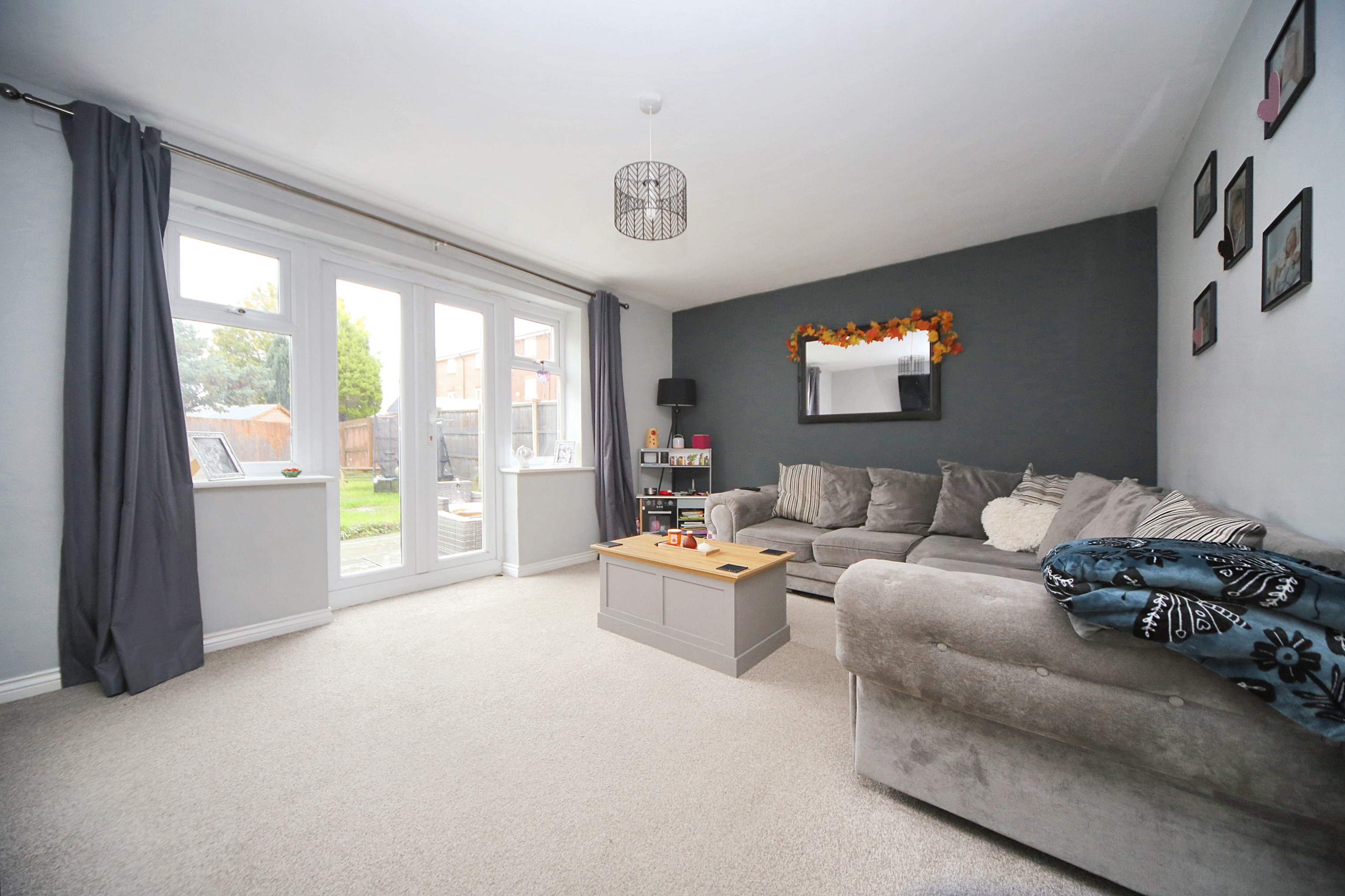 To the front, there is a driveway providing off street parking for two vehicles. Inside, the entrance hall leads to a convenient ground floor WC and into a bright and spacious open plan kitchen dining and lounge area. The modern kitchen overlooks the rear garden and the lounge features French doors that open onto a patio and lawn, perfect for relaxing or entertaining.