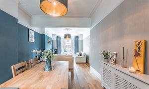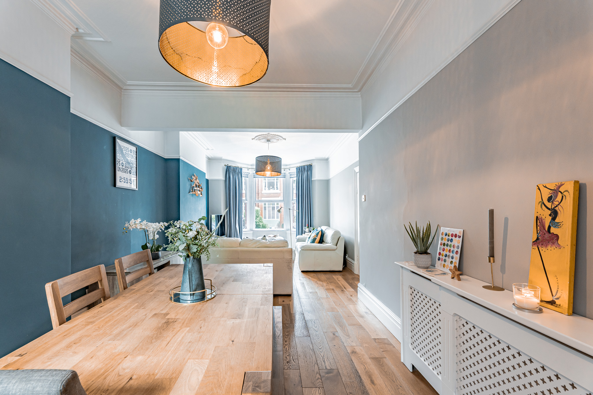 Set on a sought-after residential street in Stockport, this beautifully presented period property effortlessly blends classic charm with modern comfort. From the moment you arrive, the home’s character is immediately apparent. A driveway offers off-road parking for a large vehicle, with additional on-street parking available. A welcoming pathway leads up to an arched stained glass front door, setting the tone of the period Victorian era, opening into a long hallway adorned with wood flooring and high ceilings that continue throughout the house.