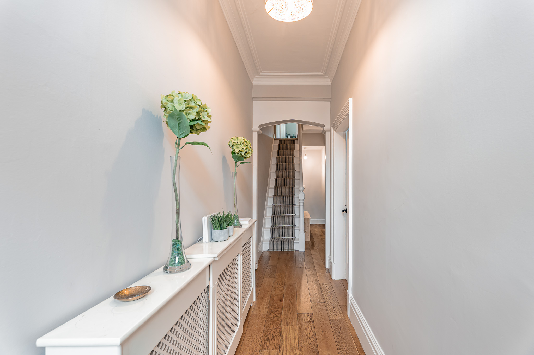 Set on a sought-after residential street in Davenport, this beautifully presented period property effortlessly blends classic charm with modern comfort. From the moment you arrive, the home’s character is immediately apparent. A driveway offers off-road parking for a large vehicle, with additional on-street parking available. A welcoming pathway leads up to an arched stained glass front door, setting the tone of the period Victorian era, opening into a long hallway adorned with wood flooring and high ceilings that continue throughout the house.