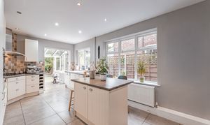 Double doors off the kitchen lead to a contemporary sun filled conservatory area which includes downstairs WC and onward to a secure, low-maintenance rear garden. With two patio seating areas, the garden offers the perfect private space for entertaining or simply enjoying the outdoors.