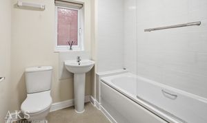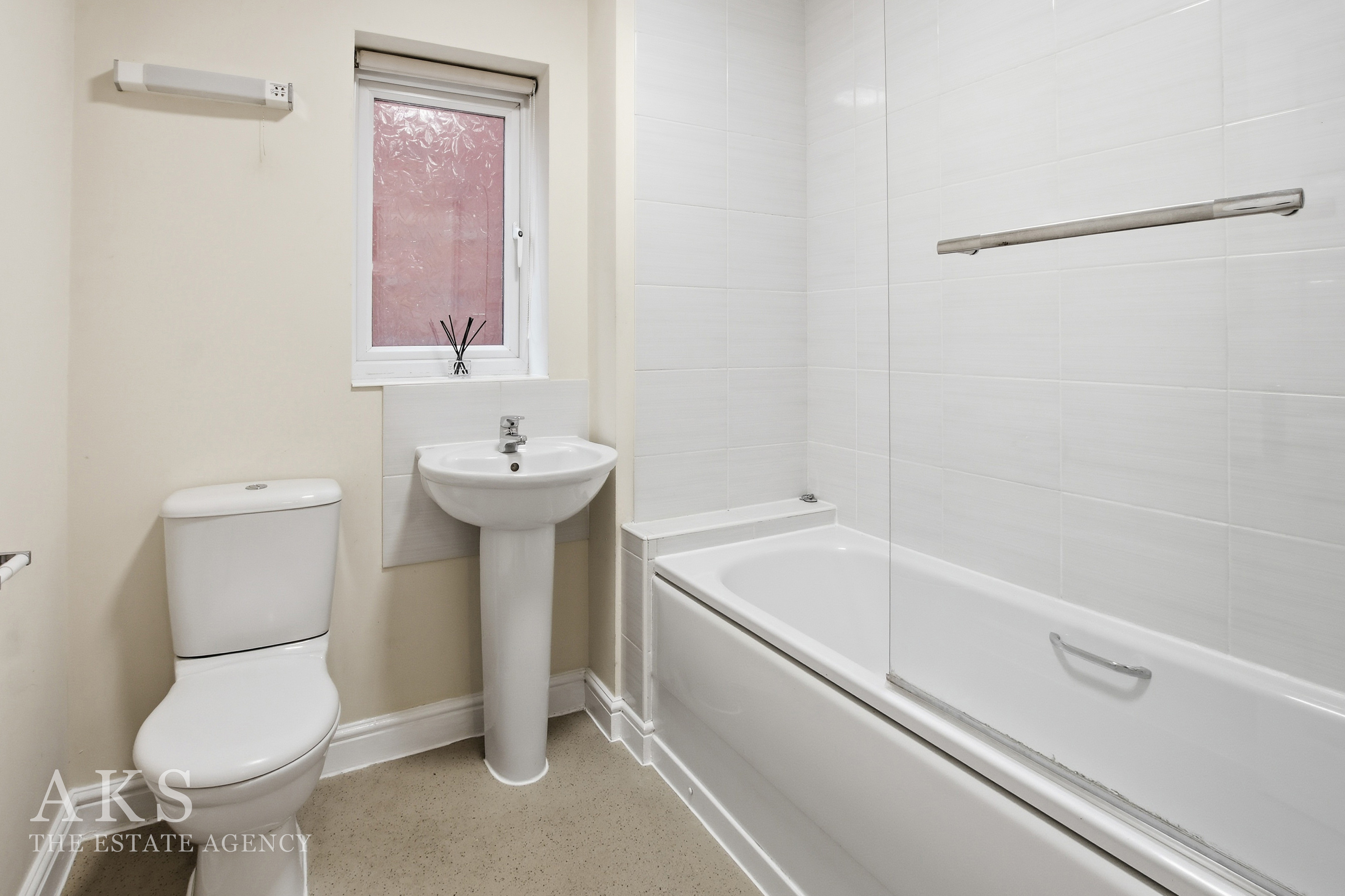 Upstairs, both bedrooms are impressively sized. Even with furniture in place, there’s still plenty of usable floor space. The second bedroom benefits from fitted cupboard storage, adding extra practicality. The family bathroom is another great feature, finished with neutral décor and complete with a shower over the bath.